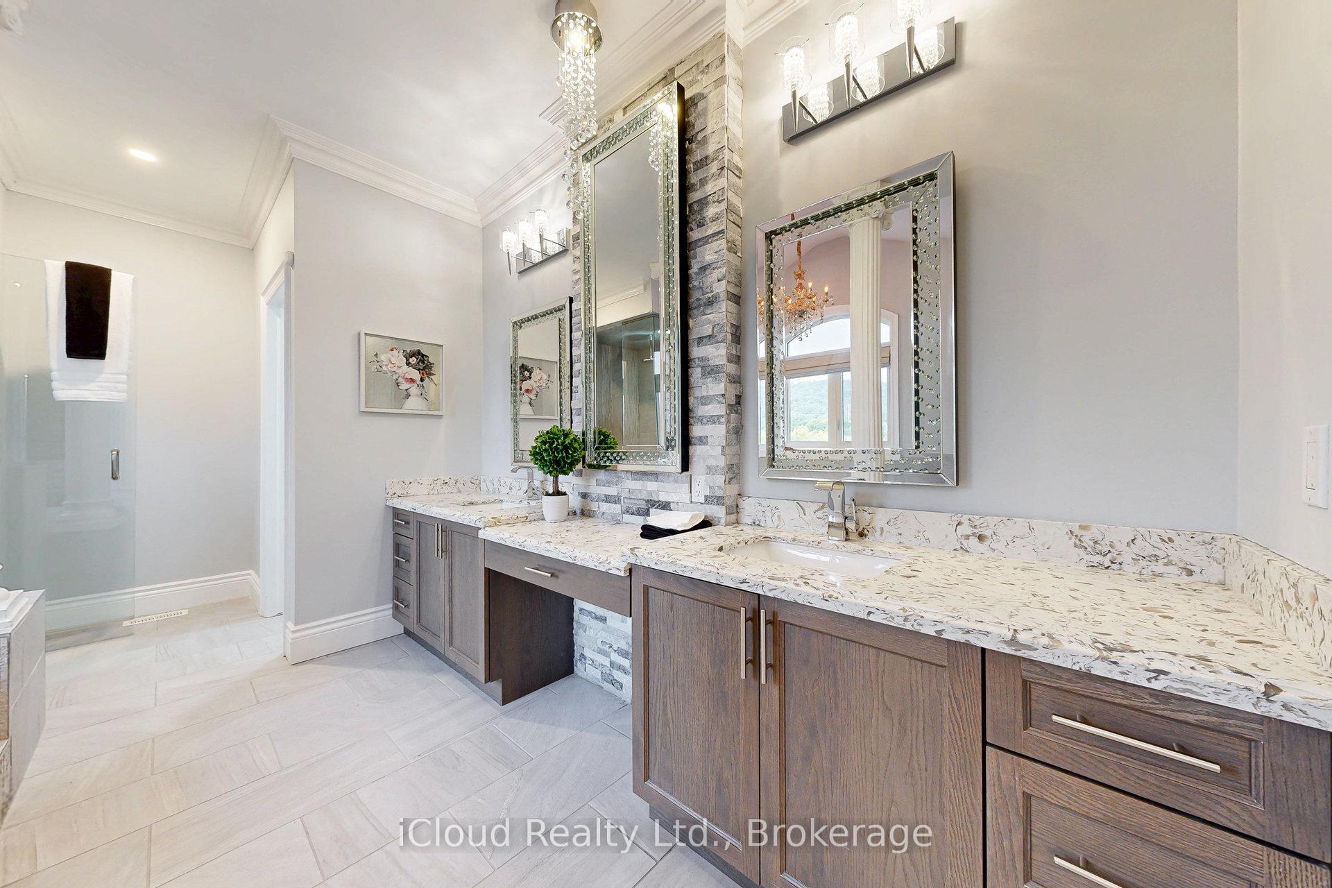 Welcome to 7 Riesling Court, an exceptional custom-built Zeina Homes residence set on anexclusive Stoney Creek cul-de-sac embraced by escarpment views. Offering over 5,000 sq. ft. ofrefined living across three levels, this home balances architectural artistry with modernluxury. The striking stone and stucco exterior, soaring cathedral-height windows, andlandscaped setting create a commanding first impression.Inside, every detail has been thoughtfully curatedwide plank hardwood floors, quartz surfaces,upgraded designer lighting, and a dramatic back-lit stretch ceiling mural that transforms themain level into a gallery-like space. The chef-inspired kitchen features a full pantry,servery, and walk-out to a sunlit east-facing backyard, perfect for morning coffee or weekendentertaining.The primary retreat is a true sanctuary, complete with a spa-style ensuite boasting a recliningsoaker tub, dual-sided fireplace, and a walk-in dressing room with custom organizers. Secondarybedrooms are generously scaled, and a convenient upper-level laundry adds practicality to theelegance.The professionally finished lower level (with permits) provides remarkable flexibility forextended family living, featuring its own kitchen, two bedrooms, full bath, laundry, andseparate entrance. Additional highlights include a double car garage with epoxy floors,insulated doors, paved drive, and sod.Located minutes from Red Hill, QEW, shopping, dining, and Hamiltons vibrant downtown core,this residence combines privacy, prestige, and convenience. Rarely does a home of this caliberbecome availablean opportunity for the discerning buyer who values both craftsmanship andlifestyle.