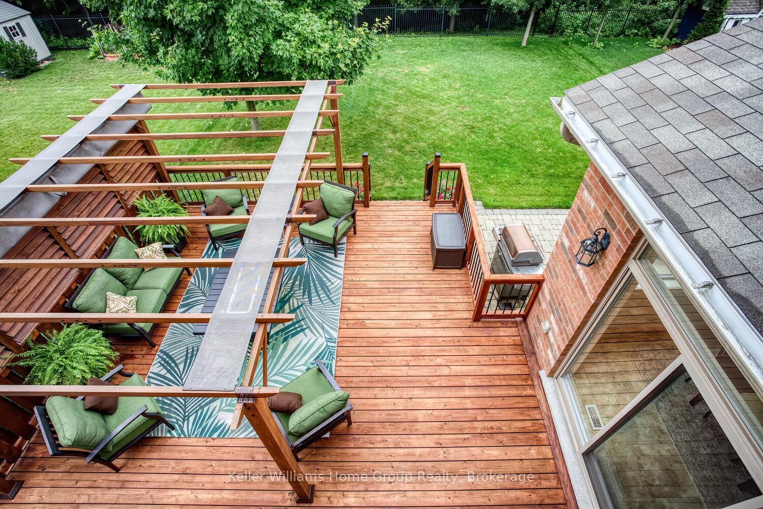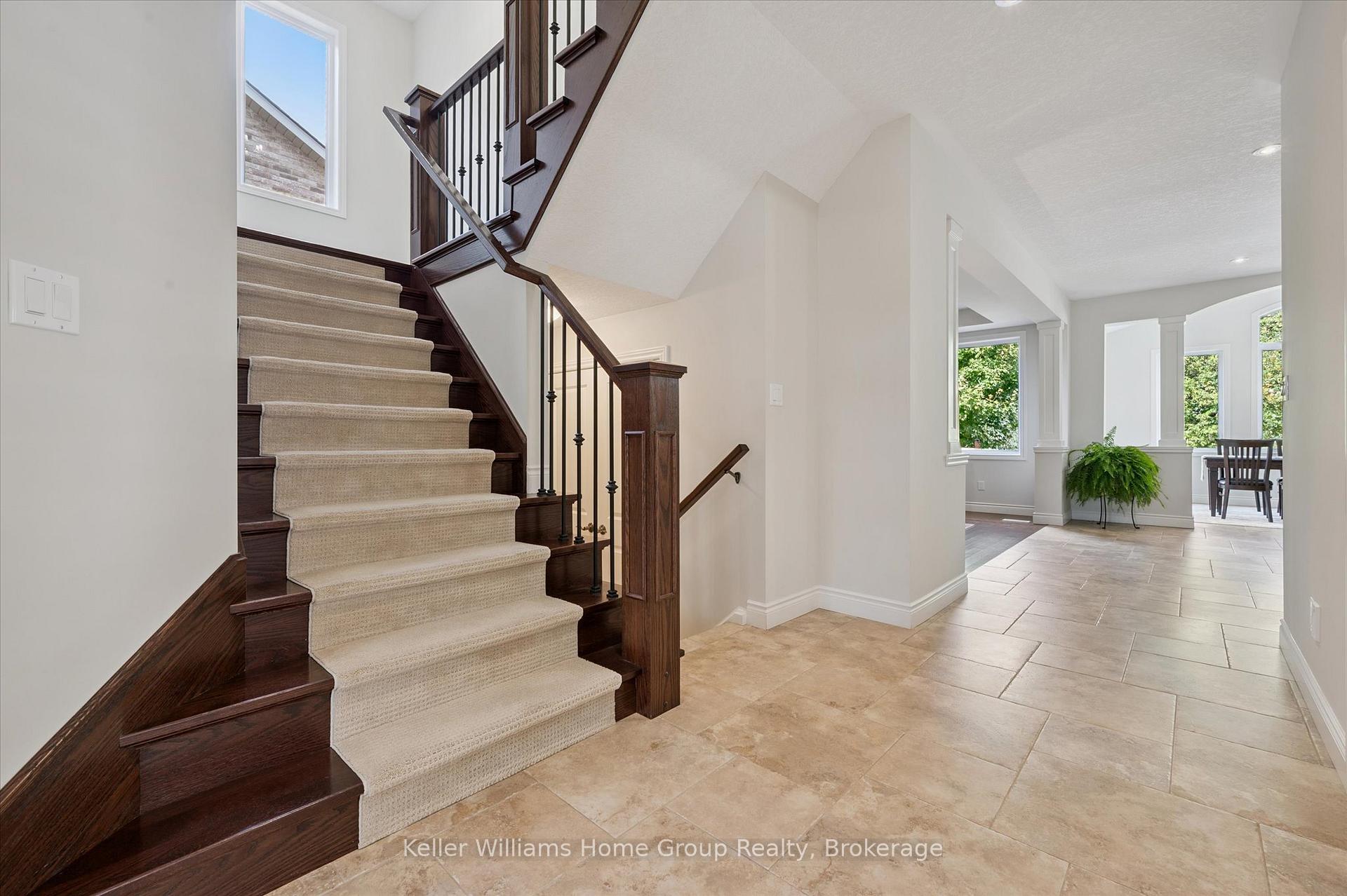 Magnificent Riverside Park Home on the Golf Course! Welcome to a rare opportunity to live in a beautiful, custom-built, 5-bedroom, 5-bathroom home backing directly onto the fairways of Guelph Country Club. With over 4,900 sq ft of finished living space, this exceptional property offers flexibility for multigenerational families. Step inside to a grand main floor featuring 9-ft ceilings, porcelain tile, and rich hardwood flooring throughout. The chef’s kitchen is a showstopper with quartz countertops, built-in appliances, and an oversized island with double sinks, making it perfect for preparing your favorite meals. It opens onto a large family room with a stunning stone-surround and gas fireplace, and to the sunwashed dining room that extends outdoors to the custom cedar deck with gorgeous, treeline view. Plus the spacious yard–your own private retreat–backs onto the picturesque Guelph Golf & Country Club. Upstairs, the spacious primary bedroom retreat offers 2 walk-in closets and a spa-inspired ensuite finished with Quartz countertops, full-sized corner soaker tub, and custom glass shower. And there are 2 more bedrooms and a 5-piece bath ideal for a growing family or extended household. What sets this home apart is the legal 1-bedroom apartment, perfect for guests or independent family living. The fully finished basement offers additional space with oversized windows, gas fireplace, large entertaining space, bathroom, and bedroom with side entrance, which can be converted to a separate apartment. The extra-deep garage is fully insulated with an EV charger. Tucked into North Guelph’s peaceful Riverside Park area, you’re minutes from outdoor fun (golf, walking/hiking//bike trails, cross-country skiing, tobogganing, and playgrounds), shopping, and Guelph’s vibrant downtown. Whether you’re housing family or craving a peaceful view from your back deck, this home is thoughtfully designed, meticulously maintained, and move-in ready for your extended family.