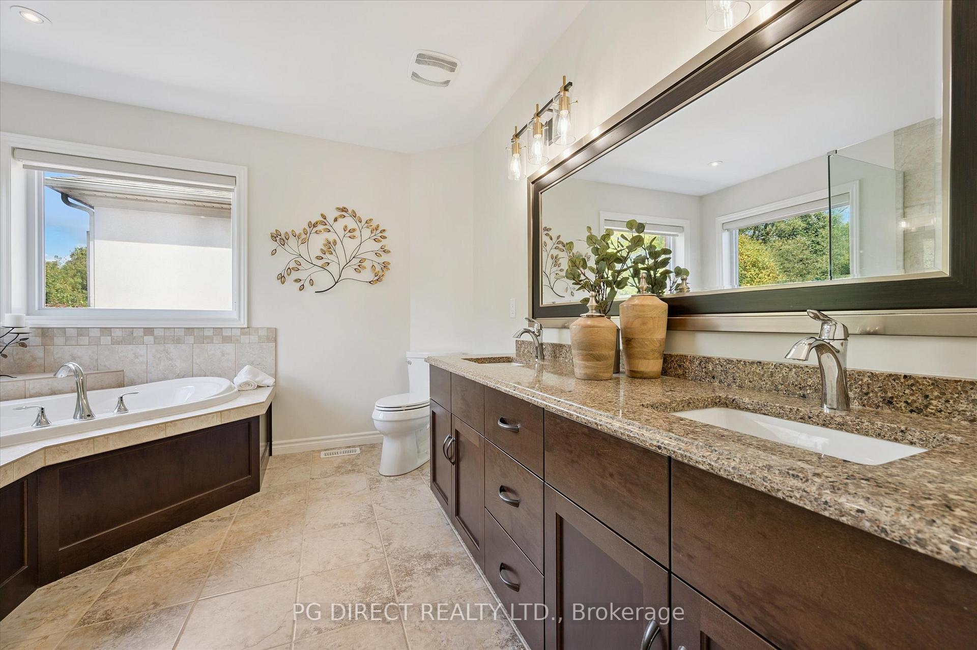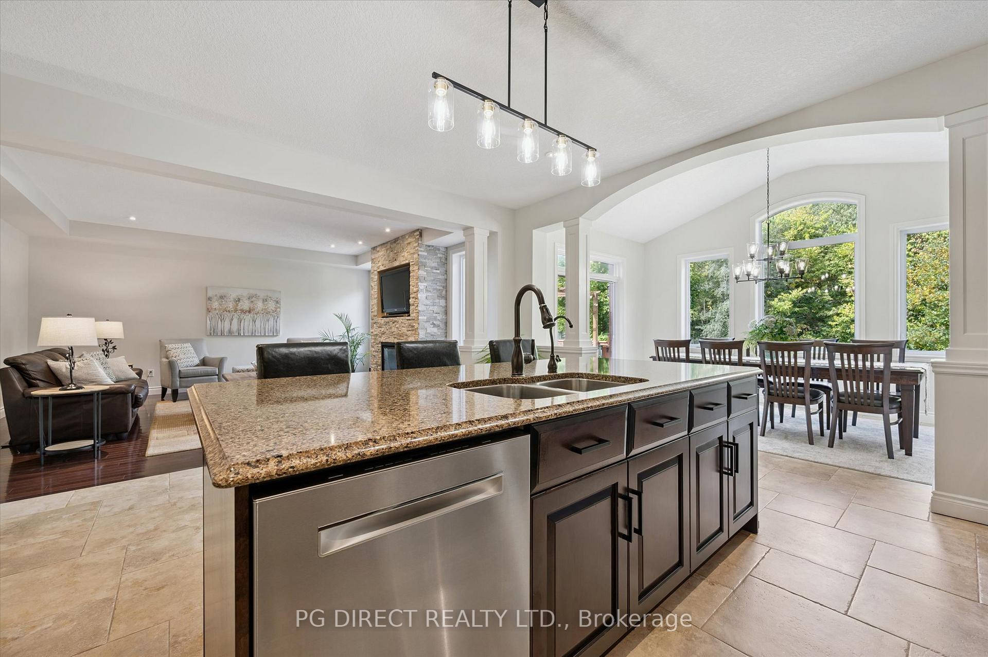 Visit REALTOR website for additional information. Luxury, lifestyle, and flexibility define this exceptional 4,800 sq. ft. custom-built home in the prestigious Riverside Park neighborhood, backing onto the Guelph Golf & Country Club. With 5 bedrooms and 5 bathrooms, mature trees, and tranquil views, this rare offering delivers privacy, space, and everyday elegance in one of the city’s most sought-after settings. Designed for family living and entertaining, the main floor features 9-foot ceilings, porcelain tile, and rich hardwood flooring throughout. The chef’s kitchen flows into a welcoming family room with a stone fireplace, while the dining area is framed by cathedral windows capturing golf course views. Step outside to the custom cedar deck, where indoor and outdoor living blend effortlessly perfect for summer gatherings, quiet mornings, or family celebrations. Versatility sets this home apart. A mid-level legal one-bedroom in-law suite includes its own sitting room, kitchen, bedroom, and bath-ideal for extended family, guests, or added income potential. Upstairs, two generous bedrooms and a full bath complement the expansive primary suite, complete with two walk-in closets, a Juliette balcony, and treetop views. The spa-inspired ensuite offers a soaker tub, glass shower, double sinks, and Cambria quartz countertops filled with natural light. The fully finished lower level adds 1,300 sq. ft. of bright living space, including another bedroom, bathroom, storage, and a large entertainment area with a second fireplace. A side entrance enhances flexibility for family or rental use. An extra-deep double garage and parking for four more vehicles complete this exceptional lifestyle opportunity-an inviting home designed to grow with your family.