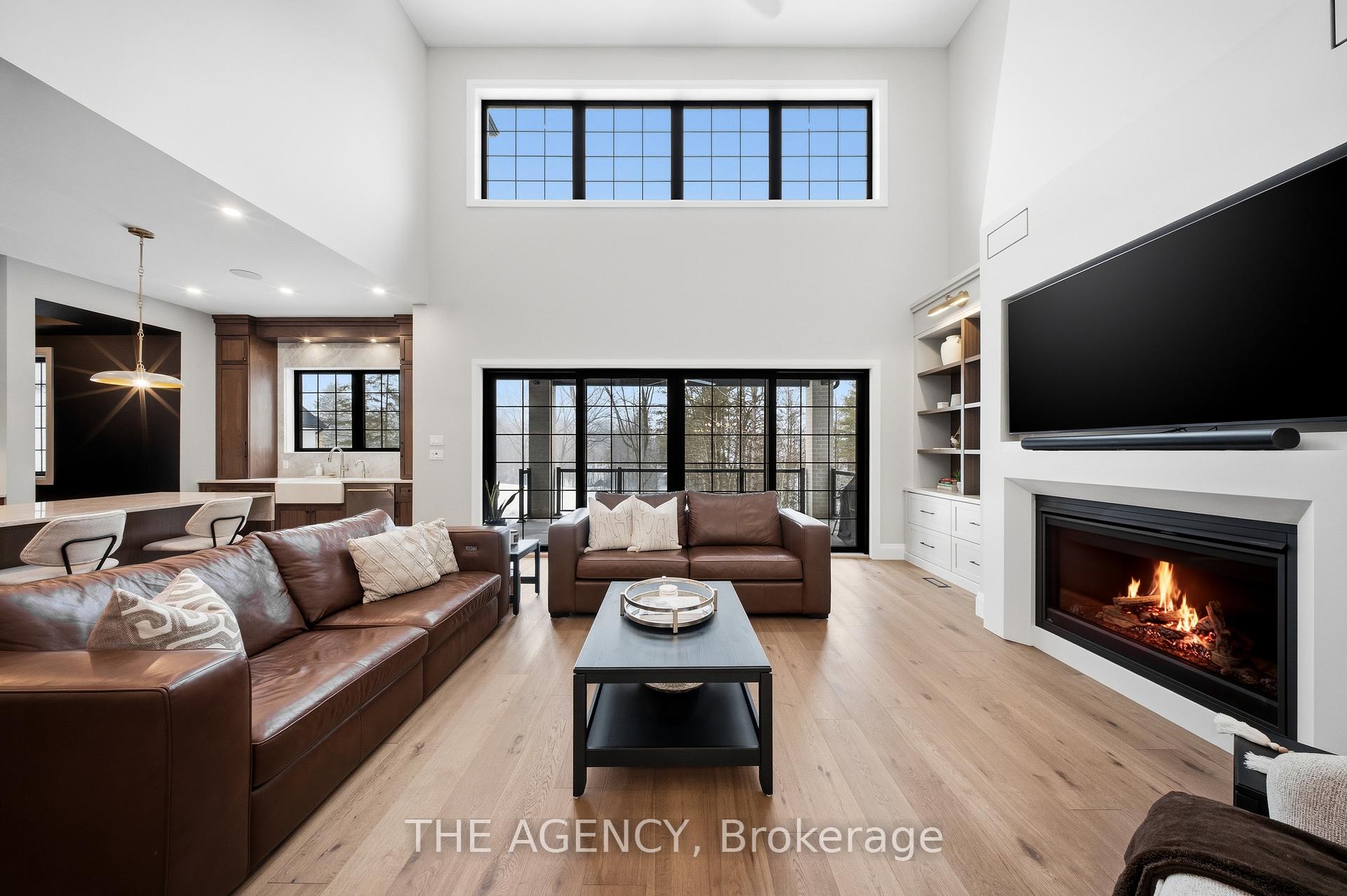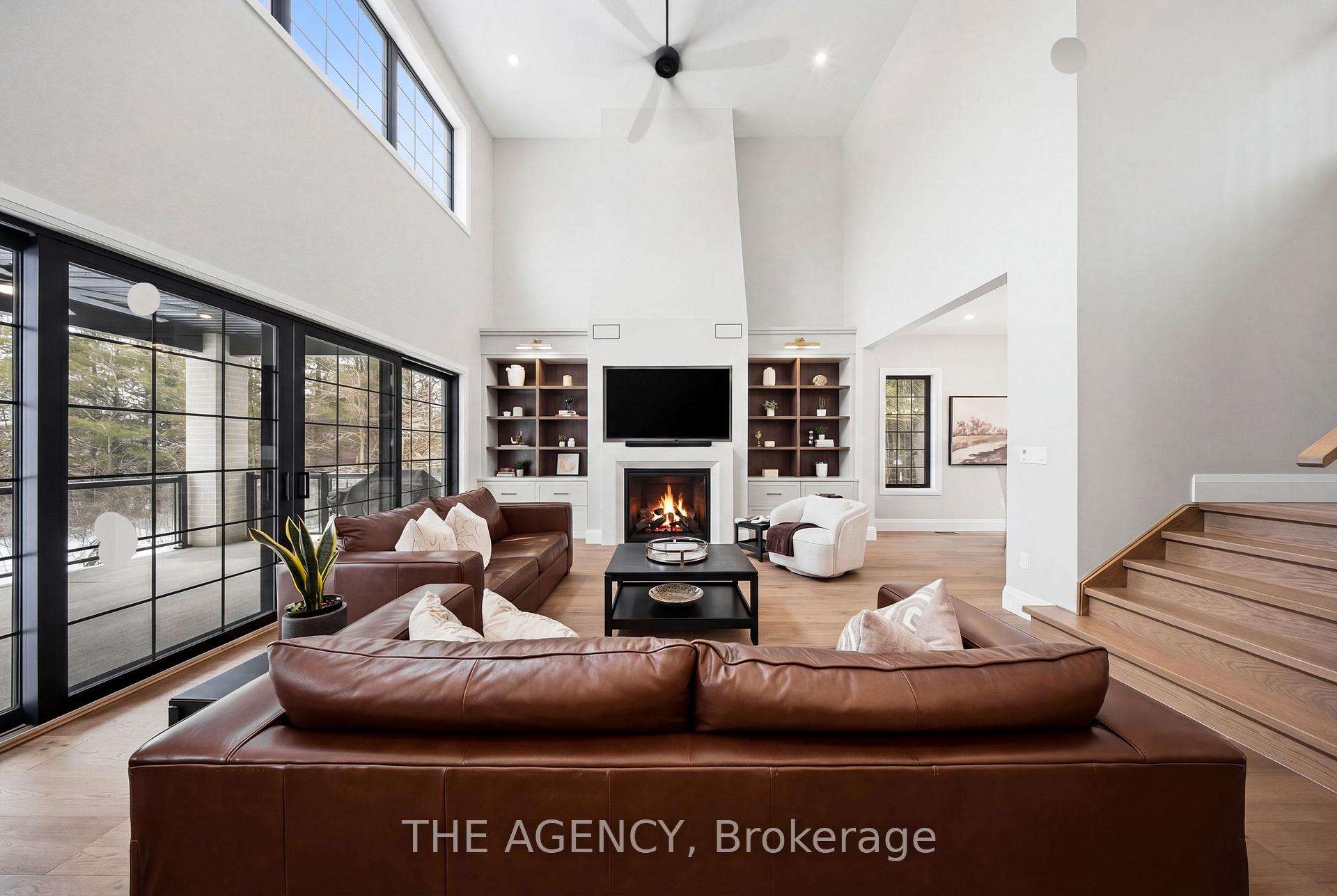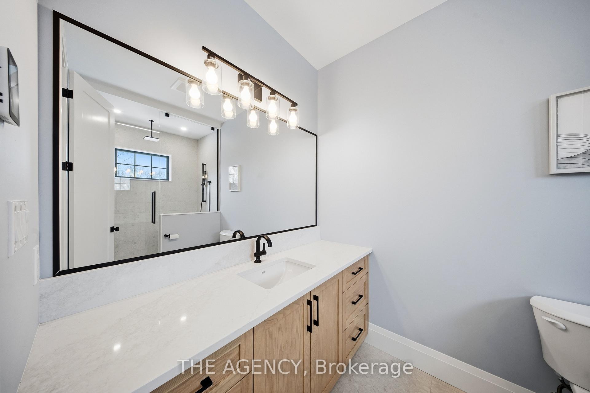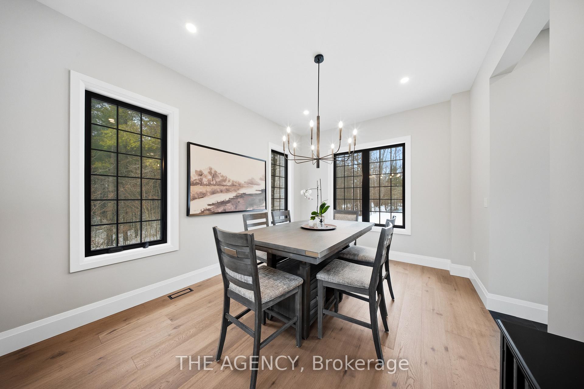 Escape to contemporary elegance in this architecturally stunning estate, nestled on a serene one-acre lot in sought-after Puslinch. Thoughtfully designed and masterfully built, this custom home redefines luxury. Inside, soaring 10-foot ceilings, expansive windows, & a sculptural white oak staircase set the tone for refined living. Natural light fills the home, highlighting exceptional craftsmanship & an effortless sense of openness. At its heart lies a chef’s kitchen featuring quartzite countertops, a full-height backsplash, and sleek Barzotti custom cabinetry throughout. A large island with seating for six, integrated high-end appliances, a walk-through butler’s pantry, and designer lighting. The kitchen flows into a two storey great room, where a dramatic gas fireplace anchors the space. Dual glass sliding doors open to a covered porch and private rear yard, an idyllic backdrop for relaxing or entertaining. A formal dining room & private office complete the main level. Upstairs, four spacious bedrooms and three full bathrooms, each with in-floor heating. The primary suite is a serene retreat with spa-inspired finishes & a custom closet. Aconveniently located upper-level laundry room combines practicality w/ refined design. The lower level features polished concrete floors, a finished powder room, and rough-ins for in-floor heating, a future kitchen, & ensuite. A walk-up leads directly to the fully insulated triple-car garage, complemented by a detached double-car garage. Modern conveniences include 1.5 Gig fibre internet and integrated audio in the kitchen, office, garage, and primary ensuite. With parking for up to 20 vehicles, accommodating any occasion with ease. Wrapped in stone & brick w/black Hardie board accents, a true statement of design and craftsmanship. Located minutes from Highway 6 with direct 401 access, close to South Guelph amenities, and only 40 minutes to Pearson Airport, this estate perfectly balances luxury, lifestyle, & location.