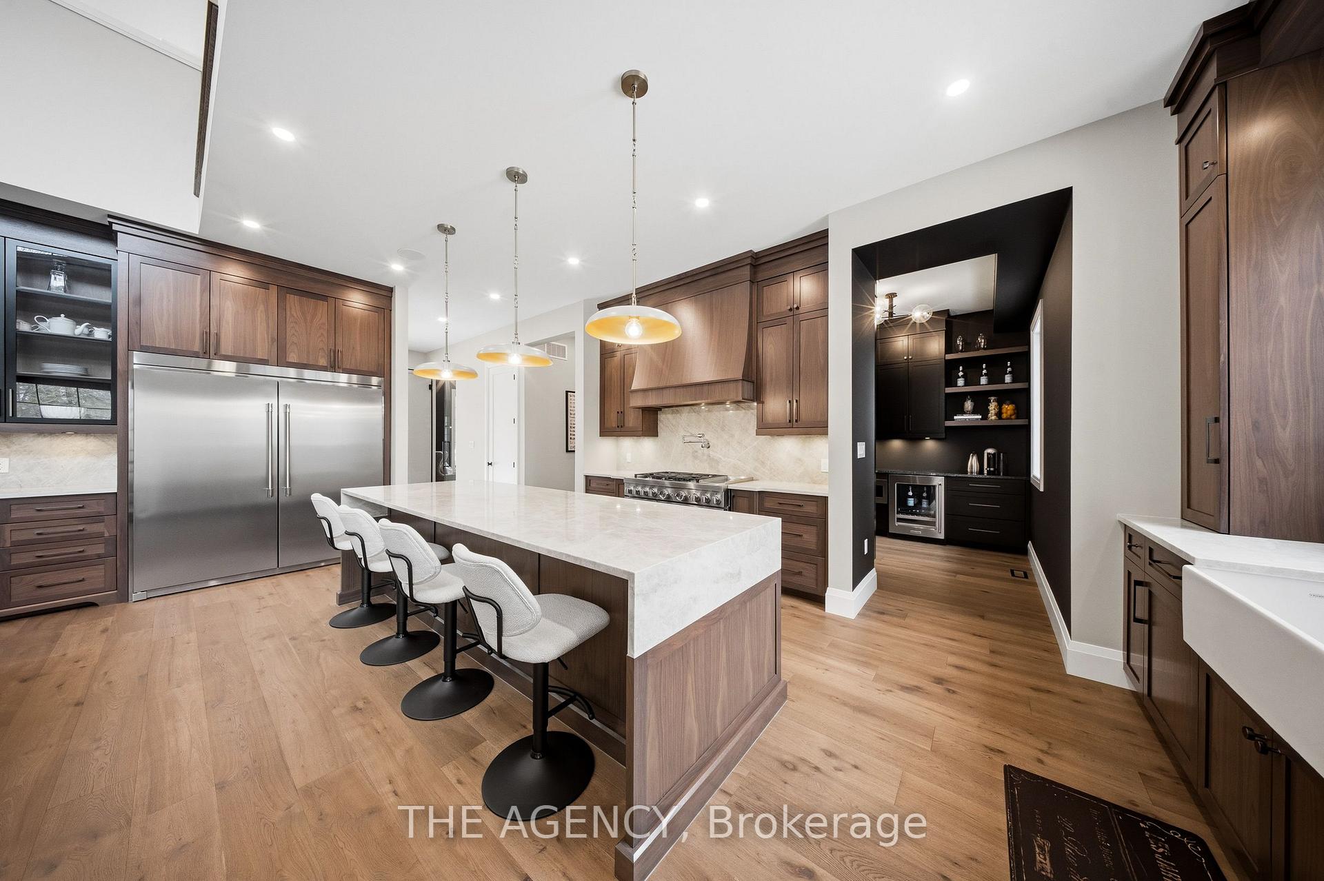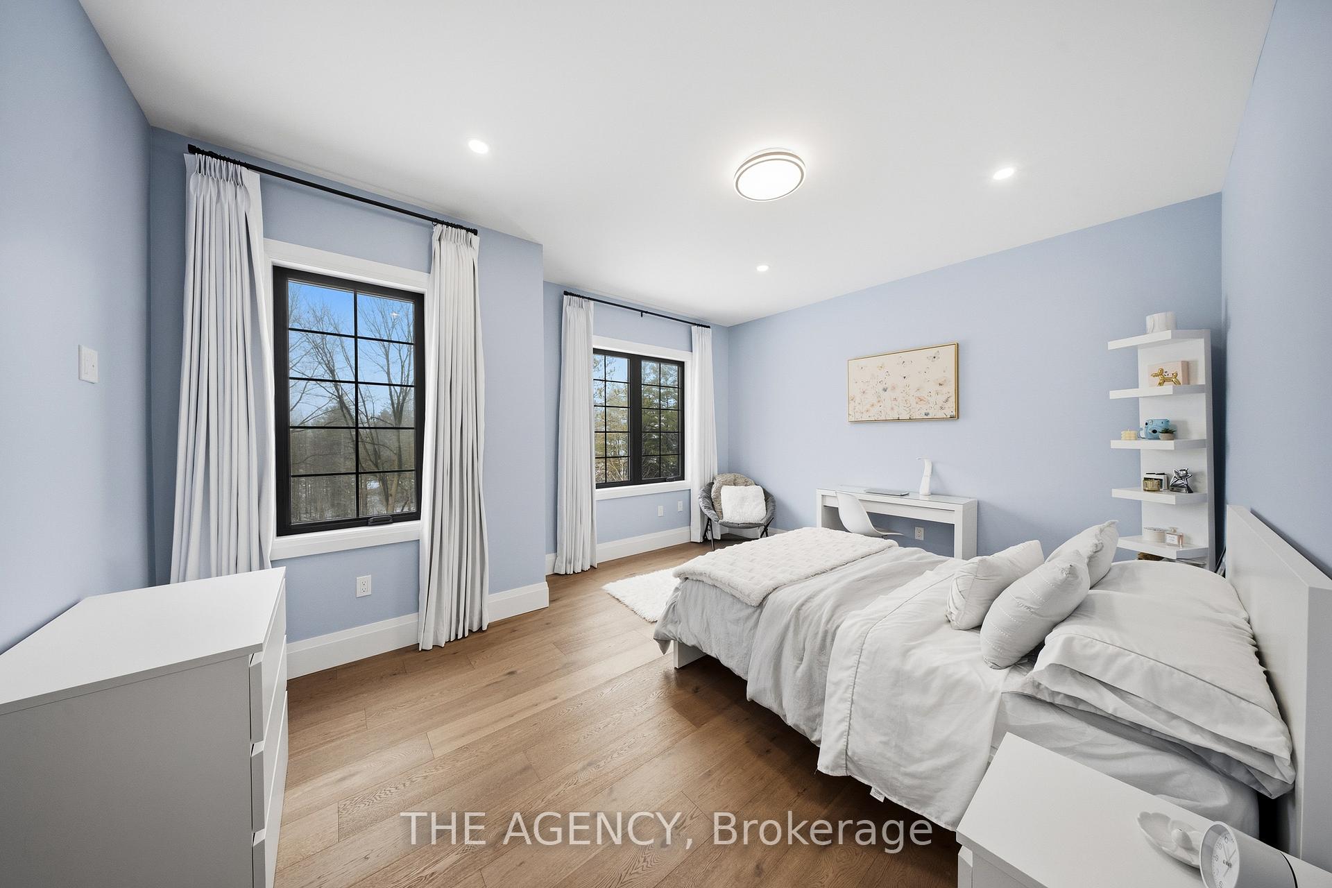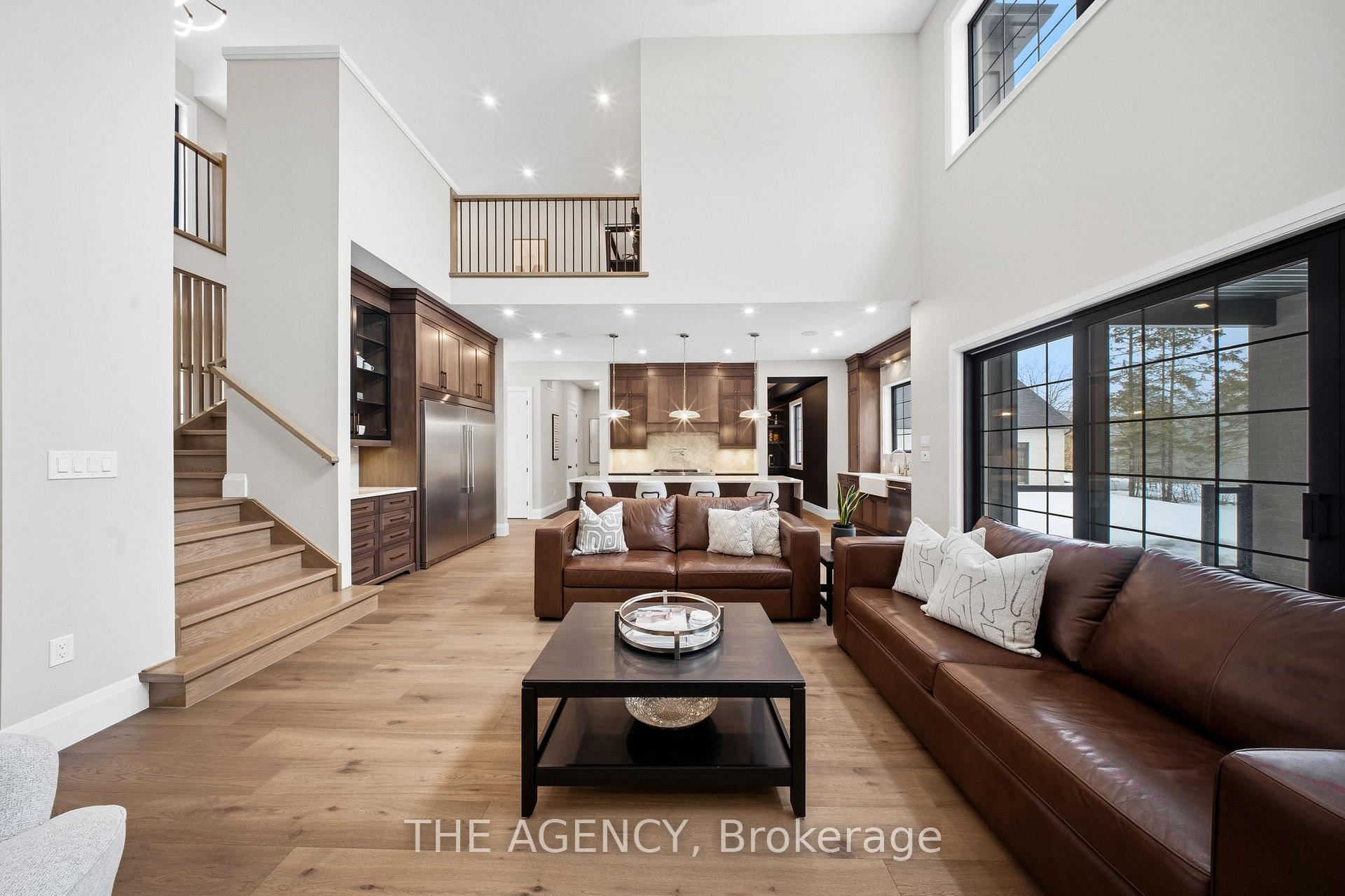 Escape to contemporary elegance in this architecturally stunning estate, nestled on a serene one-acre lot in sought-after Puslinch. Thoughtfully designed and masterfully built, this custom home redefines luxury. Inside, soaring 10-foot ceilings, expansive windows, & a sculptural white oak staircase set the tone for refined living. Natural light fills the home, highlighting exceptional craftsmanship & an effortless sense of openness. At its heart lies a chef’s kitchen featuring quartzite countertops, a full-height backsplash, and sleek Barzotti custom cabinetry throughout. A large island with seating for six, integrated high-end appliances, a walk-through butler’s pantry, and designer lighting. The kitchen flows into a two storey great room, where a dramatic gas fireplace anchors the space. Dual glass sliding doors open to a covered porch and private rear yard, an idyllic backdrop for relaxing or entertaining. A formal dining room & private office complete the main level. Upstairs, four spacious bedrooms and three full bathrooms, each with in-floor heating. The primary suite is a serene retreat with spa-inspired finishes & a custom closet. Aconveniently located upper-level laundry room combines practicality w/ refined design. The lower level features polished concrete floors, a finished powder room, and rough-ins for in-floor heating, a future kitchen, & ensuite. A walk-up leads directly to the fully insulated triple-car garage, complemented by a detached double-car garage. Modern conveniences include 1.5 Gig fibre internet and integrated audio in the kitchen, office, garage, and primary ensuite. With parking for up to 20 vehicles, accommodating any occasion with ease. Wrapped in stone & brick w/black Hardie board accents, a true statement of design and craftsmanship. Located minutes from Highway 6 with direct 401 access, close to South Guelph amenities, and only 40 minutes to Pearson Airport, this estate perfectly balances luxury, lifestyle, & location.