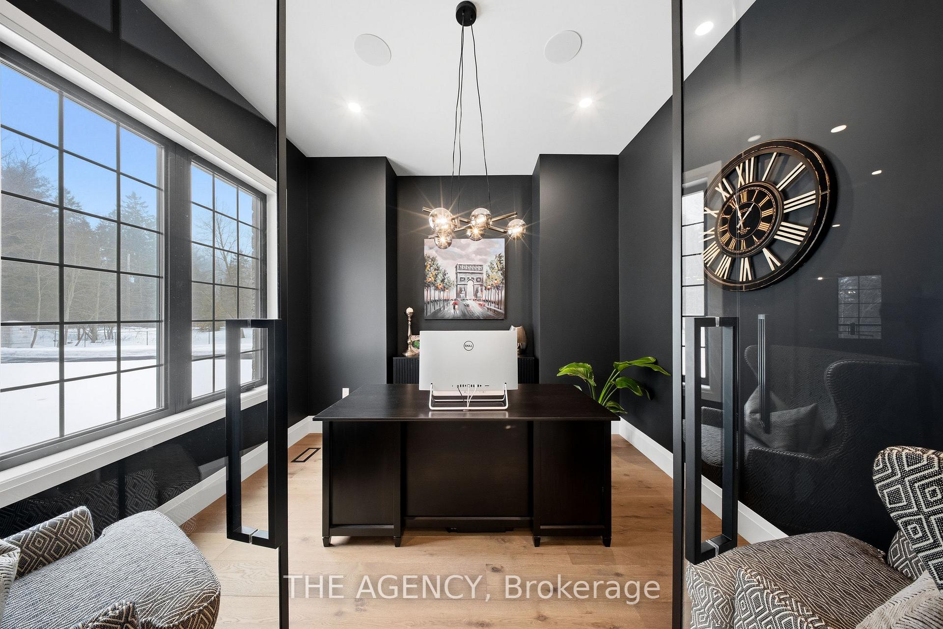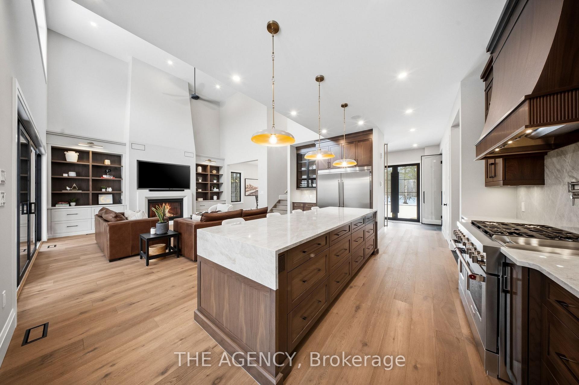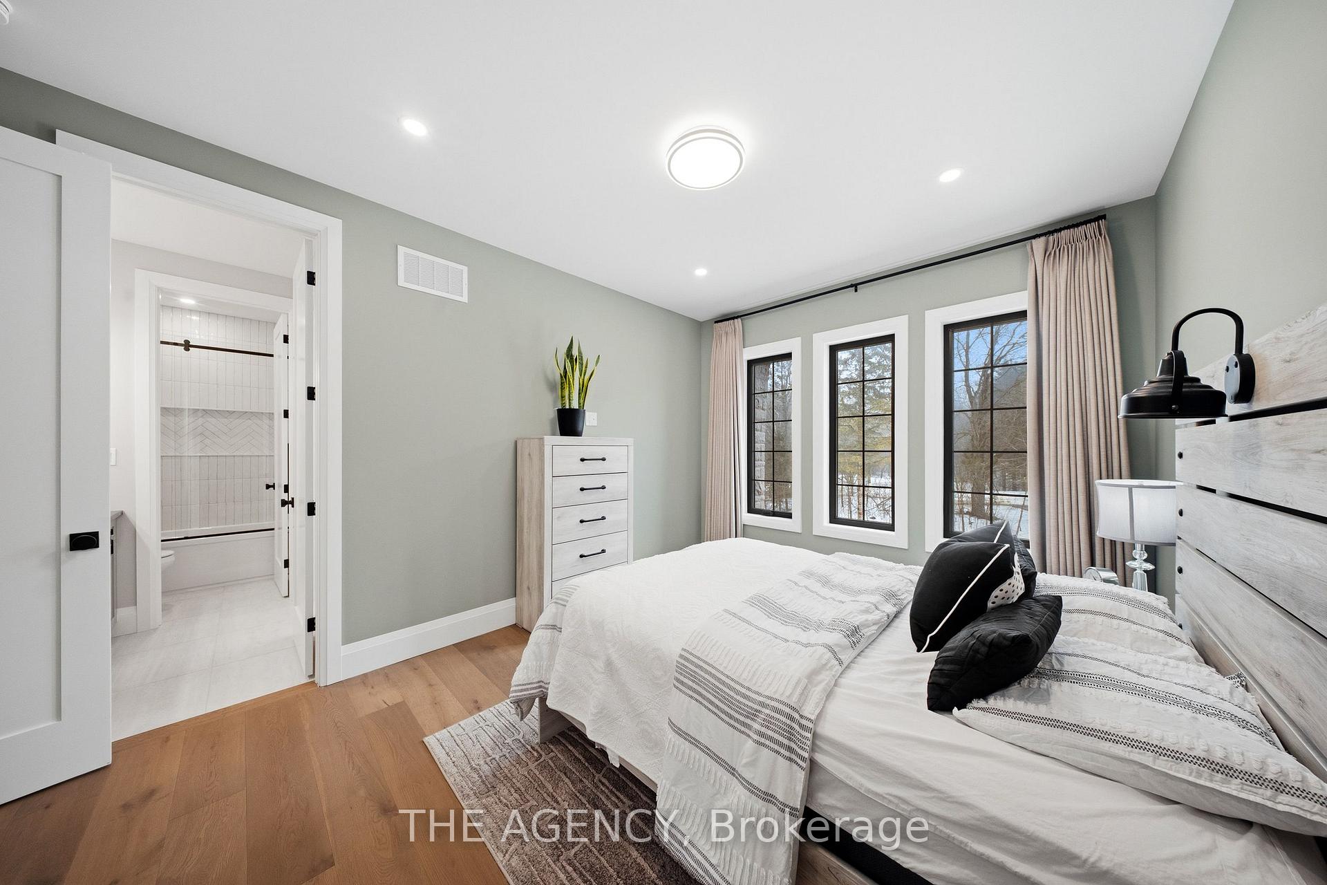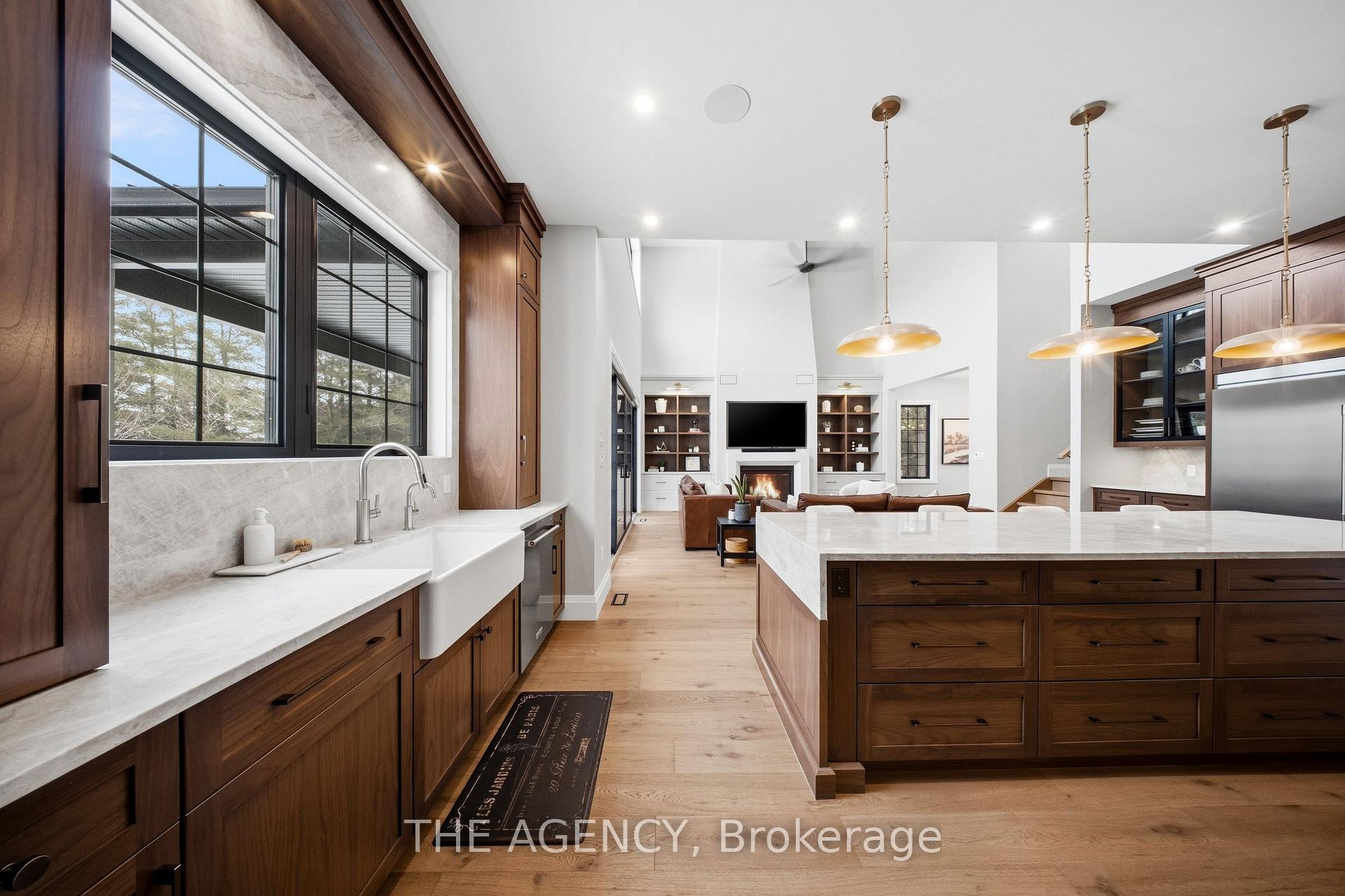 Escape to contemporary elegance in this architecturally stunning estate, nestled on a serene one-acre lot in sought-after Puslinch. Thoughtfully designed and masterfully built, this custom home redefines luxury. Inside, soaring 10-foot ceilings, expansive windows, & a sculptural white oak staircase set the tone for refined living. Natural light fills the home, highlighting exceptional craftsmanship & an effortless sense of openness. At its heart lies a chef’s kitchen featuring quartzite countertops, a full-height backsplash, and sleek Barzotti custom cabinetry throughout. A large island with seating for six, integrated high-end appliances, a walk-through butler’s pantry, and designer lighting. The kitchen flows into a two storey great room, where a dramatic gas fireplace anchors the space. Dual glass sliding doors open to a covered porch and private rear yard, an idyllic backdrop for relaxing or entertaining. A formal dining room & private office complete the main level. Upstairs, four spacious bedrooms and three full bathrooms, each with in-floor heating. The primary suite is a serene retreat with spa-inspired finishes & a custom closet. Aconveniently located upper-level laundry room combines practicality w/ refined design. The lower level features polished concrete floors, a finished powder room, and rough-ins for in-floor heating, a future kitchen, & ensuite. A walk-up leads directly to the fully insulated triple-car garage, complemented by a detached double-car garage. Modern conveniences include 1.5 Gig fibre internet and integrated audio in the kitchen, office, garage, and primary ensuite. With parking for up to 20 vehicles, accommodating any occasion with ease. Wrapped in stone & brick w/black Hardie board accents, a true statement of design and craftsmanship. Located minutes from Highway 6 with direct 401 access, close to South Guelph amenities, and only 40 minutes to Pearson Airport, this estate perfectly balances luxury, lifestyle, & location.