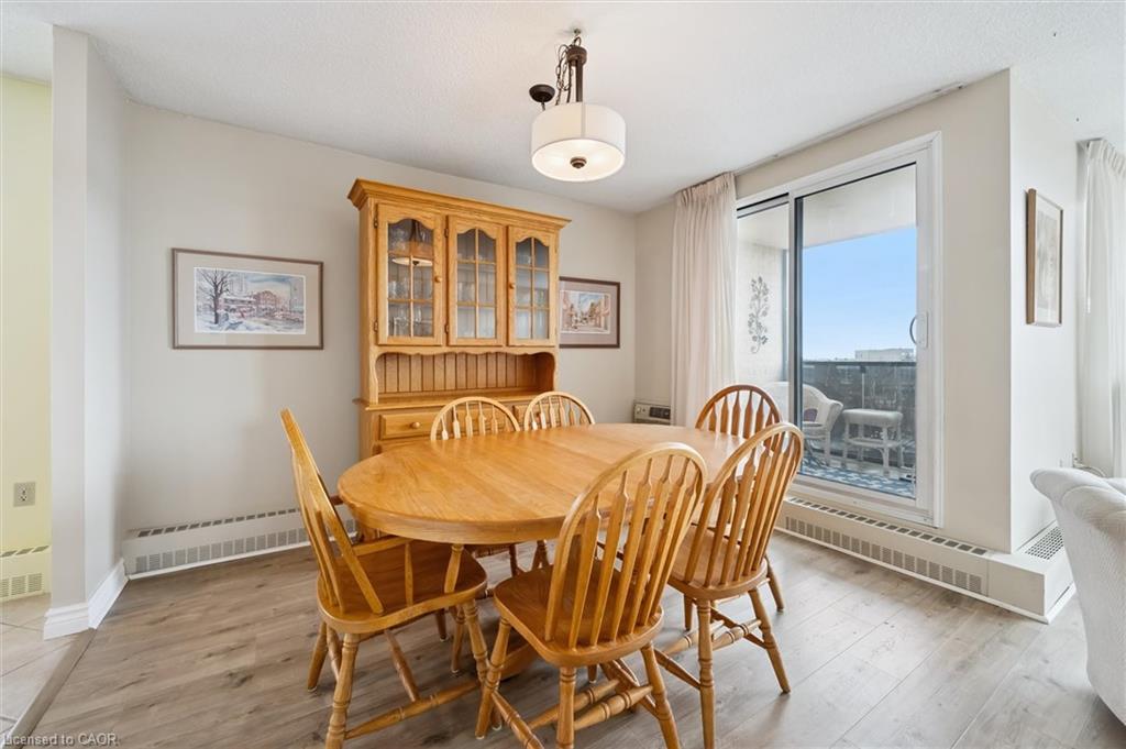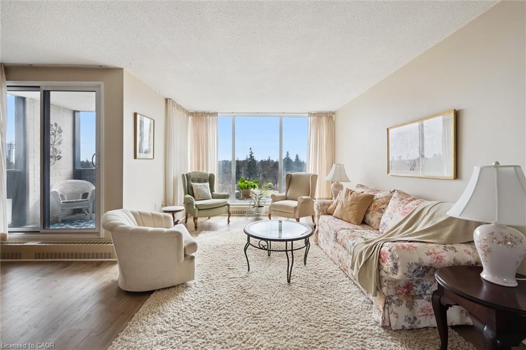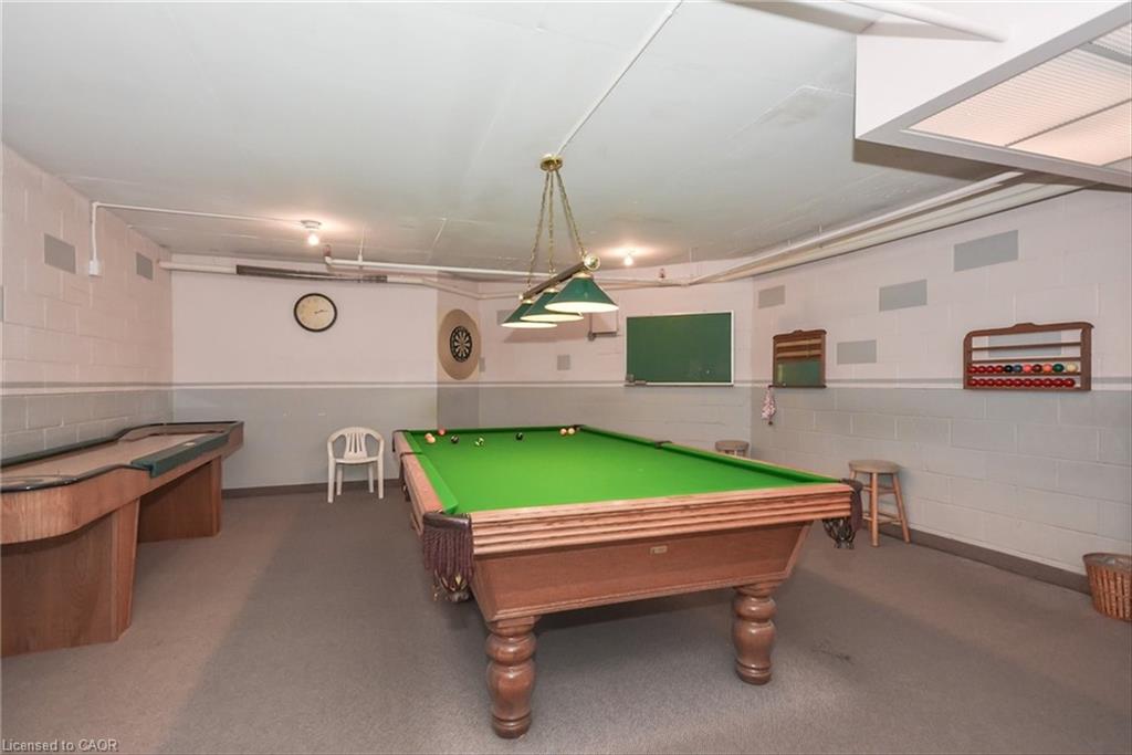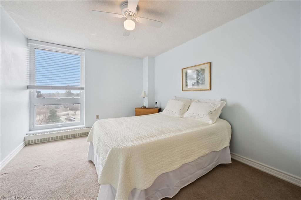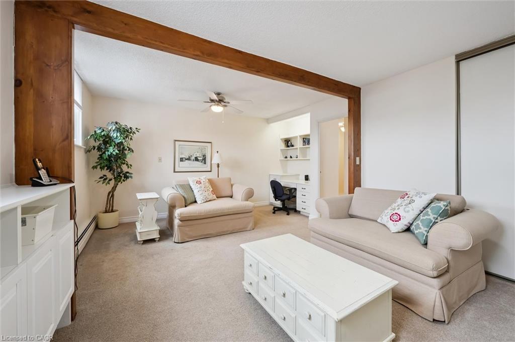 Welcome to this bright and versatile 2-bedroom condo offering a smart layout and comfortable living. The open-concept principal rooms are filled with natural light, creating an inviting space for both everyday living and entertaining. The primary bedroom features a convenient 2-piece ensuite, while the large second bedroom, currently configured as a family room, provides flexibility to suit your lifestyle. The unit also includes an updated 3-piece main bathroom, in-suite laundry, and a private balcony to enjoy your morning coffee or unwind during the warmer months. Originally designed as a 3-bedroom unit, this condo offers the option to easily convert back for those needing additional space. Residents have access to an impressive range of building amenities, including an outdoor pool, sauna, tennis court, workshop, bike storage, fitness room, party room, and more- everything you need for an active and social lifestyle. Condo fees include water, heat, hydro, and 1 carport parking space, offering excellent value and peace of mind. Ideally located close to Riverside Park and scenic walking trails leading to Guelph Lake, this condo is perfect for those who enjoy nature while staying connected to city conveniences.