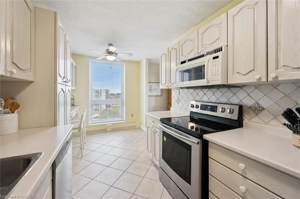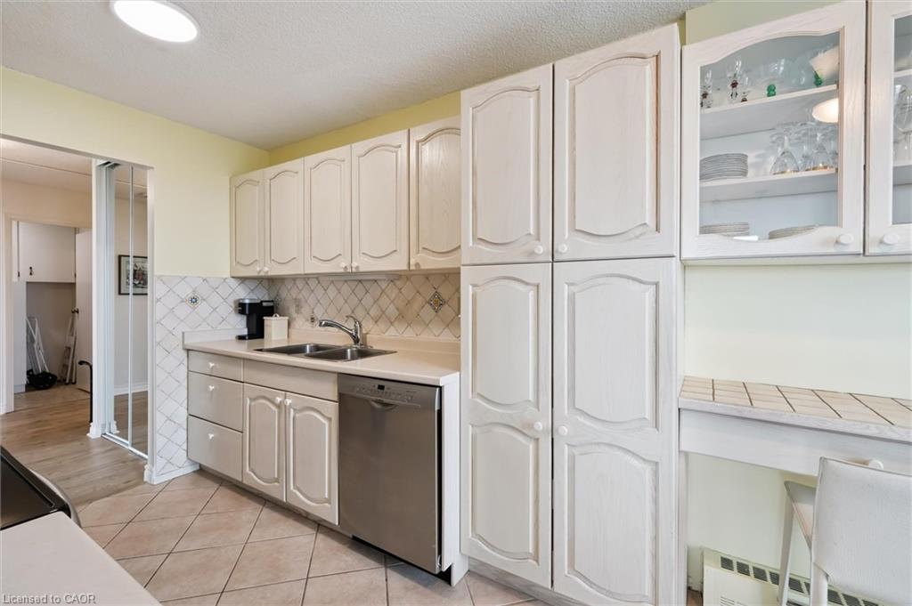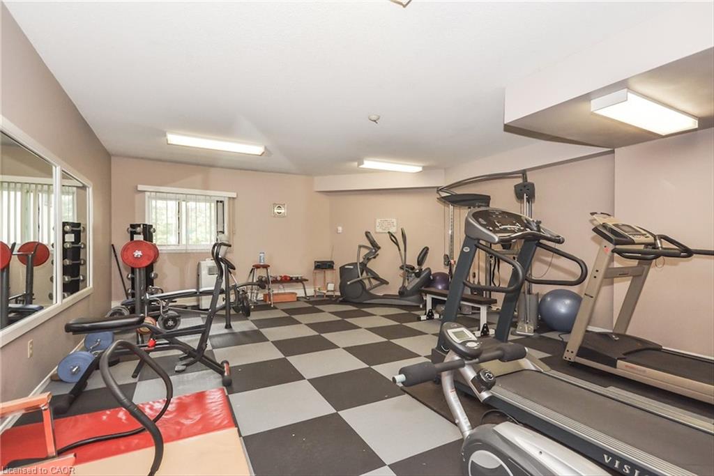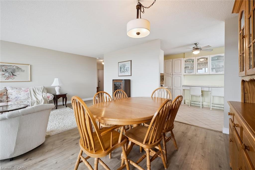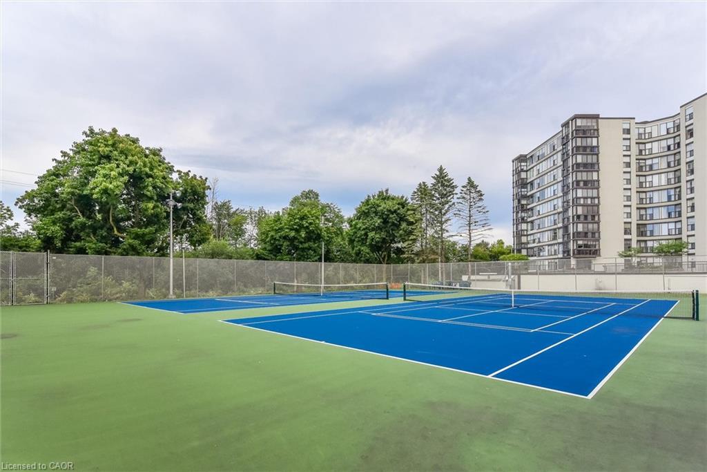 Welcome to this bright and versatile 2-bedroom condo offering a smart layout and comfortable living. The open-concept principal rooms are filled with natural light, creating an inviting space for both everyday living and entertaining. The primary bedroom features a convenient 2-piece ensuite, while the large second bedroom, currently configured as a family room, provides flexibility to suit your lifestyle. The unit also includes an updated 3-piece main bathroom, in-suite laundry, and a private balcony to enjoy your morning coffee or unwind during the warmer months. Originally designed as a 3-bedroom unit, this condo offers the option to easily convert back for those needing additional space. Residents have access to an impressive range of building amenities, including an outdoor pool, sauna, tennis court, workshop, bike storage, fitness room, party room, and more- everything you need for an active and social lifestyle. Condo fees include water, heat, hydro, and 1 carport parking space, offering excellent value and peace of mind. Ideally located close to Riverside Park and scenic walking trails leading to Guelph Lake, this condo is perfect for those who enjoy nature while staying connected to city conveniences.