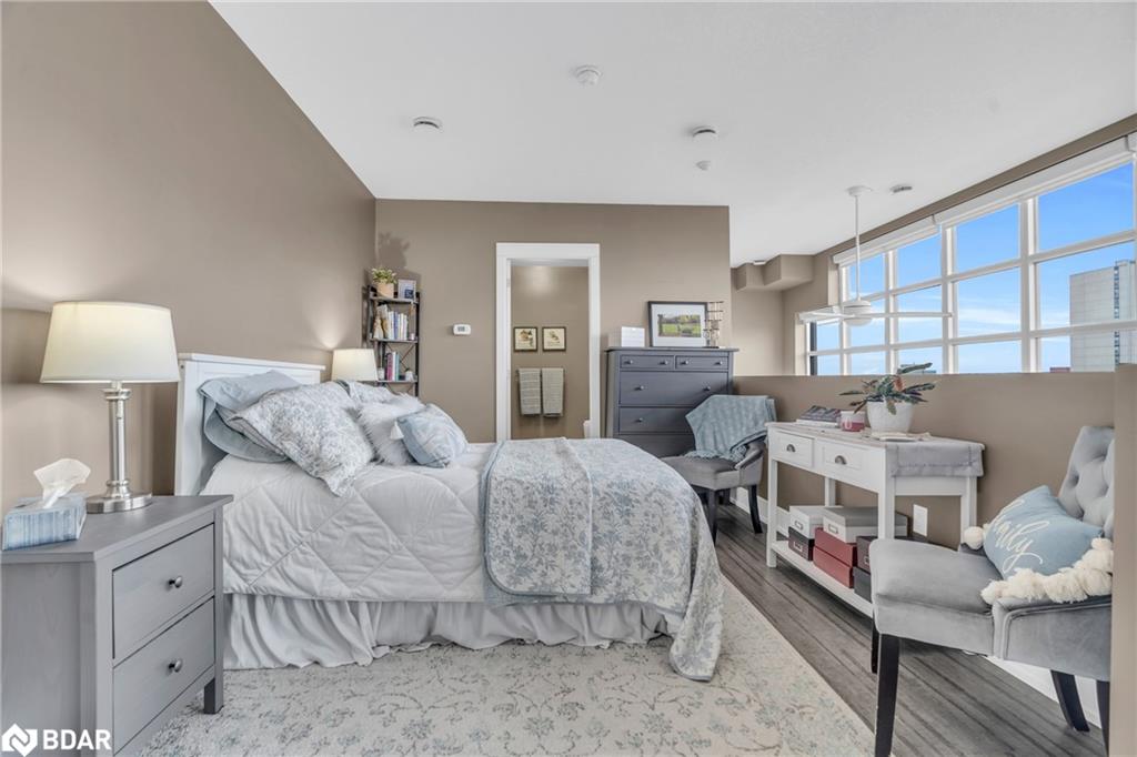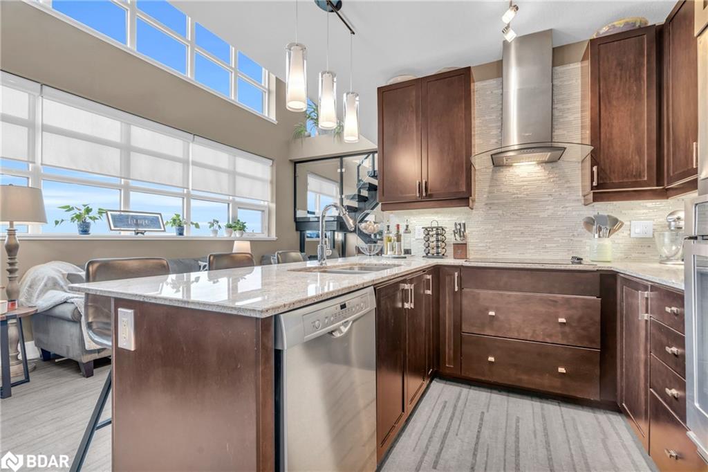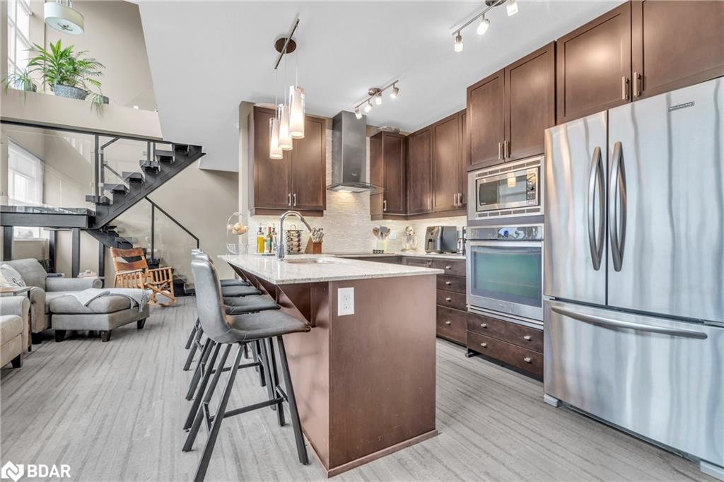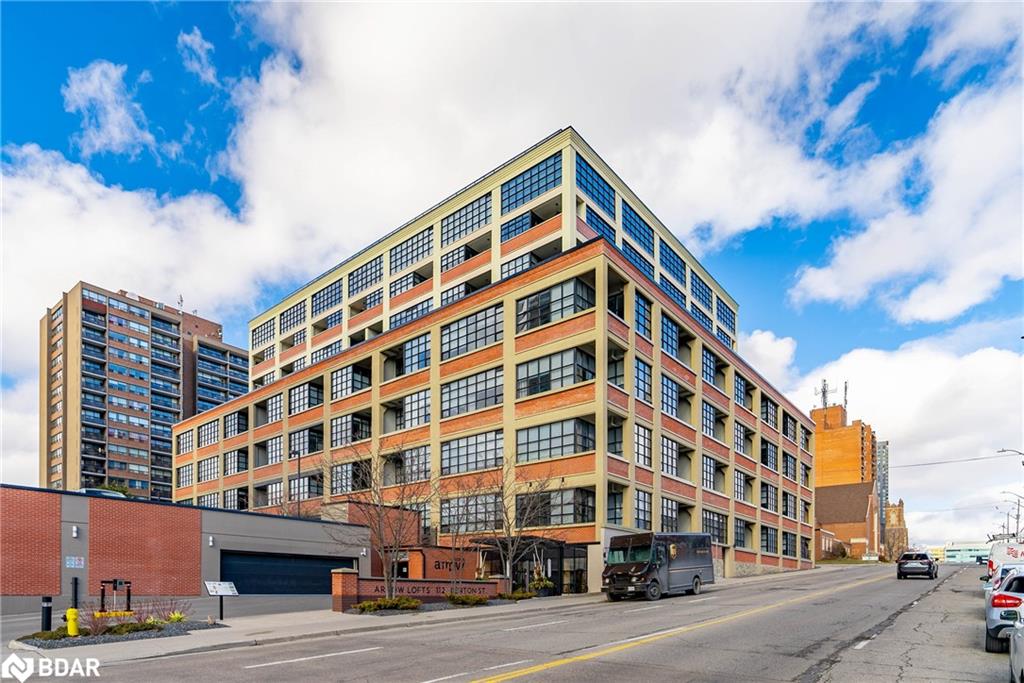 Stunning loft penthouse unit located in Arrow Lofts Condominiums minutes from downtown Kitchener. Bright sun filled one bedroom two bathroom open concept unit with oversized south facing windows and cork flooring throughout. Upgraded kitchen with built in stainless steel appliances, marble backsplash, granite counter, large island and walk in pantry. Primary bedroom is privately located on second level and is open to below with walk-in closet and 4 piece ensuite. Level above merely steps away is rooftop patio with garden and barbeques perfect for enjoying summer evenings. Ideal location, steps to transit, restaurants and parks. This unit will not disappoint.