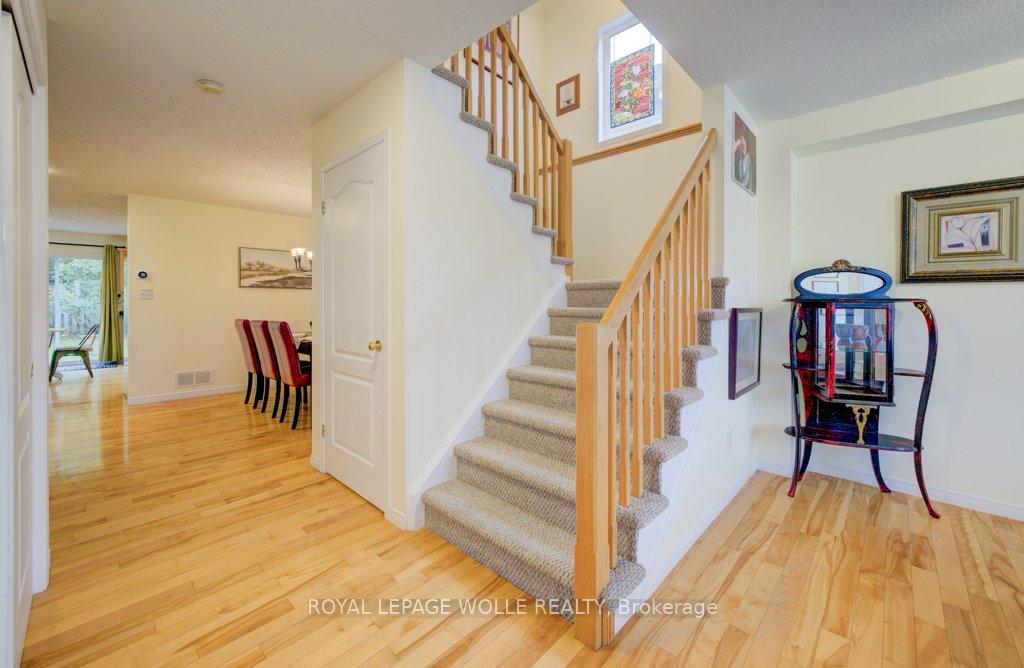 Welcome to 704 Shediac Crescent – A Beautiful Family Home in Waterloo’s Sought-After Eastbridge Community! Located on a quiet, family-friendly street, this beautifully maintained home blends timeless curb appeal with modern comfort – perfect for growing families. Enjoy unbeatable convenience in the desirable Eastbridge neighbourhood, just minutes from parks, trails, top-rated schools, RIM Park, Grey Silo Golf Club, Conestoga Mall, and the St. Jacobs Market. Inside, a bright and airy layout features hardwood flooring and large windows that flood the space with natural light. The main floor offers a welcoming living room, formal dining room, and a sunlit family room with vaulted ceilings overlooking the private backyard – ideal for entertaining or relaxing. The open-concept kitchen is outfitted with stainless steel appliances, ample counter space, and a pantry. Sliding doors lead to a backyard patio, creating a seamless indoor-outdoor flow. A main-floor laundry room with garage access and a 2-piece bath add everyday convenience. Upstairs, you’ll find four spacious bedrooms, including a bright primary suite with a walk-in closet and a 4-piece ensuite featuring a soaker tub and separate shower. A modern 3-piece bath with a glass walk-in shower serves the rest of the upper level. The fully finished basement offers even more living space, with a large recreation room, a cozy gas fireplace, an updated 4-piece bath, and a flex room – ideal for a home office, gym, or playroom. Outside, enjoy a beautifully landscaped, fenced backyard lined with privacy trees and a patio perfect for BBQs or morning coffee. Parking for six vehicles completes the package. This is your opportunity to own a spacious, stylish, and well-located home in one of Waterloo’s most desirable neighbourhoods!