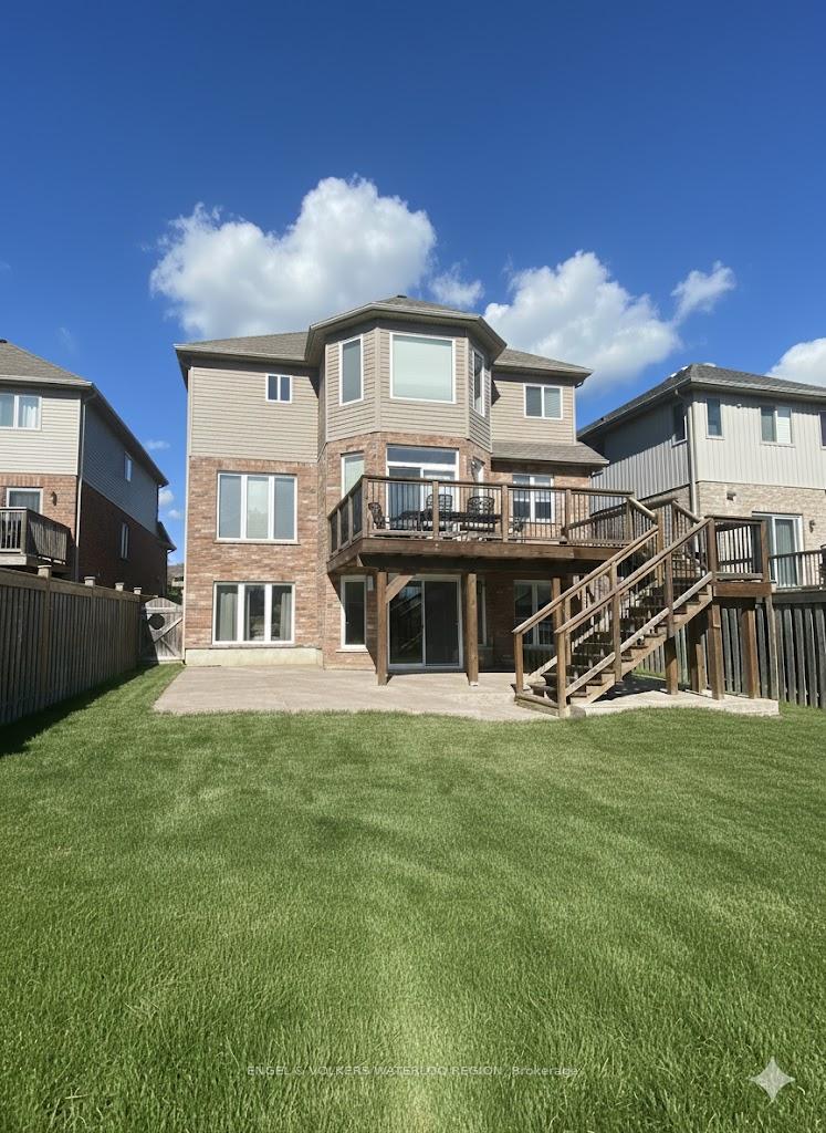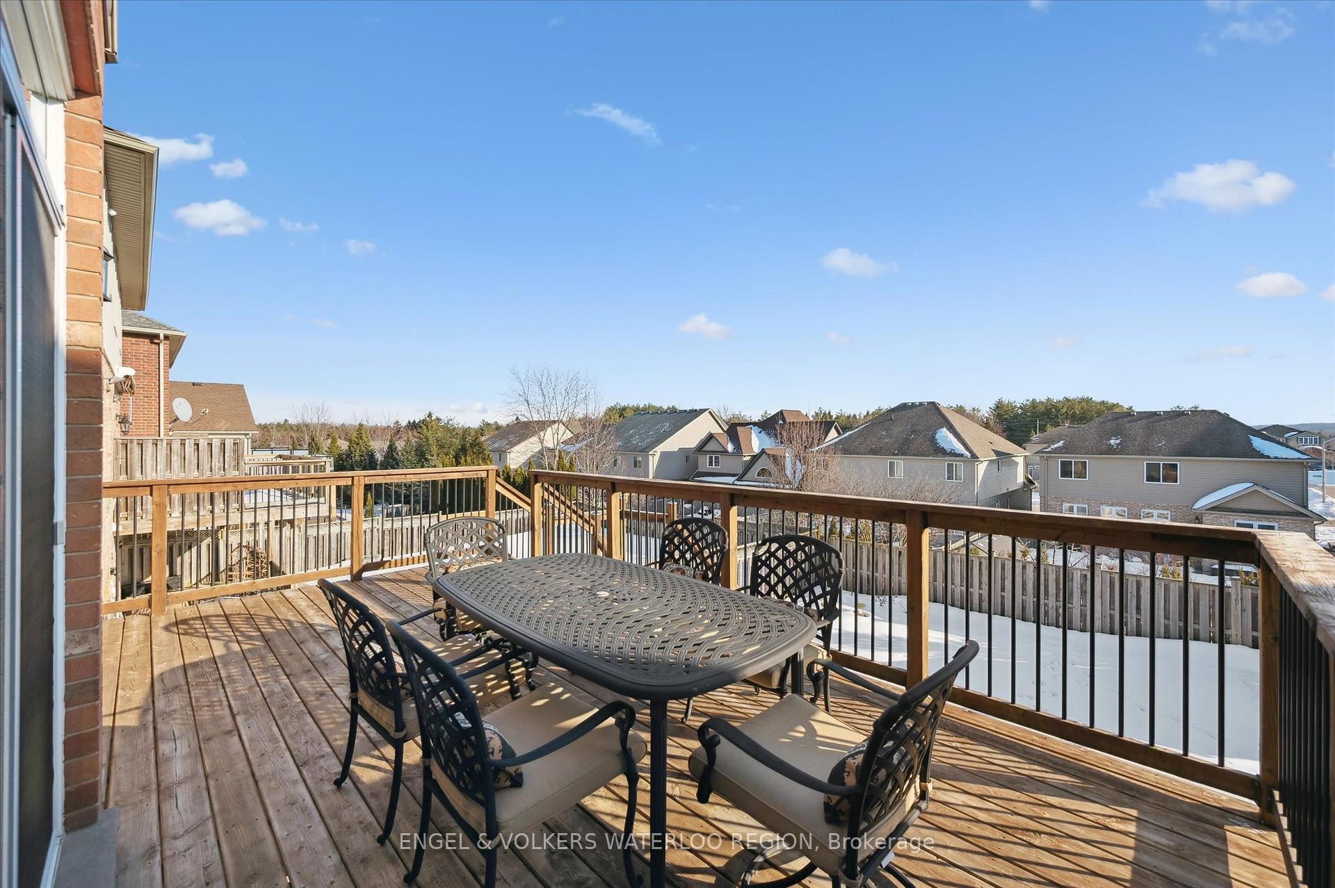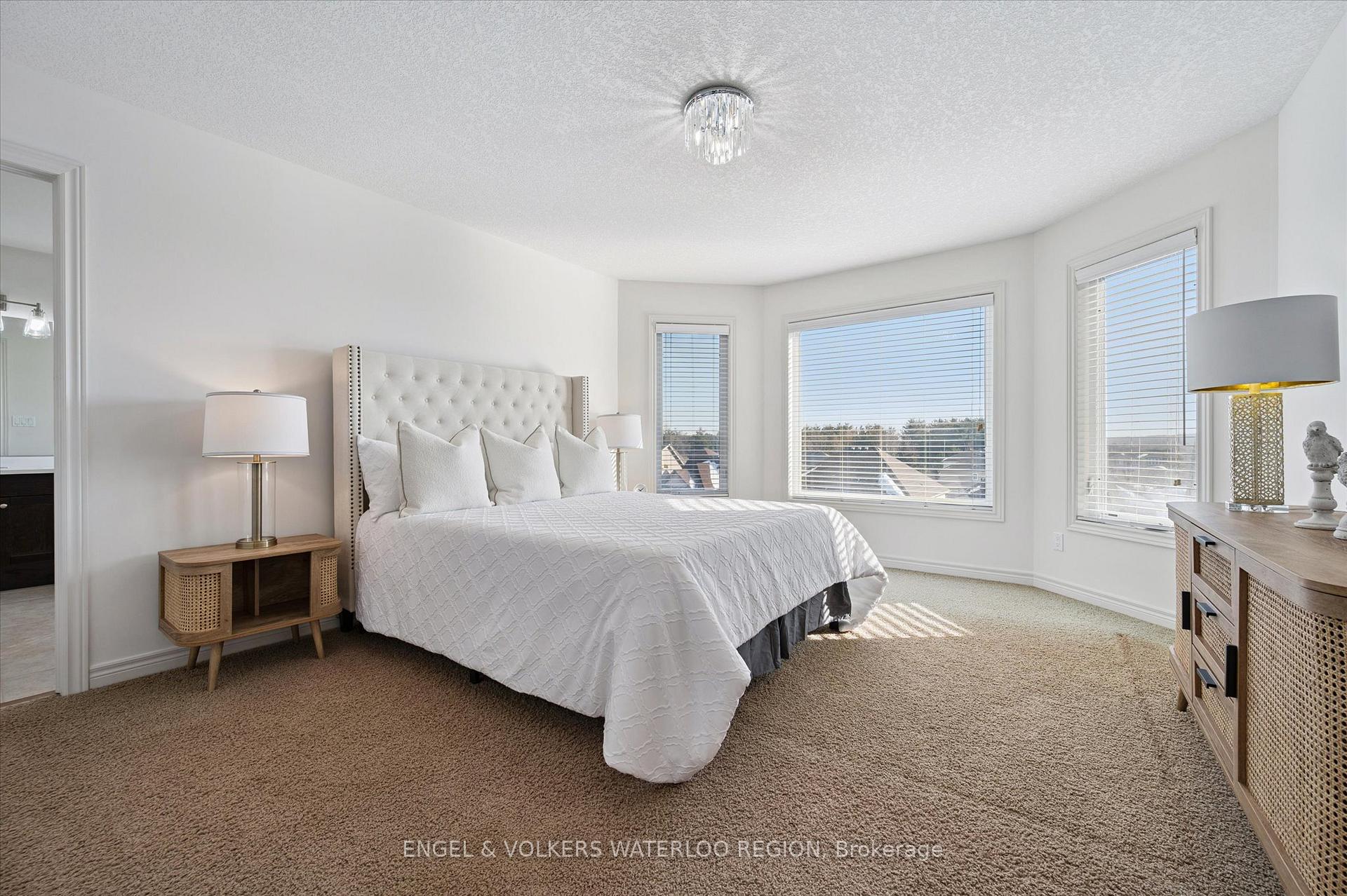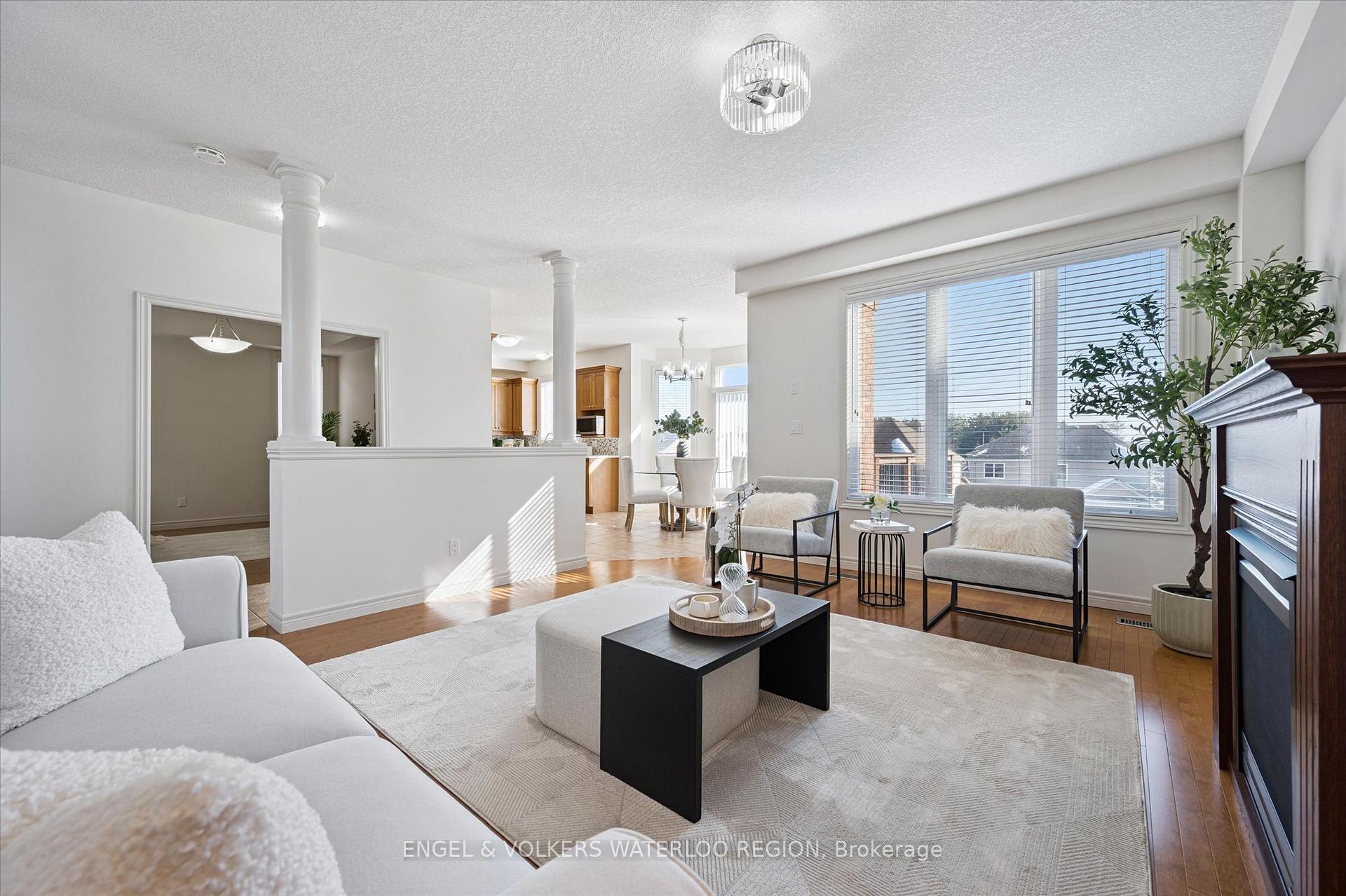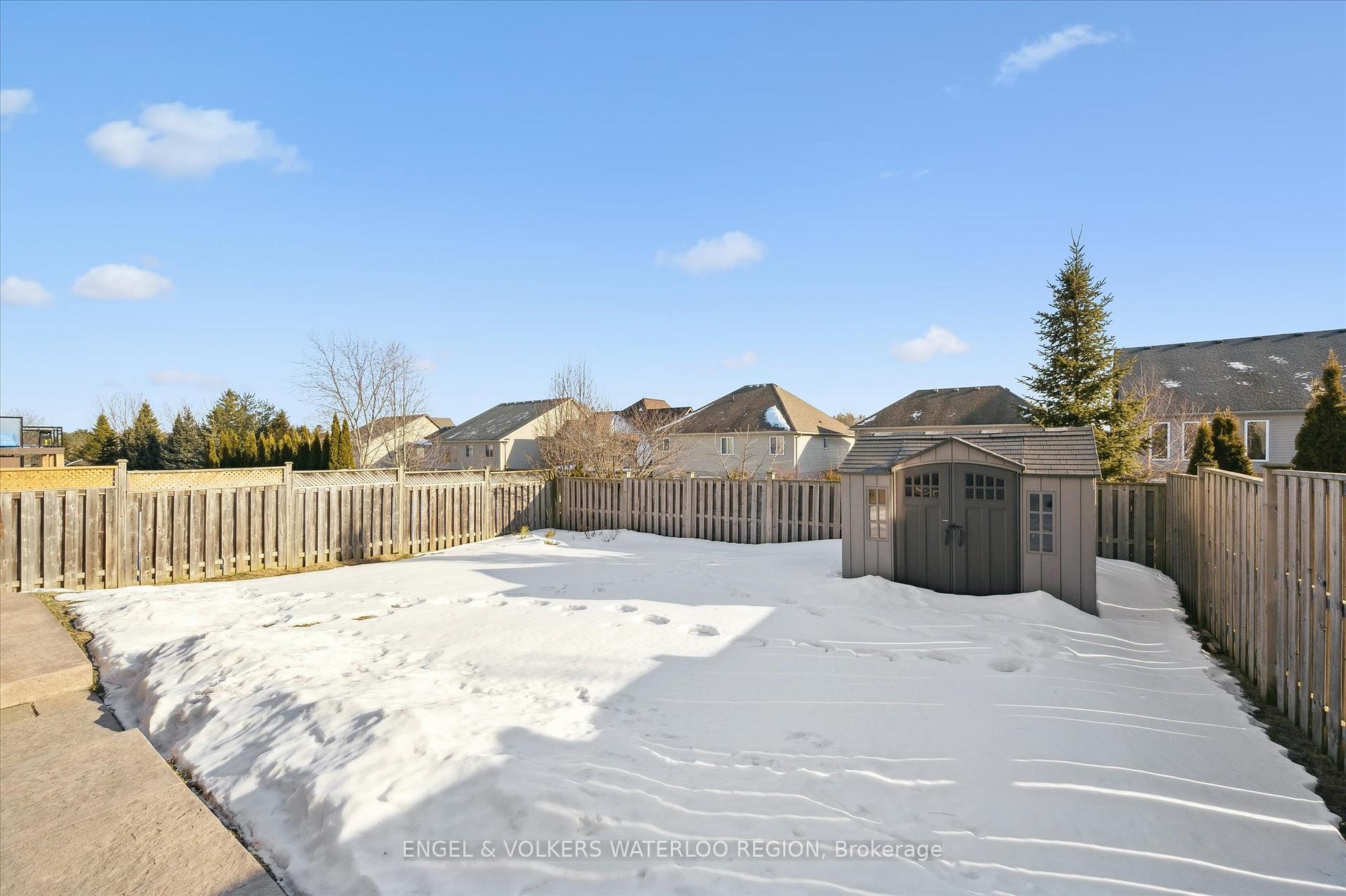 Nestled in one of Waterloo’s most sought-after neighbourhoods, this distinguished home in Conservation Meadows offers the perfect blend of elegance, comfort, and convenience. Situated on a quiet cul-de-sac, the property is thoughtfully maintained and beautifully appointed, showcasing exceptional curb appeal with its attractive exterior, double-car garage, concrete driveway accommodating four vehicles, and no sidewalk. Step inside to a bright and welcoming foyer featuring a soaring double-height ceiling and a walk-in closet. The main floor boasts 9-foot ceilings and a spacious, sun-filled living room with south-facing windows and a cozy gas fireplace. The generously sized kitchen is designed for both functionality and style, featuring abundant cabinetry, stainless steel appliances, and stunning quartz countertops. It opens seamlessly to the dining area, which overlooks clear, open views. Step outside to a large deck with stairs leading to an expansive concrete patio and a fully fenced, well-maintained backyard complete with manicured lawns and a solidly built shed. A versatile main-floor room with double doors offers flexibility as a private family room, home office, or formal dining room. A convenient powder room completes the main level. Upstairs, the primary bedroom is bathed in natural light from beautiful bay windows and features a walk-in closet and a 5-piece ensuite. Two additional well-sized bedrooms share a 4-piece bathroom. A second-floor laundry set adds everyday convenience. The fully finished walk-out basement significantly expands the living space, offering a large recreation room with a wet bar and dining area, a spacious bedroom with a study area and walk-in closet, a full 3-piece bathroom, an additional laundry set, and a cold room. Located just minutes from top-rated schools, shopping plazas, HWY 85, and the public library – walking distance to Conservation Park – this exceptional property offers more than just a home; it offers a lifestyle.