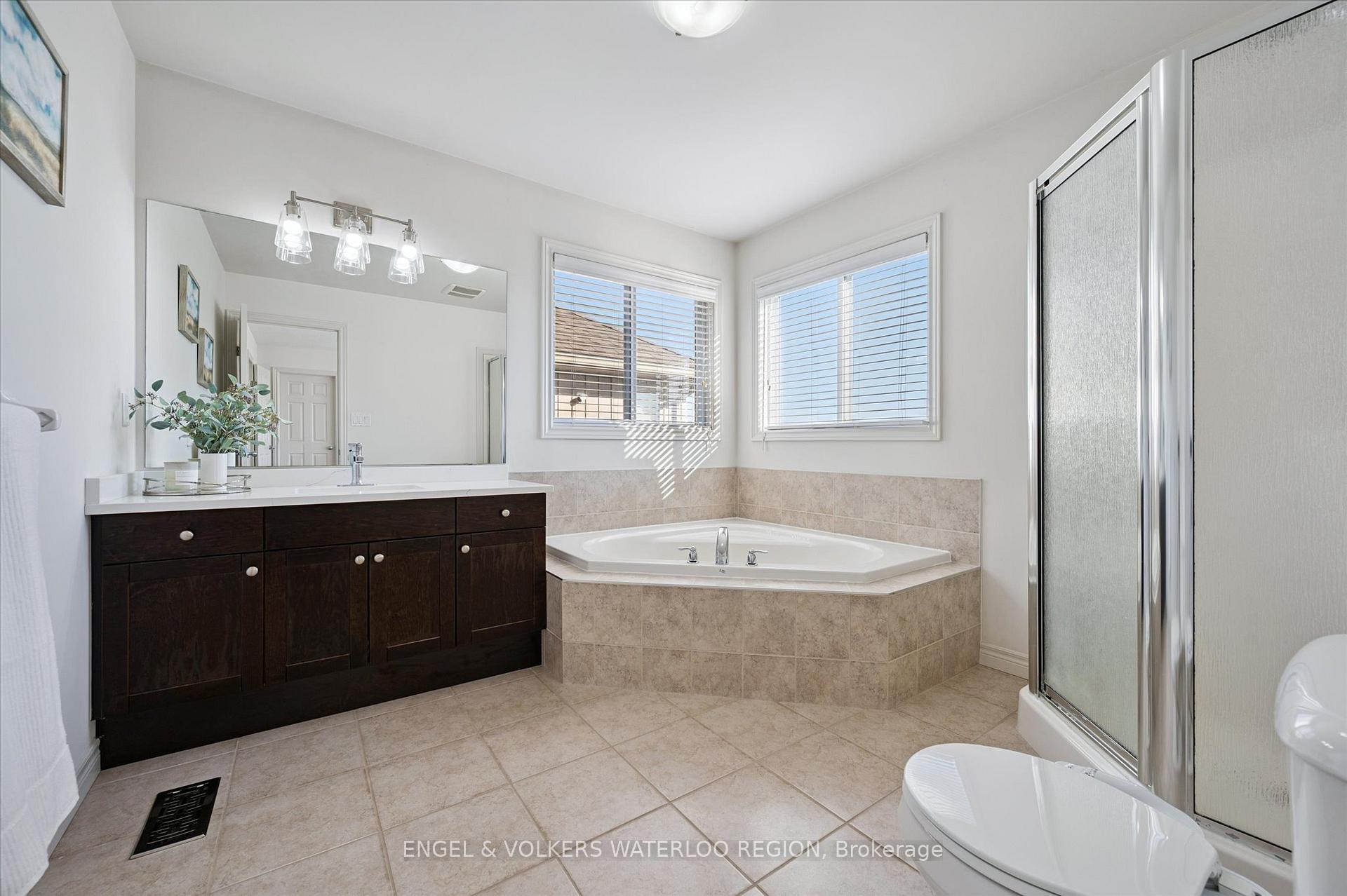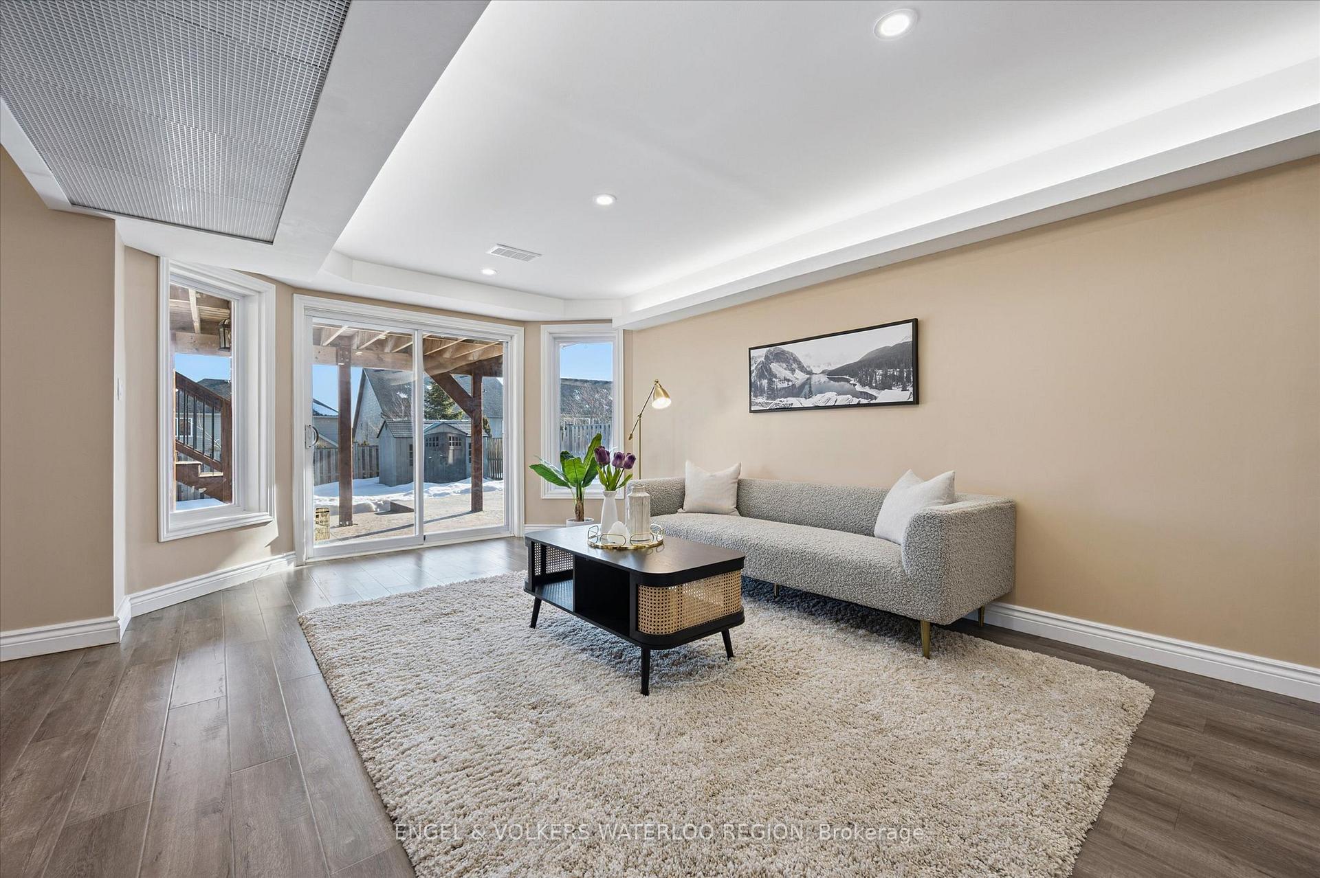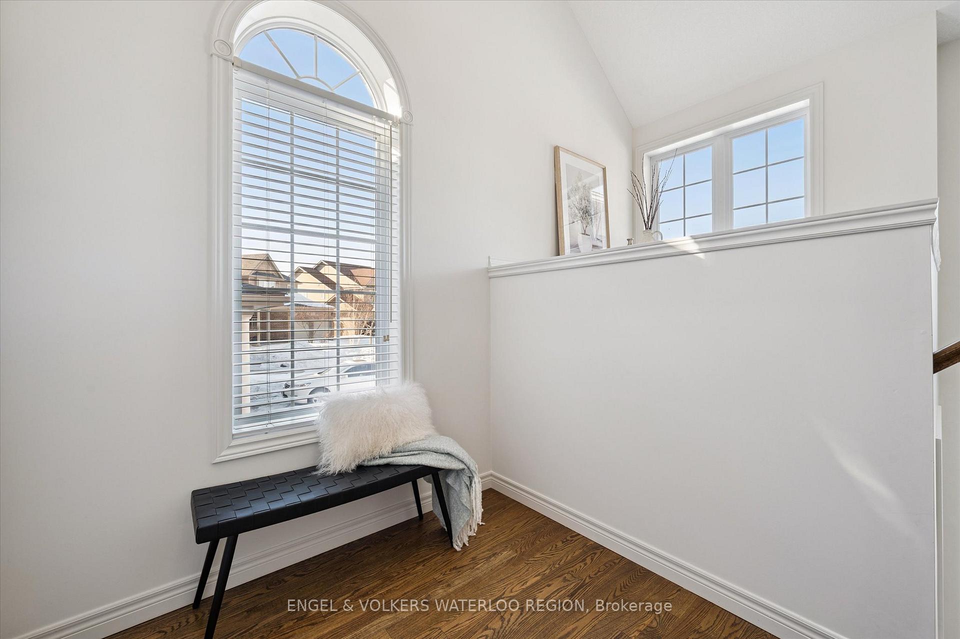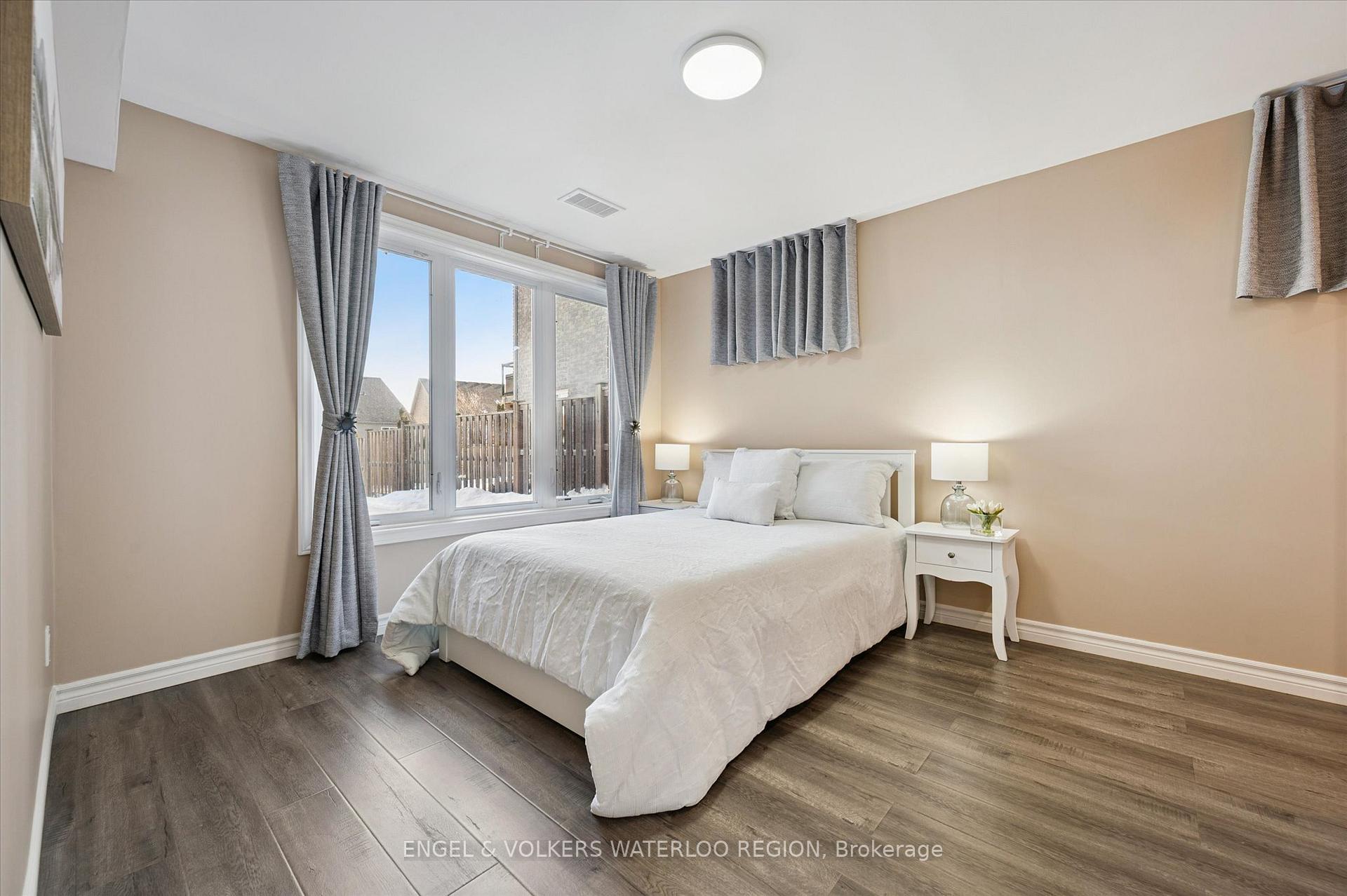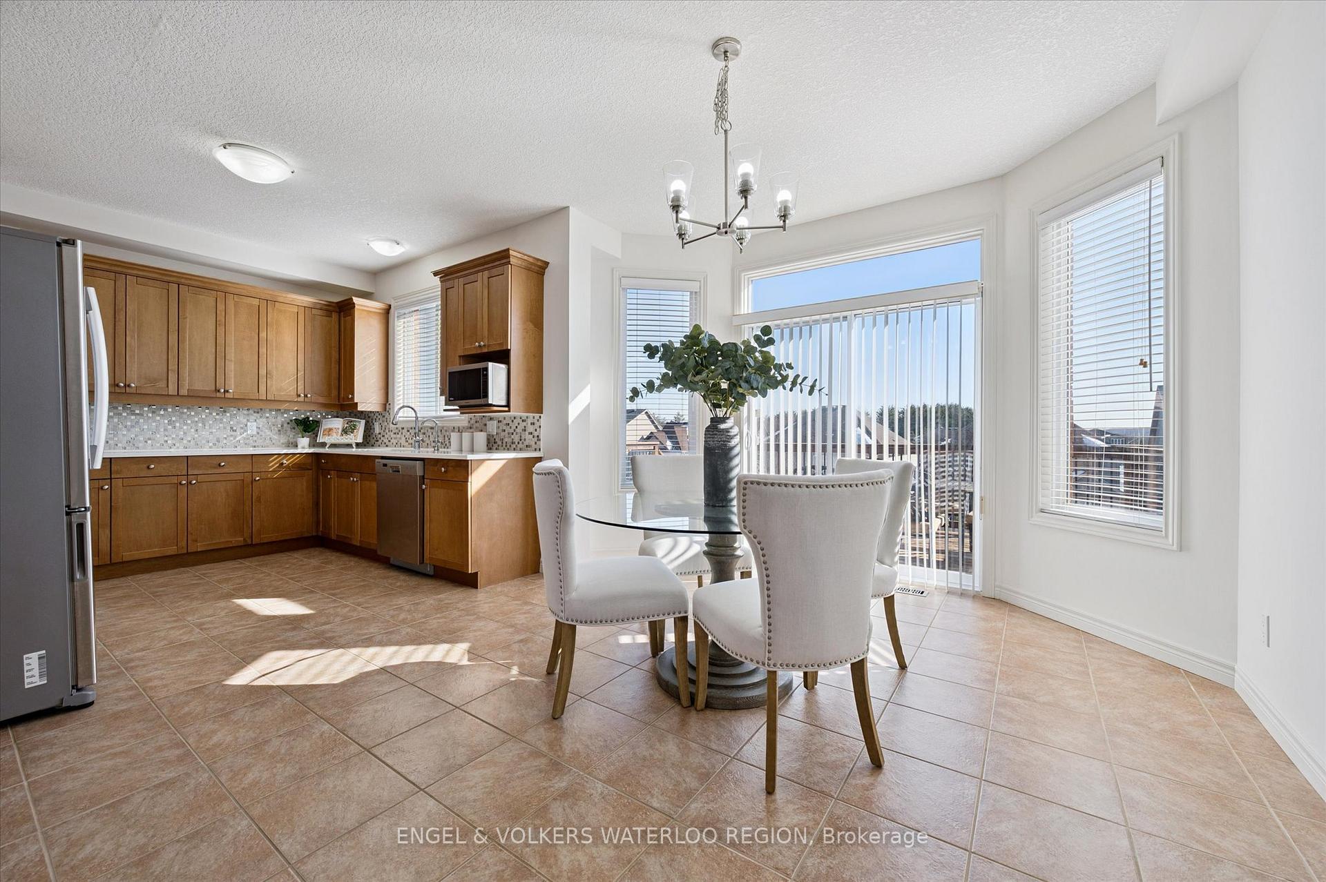 Nestled in one of Waterloo’s most sought-after neighbourhoods, this distinguished home in Conservation Meadows offers the perfect blend of elegance, comfort, and convenience. Situated on a quiet cul-de-sac, the property is thoughtfully maintained and beautifully appointed, showcasing exceptional curb appeal with its attractive exterior, double-car garage, concrete driveway accommodating four vehicles, and no sidewalk. Step inside to a bright and welcoming foyer featuring a soaring double-height ceiling and a walk-in closet. The main floor boasts 9-foot ceilings and a spacious, sun-filled living room with south-facing windows and a cozy gas fireplace. The generously sized kitchen is designed for both functionality and style, featuring abundant cabinetry, stainless steel appliances, and stunning quartz countertops. It opens seamlessly to the dining area, which overlooks clear, open views. Step outside to a large deck with stairs leading to an expansive concrete patio and a fully fenced, well-maintained backyard complete with manicured lawns and a solidly built shed. A versatile main-floor room with double doors offers flexibility as a private family room, home office, or formal dining room. A convenient powder room completes the main level. Upstairs, the primary bedroom is bathed in natural light from beautiful bay windows and features a walk-in closet and a 5-piece ensuite. Two additional well-sized bedrooms share a 4-piece bathroom. A second-floor laundry set adds everyday convenience. The fully finished walk-out basement significantly expands the living space, offering a large recreation room with a wet bar and dining area, a spacious bedroom with a study area and walk-in closet, a full 3-piece bathroom, an additional laundry set, and a cold room. Located just minutes from top-rated schools, shopping plazas, HWY 85, and the public library – walking distance to Conservation Park – this exceptional property offers more than just a home; it offers a lifestyle.