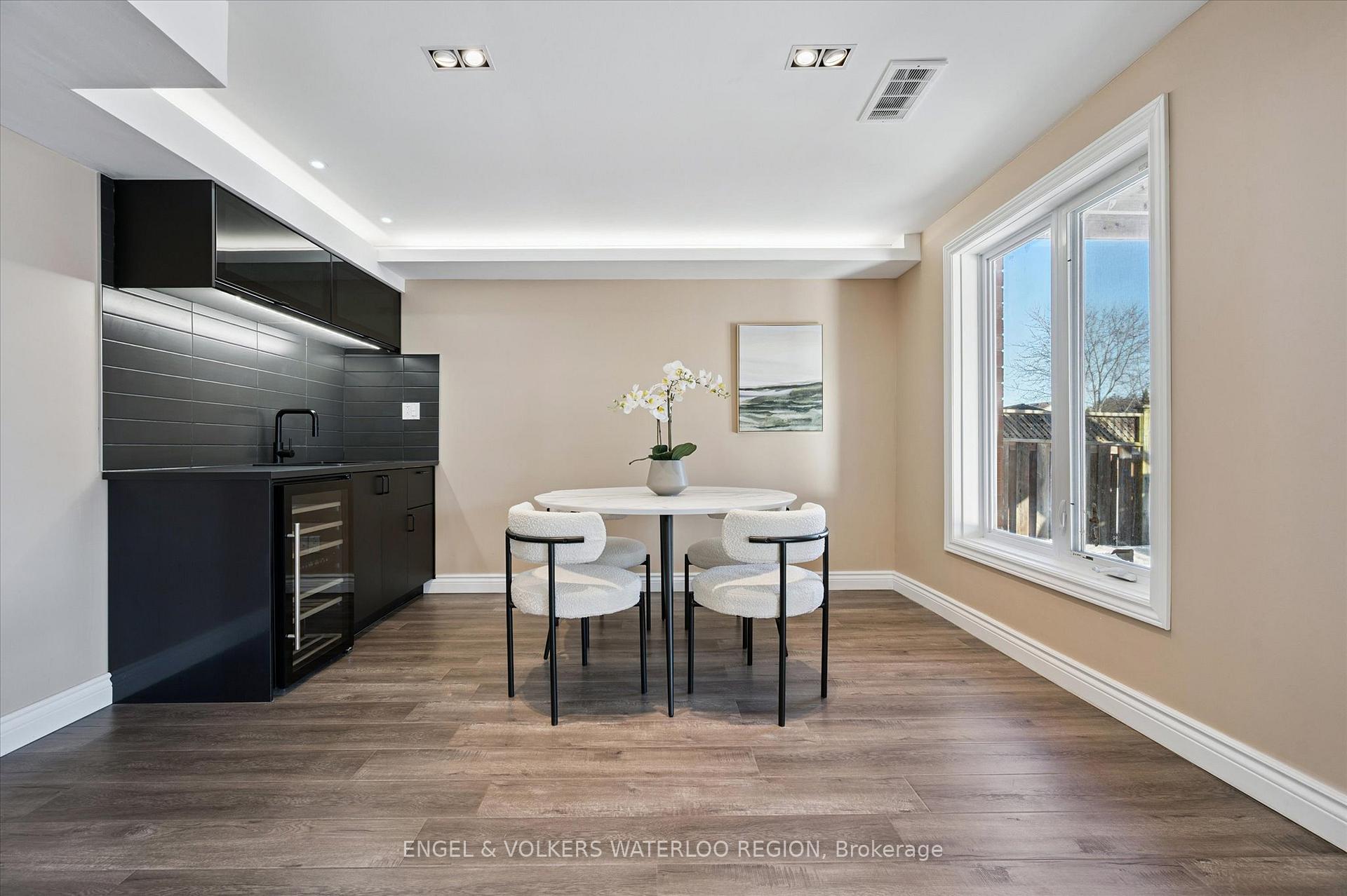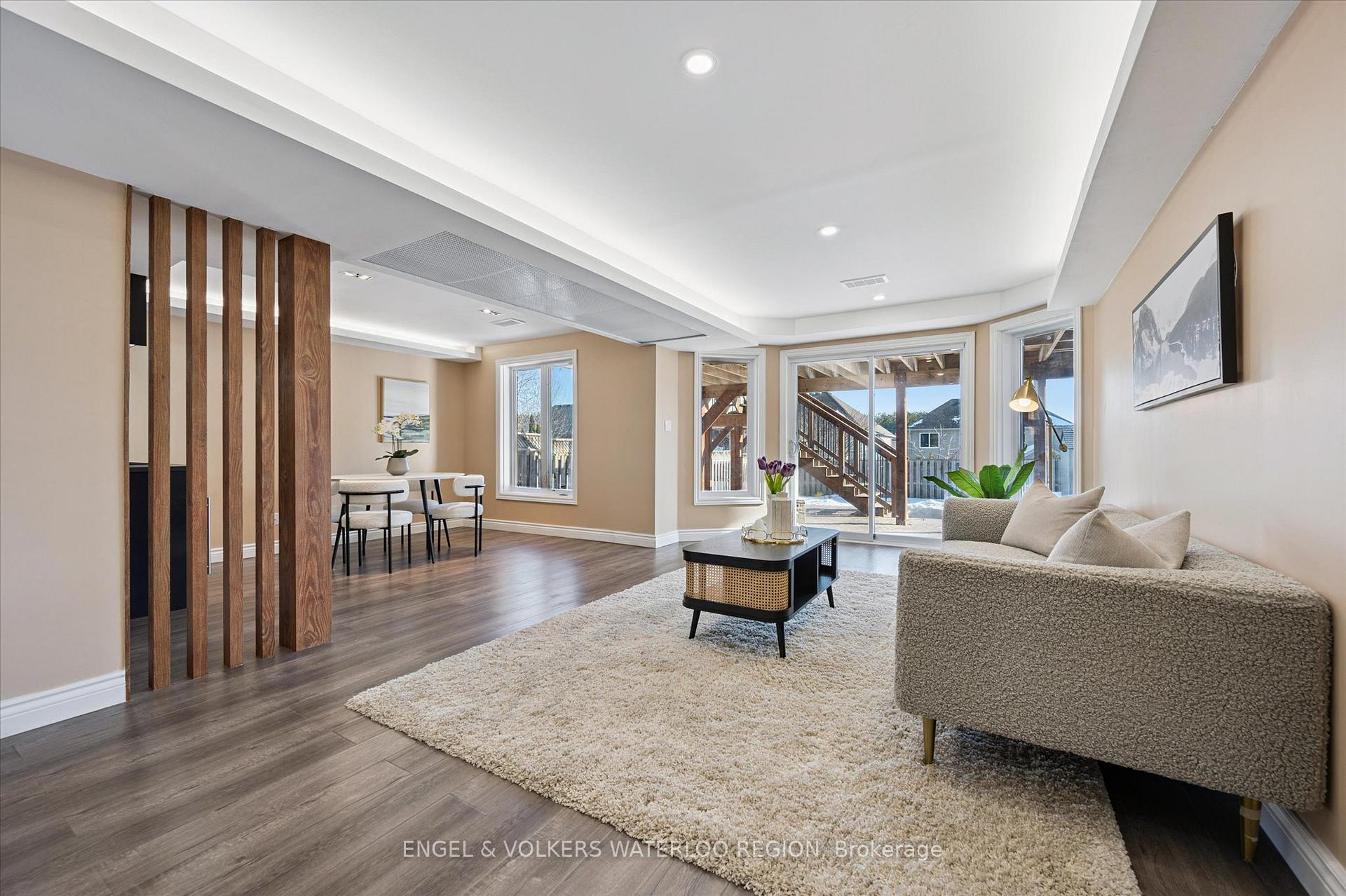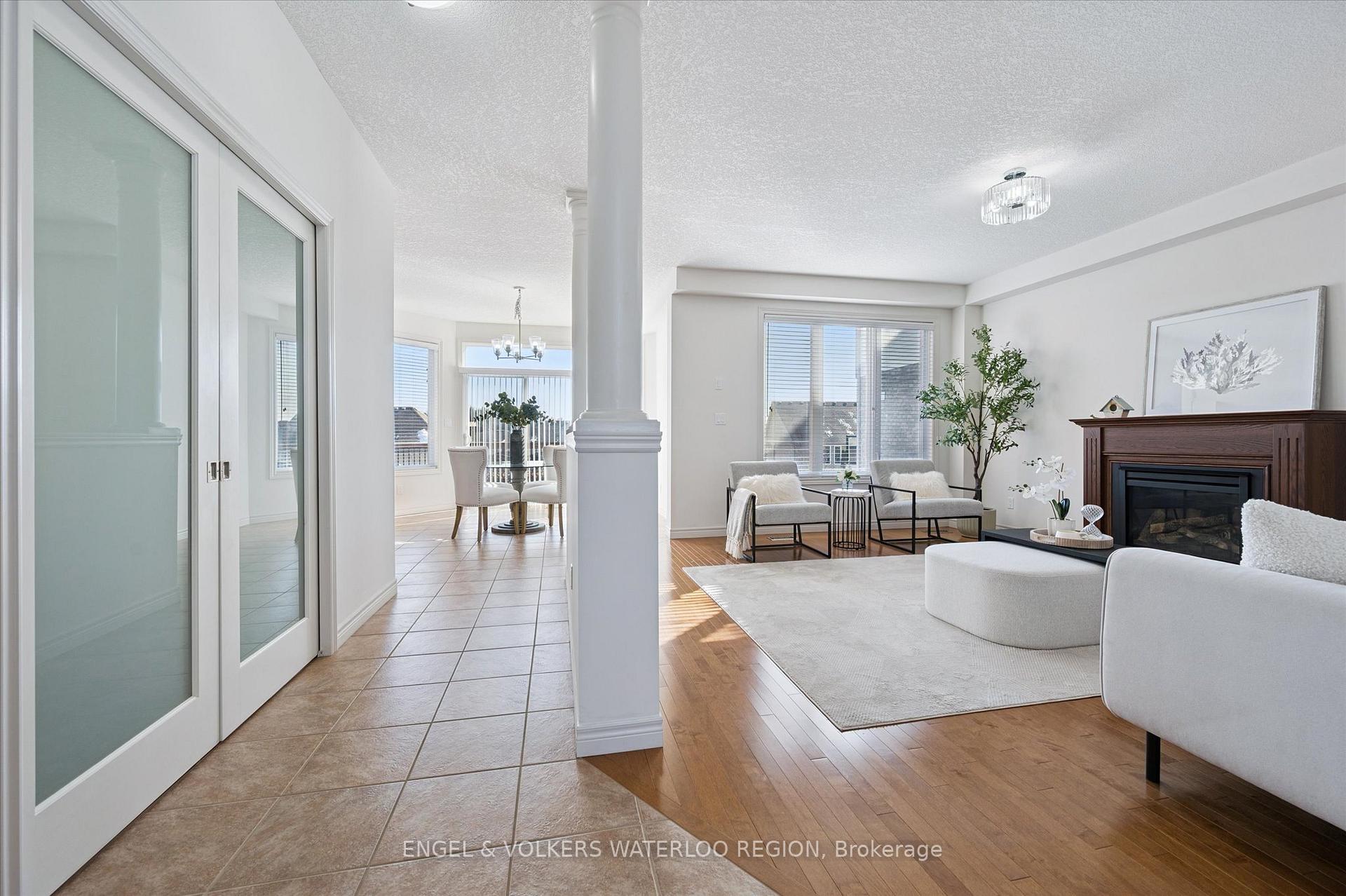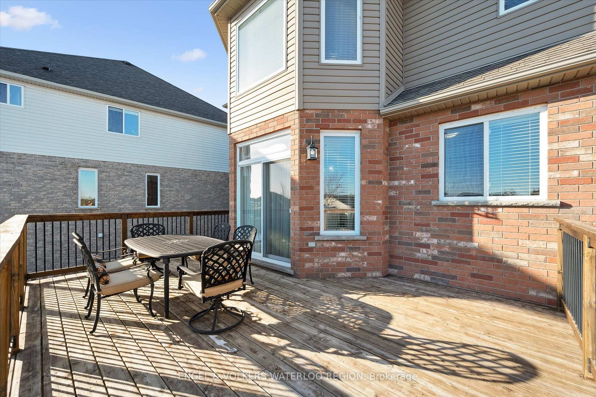 Nestled in one of Waterloo’s most sought-after neighbourhoods, this distinguished home in Conservation Meadows offers the perfect blend of elegance, comfort, and convenience. Situated on a quiet cul-de-sac, the property is thoughtfully maintained and beautifully appointed, showcasing exceptional curb appeal with its attractive exterior, double-car garage, concrete driveway accommodating four vehicles, and no sidewalk. Step inside to a bright and welcoming foyer featuring a soaring double-height ceiling and a walk-in closet. The main floor boasts 9-foot ceilings and a spacious, sun-filled living room with south-facing windows and a cozy gas fireplace. The generously sized kitchen is designed for both functionality and style, featuring abundant cabinetry, stainless steel appliances, and stunning quartz countertops. It opens seamlessly to the dining area, which overlooks clear, open views. Step outside to a large deck with stairs leading to an expansive concrete patio and a fully fenced, well-maintained backyard complete with manicured lawns and a solidly built shed. A versatile main-floor room with double doors offers flexibility as a private family room, home office, or formal dining room. A convenient powder room completes the main level. Upstairs, the primary bedroom is bathed in natural light from beautiful bay windows and features a walk-in closet and a 5-piece ensuite. Two additional well-sized bedrooms share a 4-piece bathroom. A second-floor laundry set adds everyday convenience. The fully finished walk-out basement significantly expands the living space, offering a large recreation room with a wet bar and dining area, a spacious bedroom with a study area and walk-in closet, a full 3-piece bathroom, an additional laundry set, and a cold room. Located just minutes from top-rated schools, shopping plazas, HWY 85, and the public library – walking distance to Conservation Park – this exceptional property offers more than just a home; it offers a lifestyle.