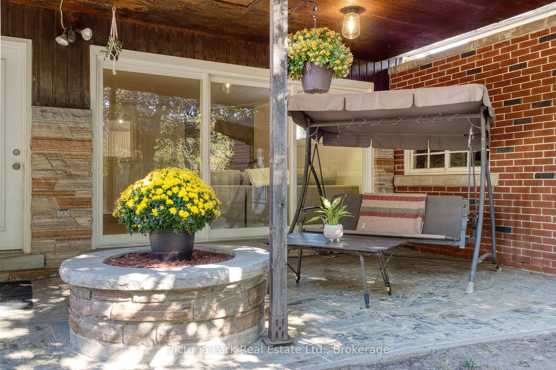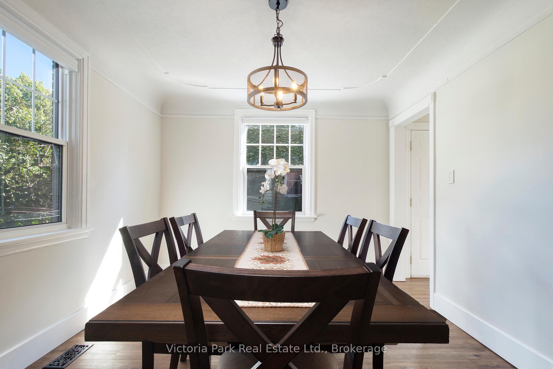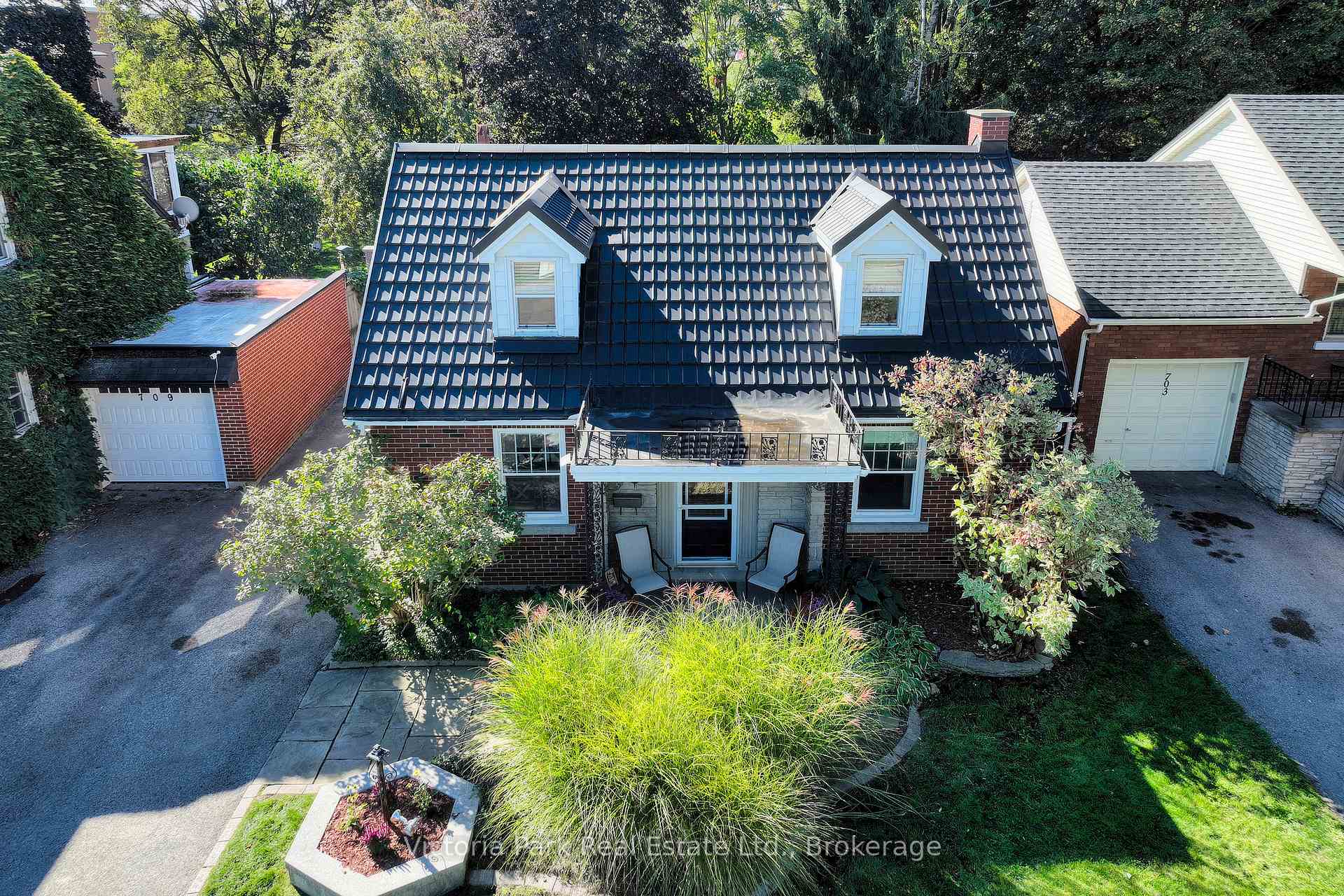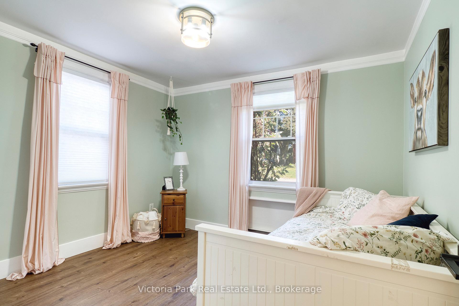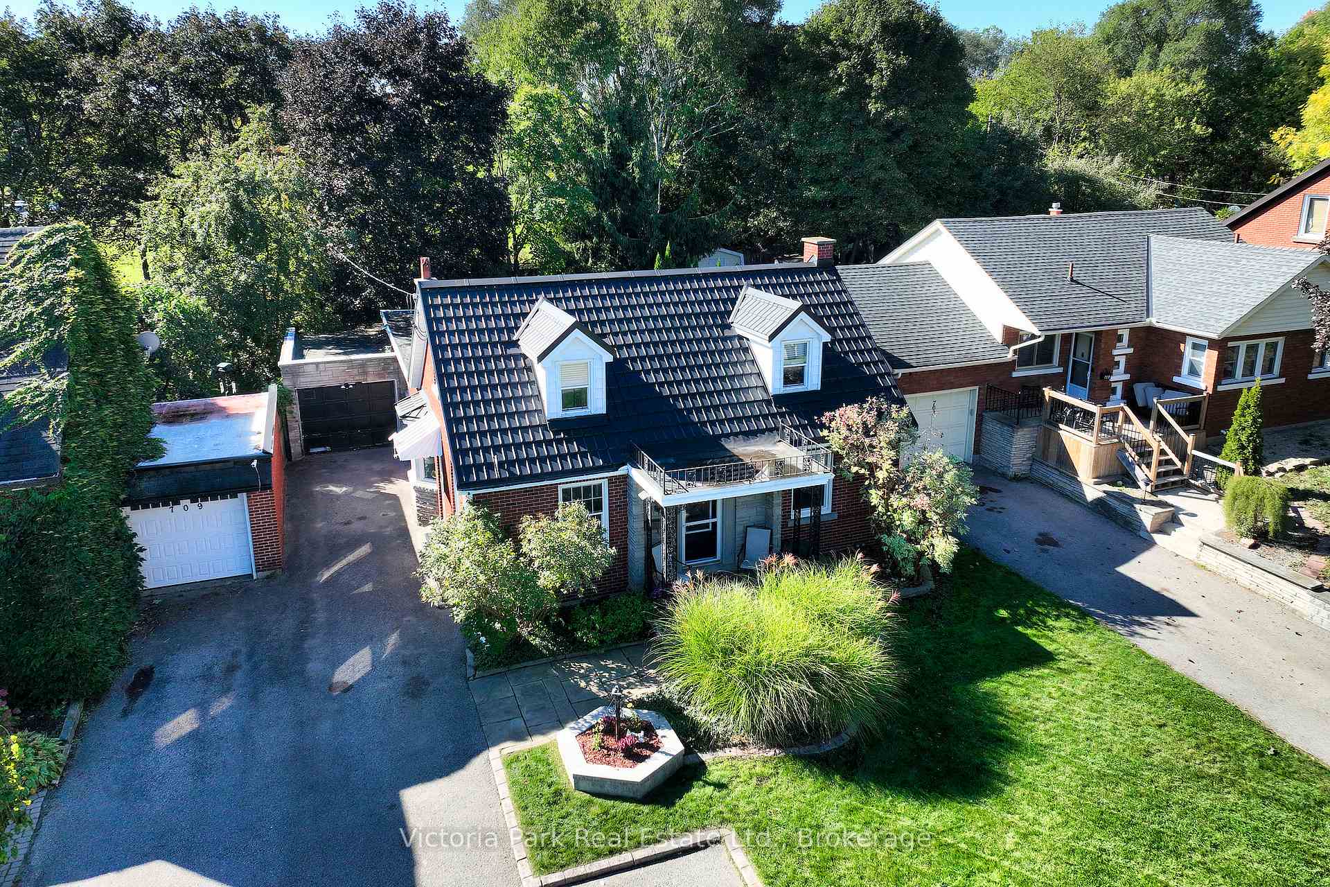 Welcome home to the coveted Rockway Drive with its collection of beautiful historic homes, estate lots, mature trees, and beautiful gardens! Nestled amongst great neighbourhood amenities like the Rockway Golf Course and Rockway Botanical Gardens, a location like this in the city, not far from the highway and downtown, is almost unbelievable. Relax by blooming perennials, flowing waterfalls and fountains, and variety of unique tree species. Enjoy this modern-day glimpse of a classic Victorian garden, just one street over. Find an 18-hole course, clubhouse, restaurant, and pro shop at the Rockway Golf Course. Golf enthusiasts and those who enjoy a great sunset view or groomed winter ski trails can appreciate this nearby green-space. Break a sweat at the nearby YMCA gym with pool, walking track, and squash courts or catch the game, concert, or live performance at the Kitchener Memorial Auditorium. At home, enjoy the 150-ft lot with garage parking, double-wide driveway, fully-fenced backyard, and covered front and back porches. This charming red-brick home is complete with 3x bedrooms, 2.5x bathrooms, basement workshop, detached garage with automatic opener, and long-lasting metal roof! Inside, notice upgraded features including newer windows and window coverings, updated vinyl plank flooring, refinished main bathroom, elegant crown mouldings, built-in hall tree, and calming paint hues recently applied throughout the home. Find convenient main-floor bedrooms for your use, work-from-home space, or aging family members. Unwind with friends and family in the spacious living room with wood fireplace and sliding doors to the patio. Cherish the peacefulness of a backyard full of mature trees, no rear neighbour, and a covered patio to allow for enjoying some good conversation, a favourite read, or your morning coffee. Parking for 6 in this double-wide driveway. With so much to offer at home and in the neighbourhood, this is the home to see today and enjoy for a lifetime!