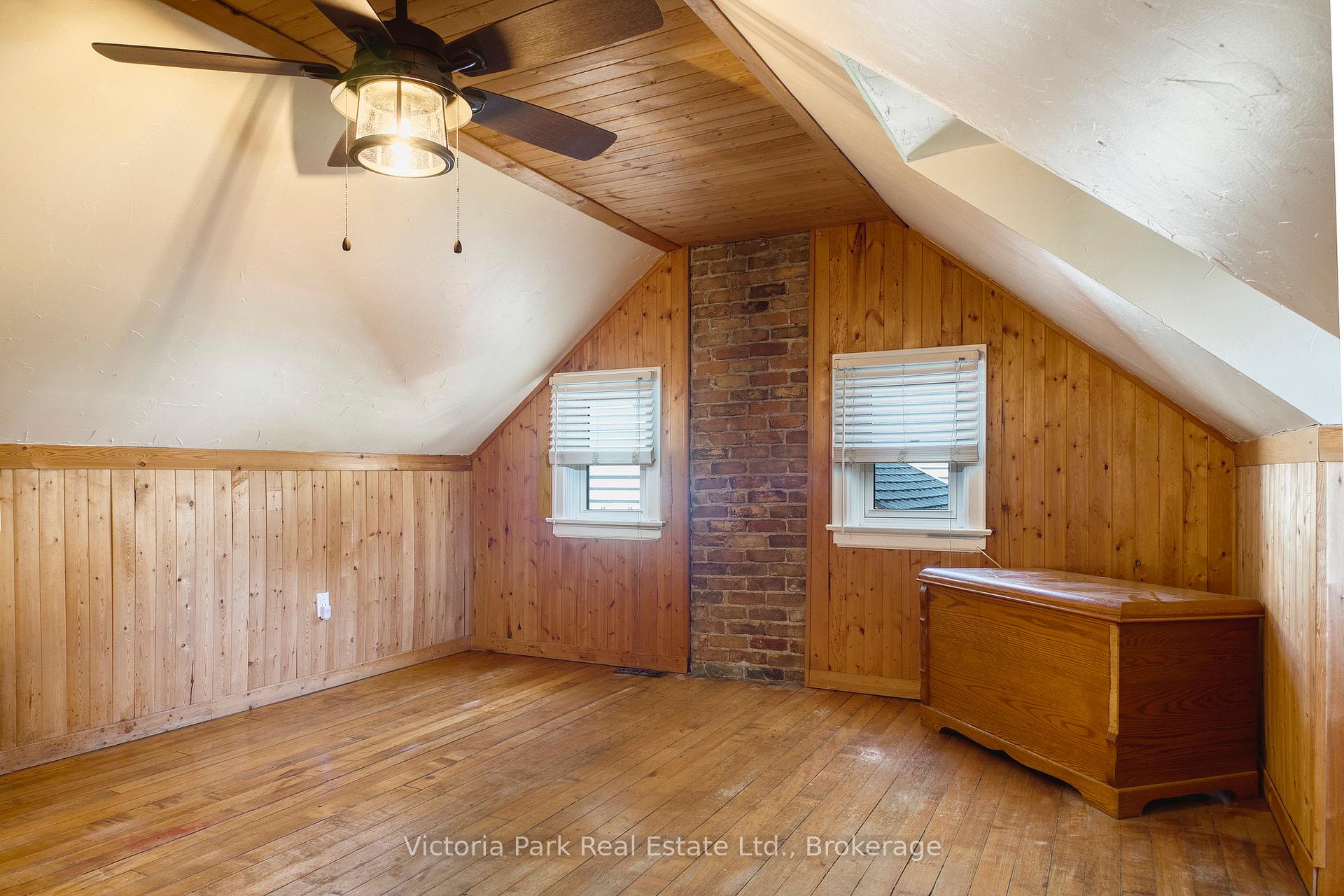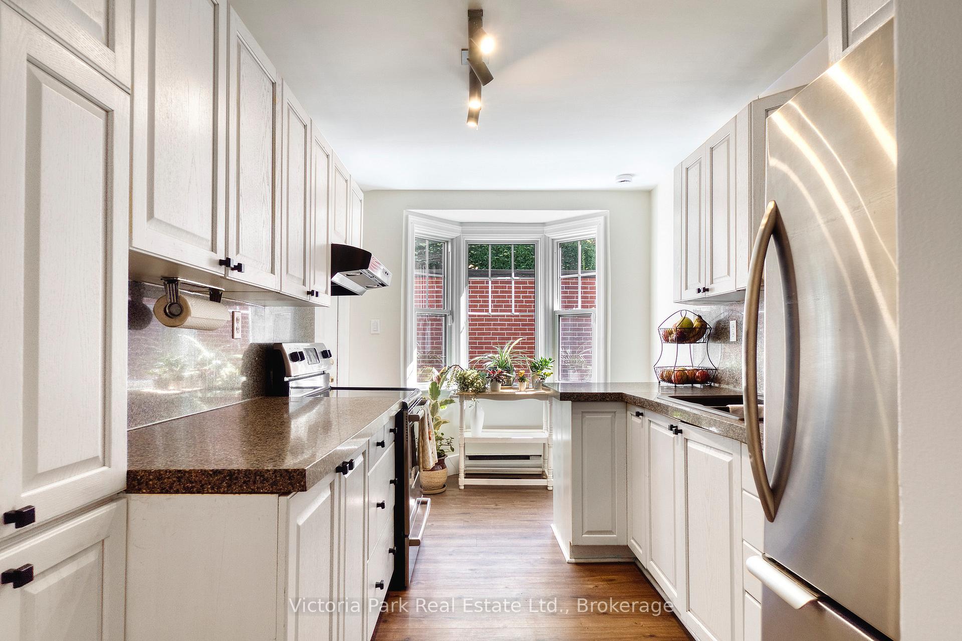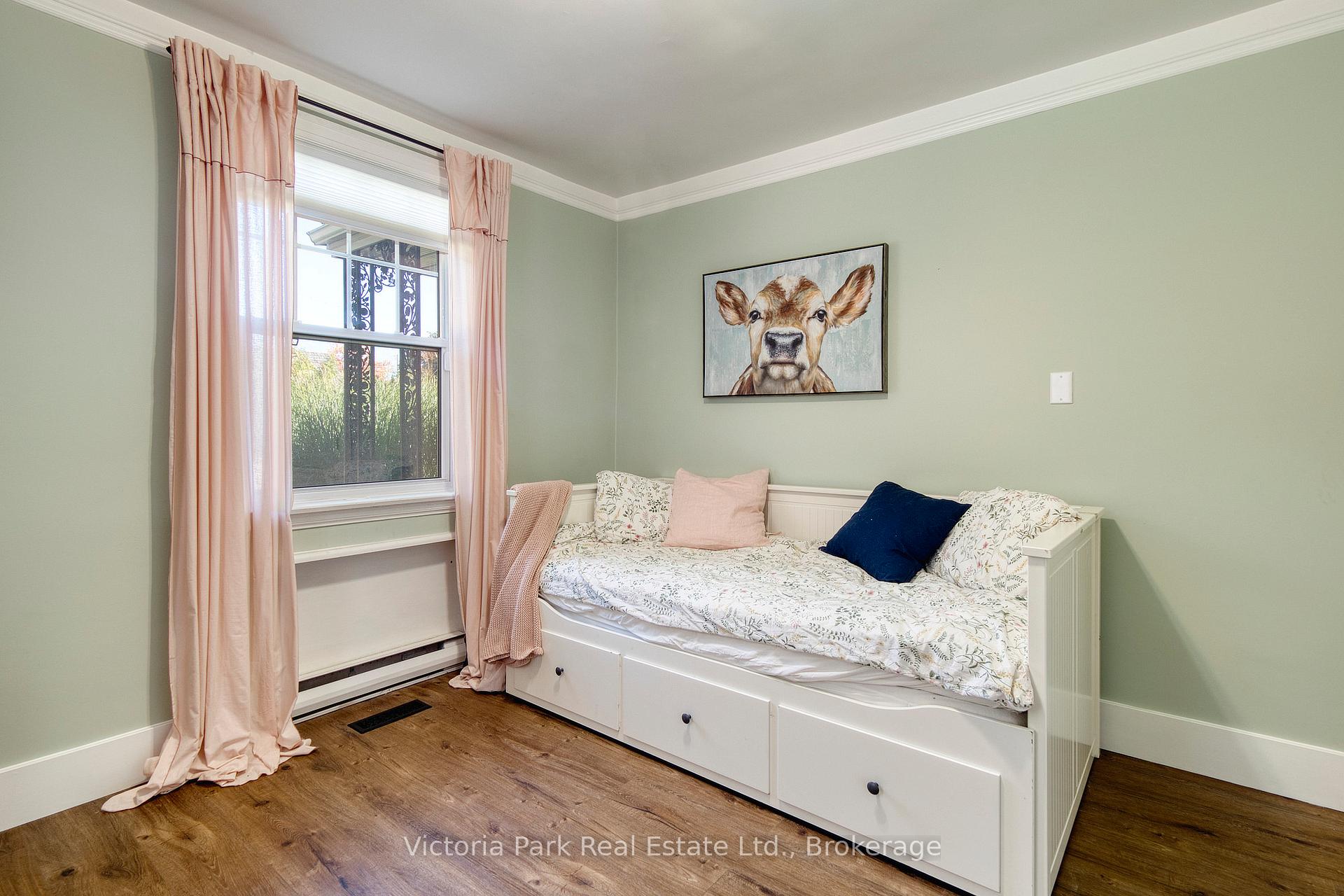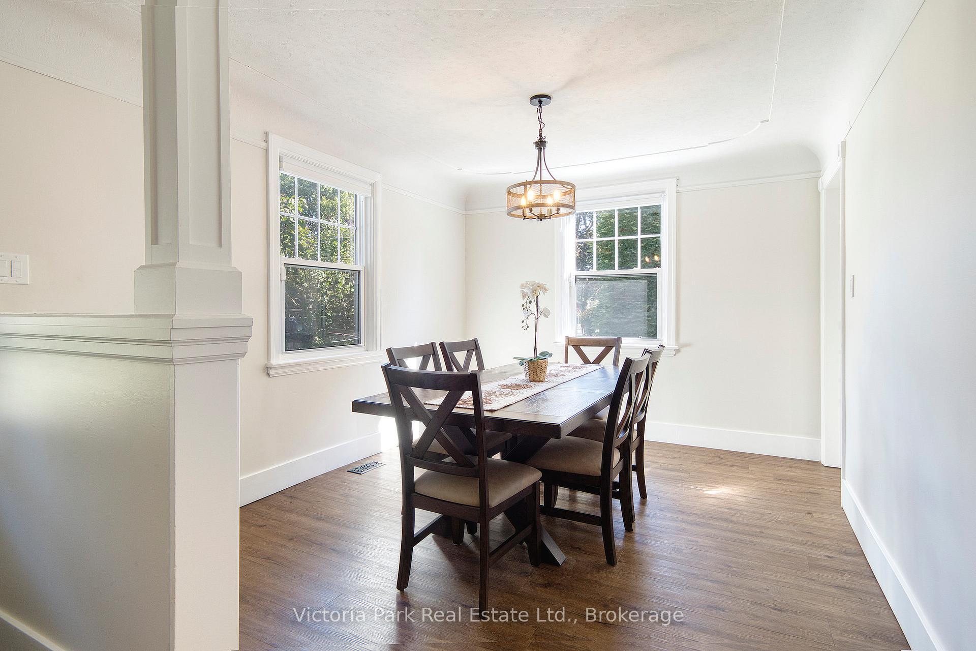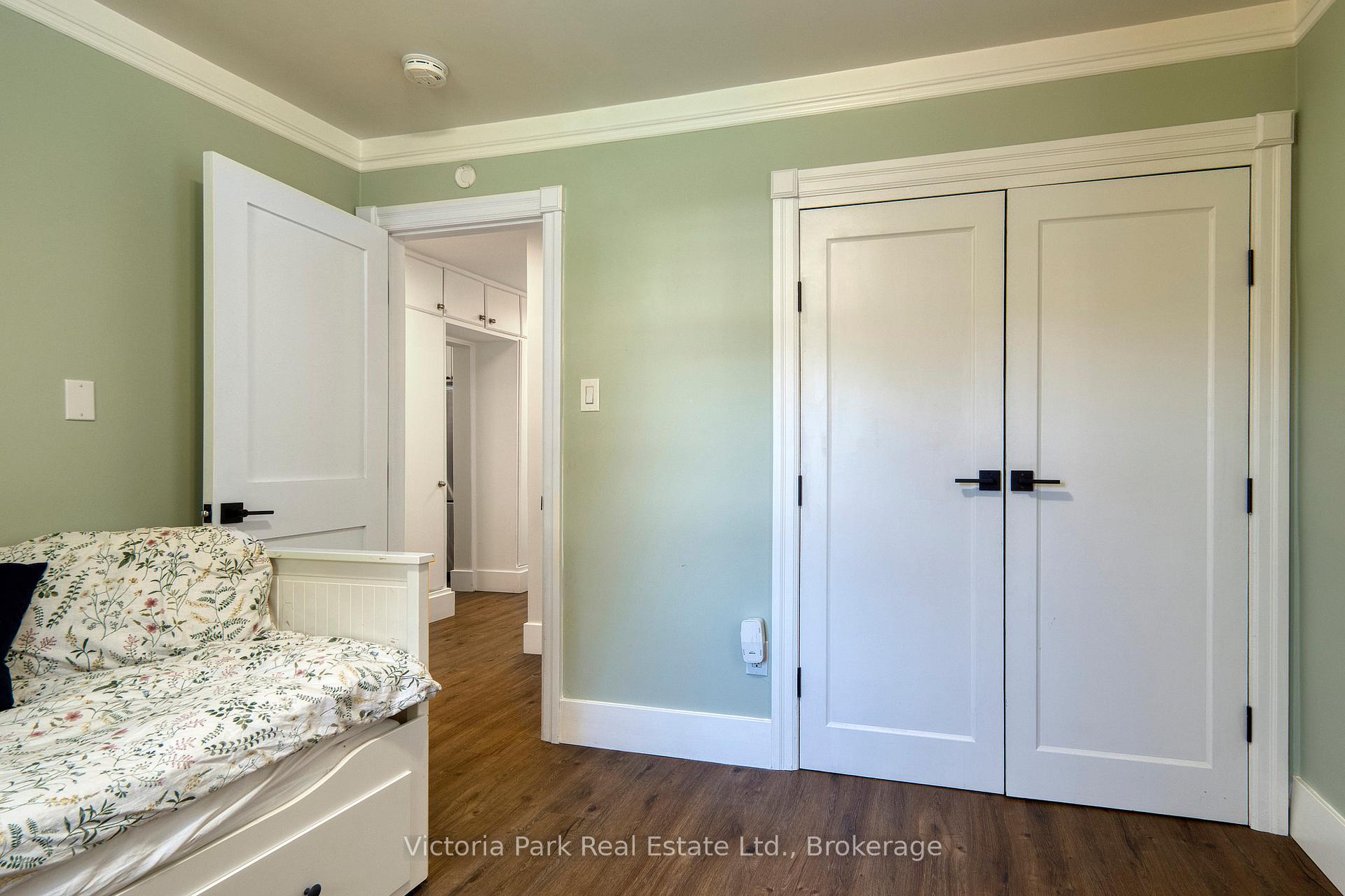 Welcome home to the coveted Rockway Drive with its collection of beautiful historic homes, estate lots, mature trees, and beautiful gardens! Nestled amongst great neighbourhood amenities like the Rockway Golf Course and Rockway Botanical Gardens, a location like this in the city, not far from the highway and downtown, is almost unbelievable. Relax by blooming perennials, flowing waterfalls and fountains, and variety of unique tree species. Enjoy this modern-day glimpse of a classic Victorian garden, just one street over. Find an 18-hole course, clubhouse, restaurant, and pro shop at the Rockway Golf Course. Golf enthusiasts and those who enjoy a great sunset view or groomed winter ski trails can appreciate this nearby green-space. Break a sweat at the nearby YMCA gym with pool, walking track, and squash courts or catch the game, concert, or live performance at the Kitchener Memorial Auditorium. At home, enjoy the 150-ft lot with garage parking, double-wide driveway, fully-fenced backyard, and covered front and back porches. This charming red-brick home is complete with 3x bedrooms, 2.5x bathrooms, basement workshop, detached garage with automatic opener, and long-lasting metal roof! Inside, notice upgraded features including newer windows and window coverings, updated vinyl plank flooring, refinished main bathroom, elegant crown mouldings, built-in hall tree, and calming paint hues recently applied throughout the home. Find convenient main-floor bedrooms for your use, work-from-home space, or aging family members. Unwind with friends and family in the spacious living room with wood fireplace and sliding doors to the patio. Cherish the peacefulness of a backyard full of mature trees, no rear neighbour, and a covered patio to allow for enjoying some good conversation, a favourite read, or your morning coffee. Parking for 6 in this double-wide driveway. With so much to offer at home and in the neighbourhood, this is the home to see today and enjoy for a lifetime!