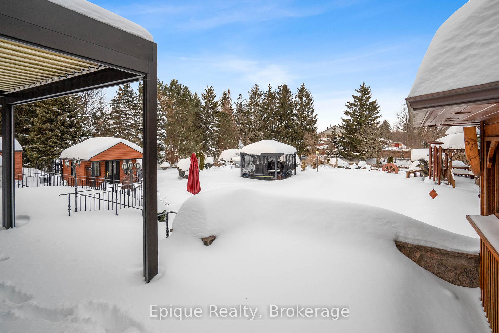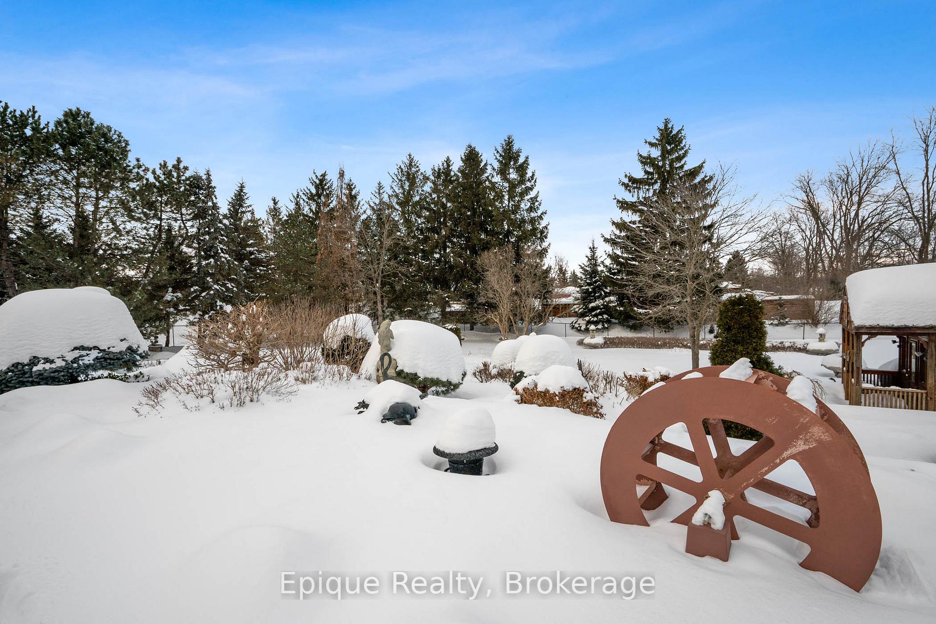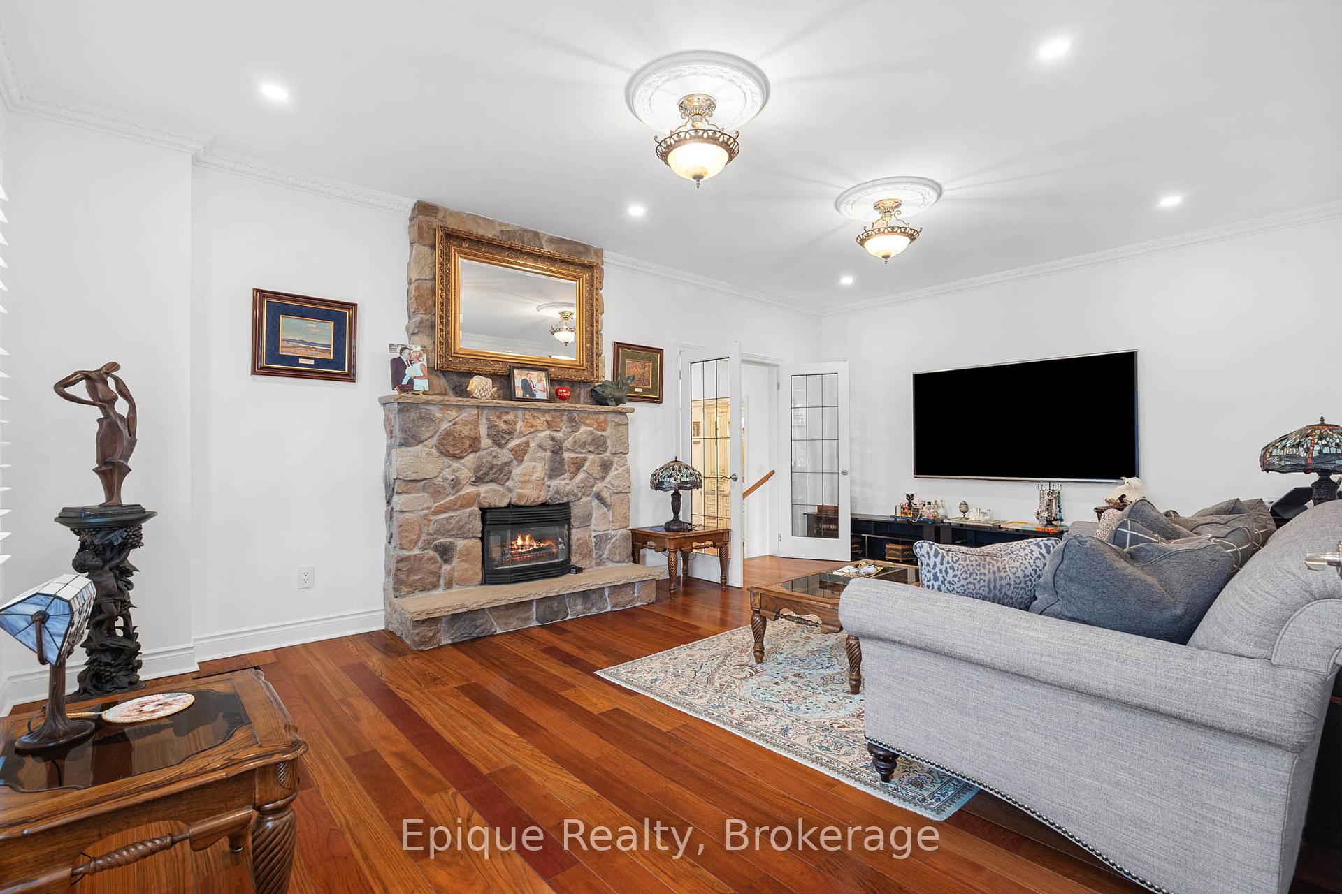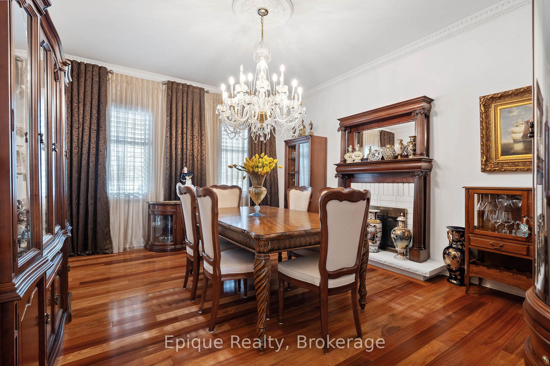 EXPERIENCE UNMATCHED LUXURY IN CAMPBELLVILLE. Nestled on a lush and private 1.13 acres, this imposing 7,200 sq. ft. estate is a masterpiece of design and craftsmanship. Exotic Brazilian cherry floors, Swarovski crystal chandeliers, and five fireplaces create an ambiance of timeless elegance.The formal dining room stuns with a majestic fireplace and chandelier, while the main-floor office connects seamlessly to the conservatory, perfect for entertaining with a baby grand piano. The gourmet kitchen boasts Jenn-Air & Bosch appliances, custom cabinetry, and quad French doors leading to an expansive deck and remote-controlled screened sunroom.The primary suite wing is a private retreat with a sitting area, gas fireplace, spa-inspired ensuite with double vanities, an oversized glass shower, a deep soaker tub, and extensive closet space. Three additional bedrooms share an opulent oversized bath, ensuring comfort and elegance.The professionally finished lower level includes a spa-inspired 3-piece bath with a steam shower. Outdoors, enjoy a 20 x 40 heated saltwater pool, pool house changeroom, and a cedar cabana bar with power and water.For the automobile enthusiast, the 4-car garage and parking for 20+ vehicles provide ample space. Just minutes from the 401, this estate offers unparalleled luxury, privacy, and accessibility.A rare opportunity to own a true luxury retreat. Schedule your private showing today.