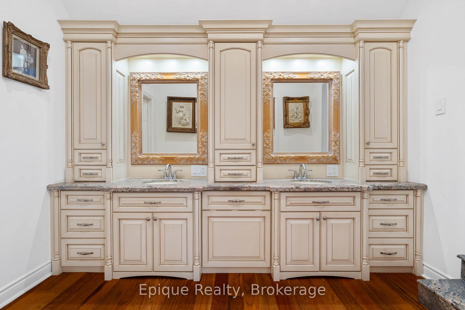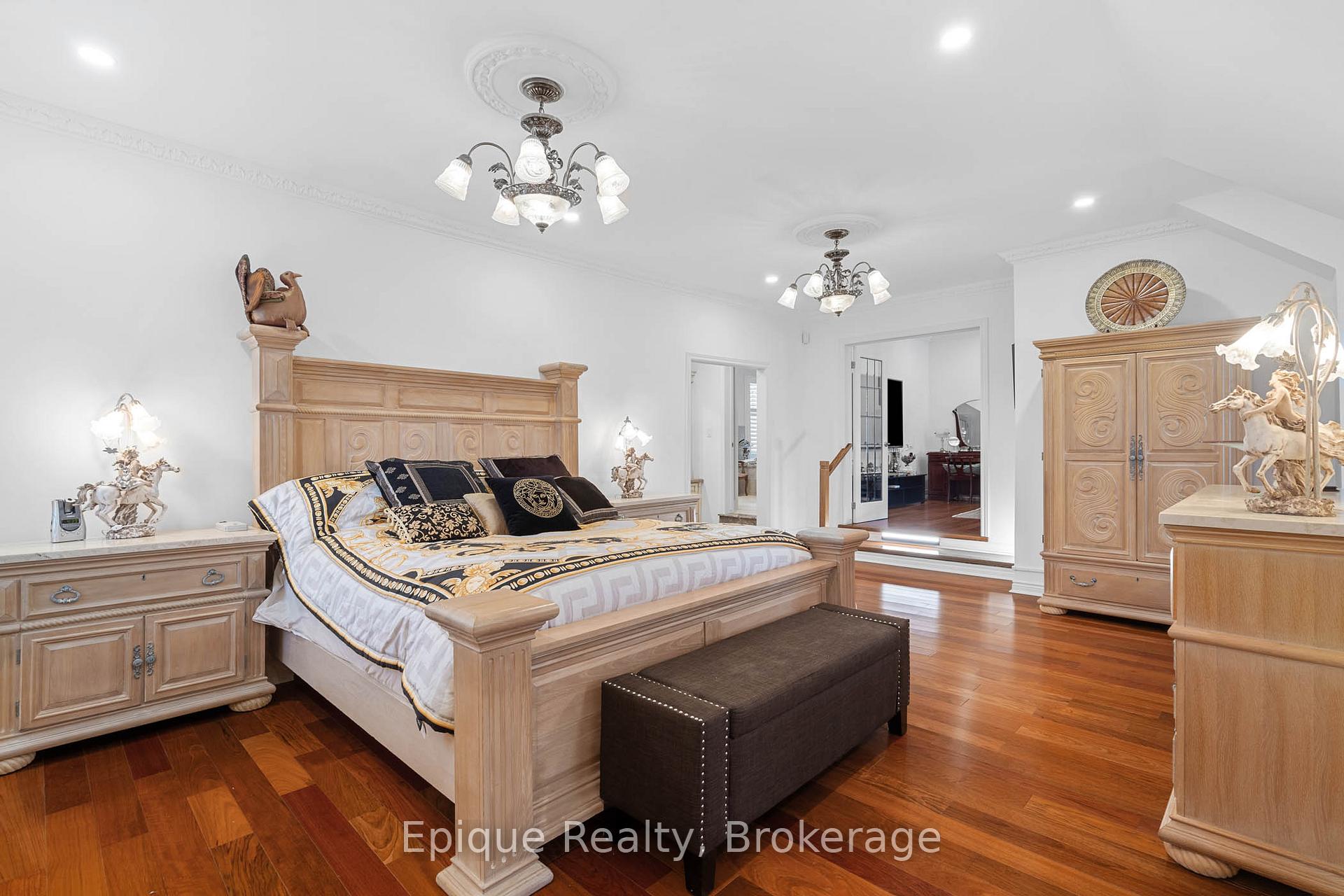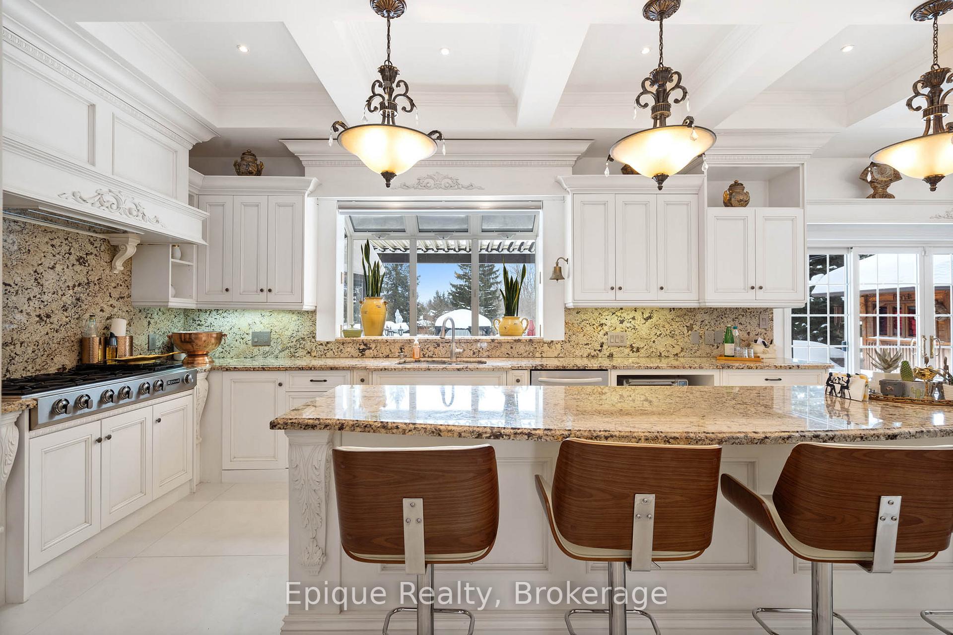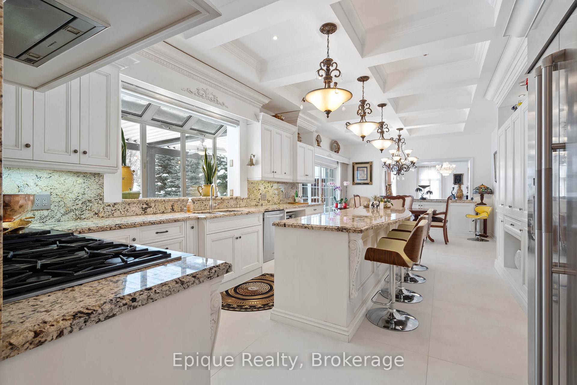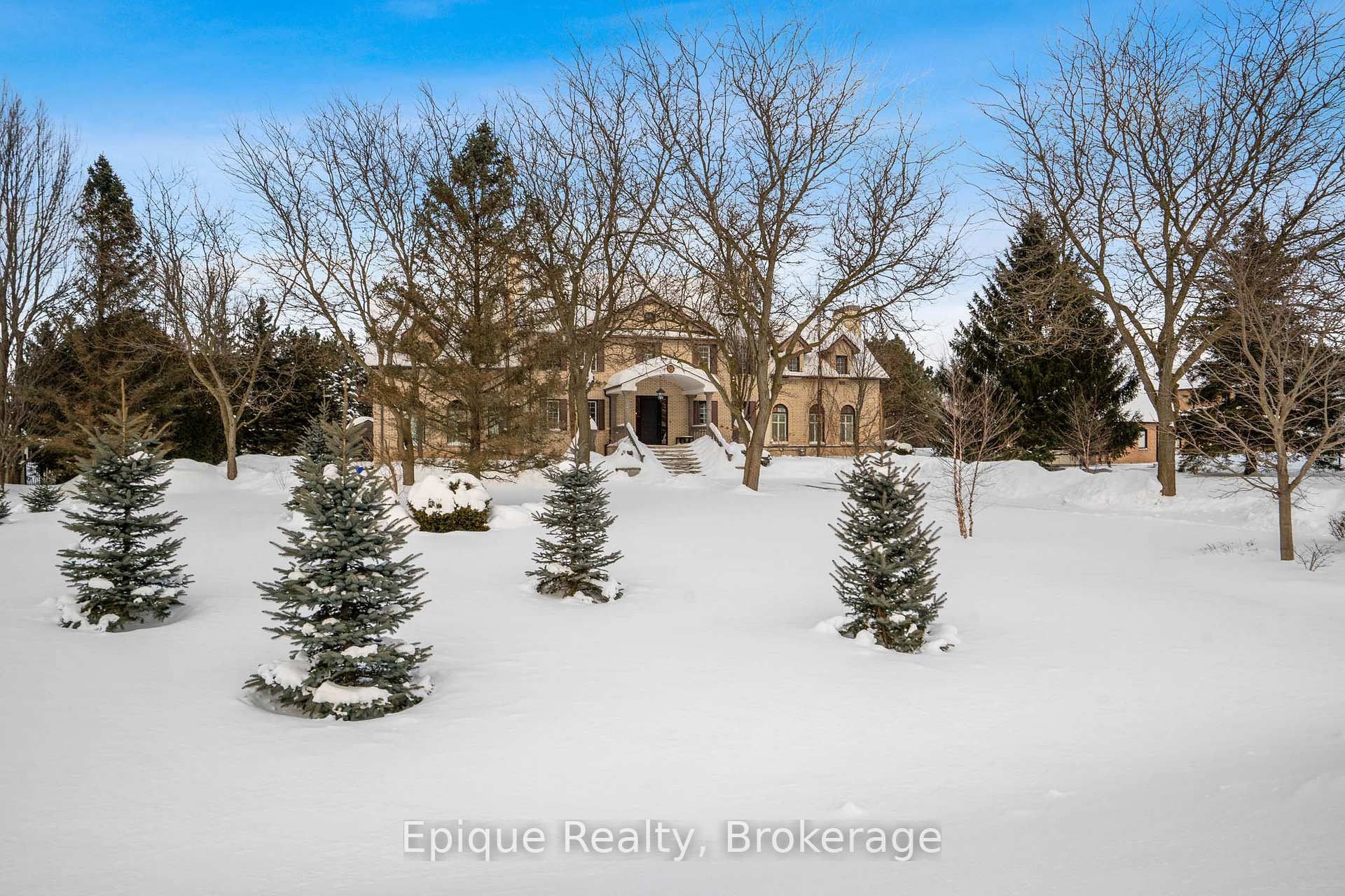 EXPERIENCE UNMATCHED LUXURY IN CAMPBELLVILLE. Nestled on a lush and private 1.13 acres, this imposing 7,200 sq. ft. estate is a masterpiece of design and craftsmanship. Exotic Brazilian cherry floors, Swarovski crystal chandeliers, and five fireplaces create an ambiance of timeless elegance.The formal dining room stuns with a majestic fireplace and chandelier, while the main-floor office connects seamlessly to the conservatory, perfect for entertaining with a baby grand piano. The gourmet kitchen boasts Jenn-Air & Bosch appliances, custom cabinetry, and quad French doors leading to an expansive deck and remote-controlled screened sunroom.The primary suite wing is a private retreat with a sitting area, gas fireplace, spa-inspired ensuite with double vanities, an oversized glass shower, a deep soaker tub, and extensive closet space. Three additional bedrooms share an opulent oversized bath, ensuring comfort and elegance.The professionally finished lower level includes a spa-inspired 3-piece bath with a steam shower. Outdoors, enjoy a 20 x 40 heated saltwater pool, pool house changeroom, and a cedar cabana bar with power and water.For the automobile enthusiast, the 4-car garage and parking for 20+ vehicles provide ample space. Just minutes from the 401, this estate offers unparalleled luxury, privacy, and accessibility.A rare opportunity to own a true luxury retreat. Schedule your private showing today.