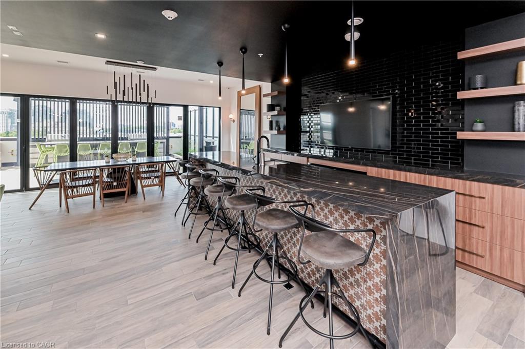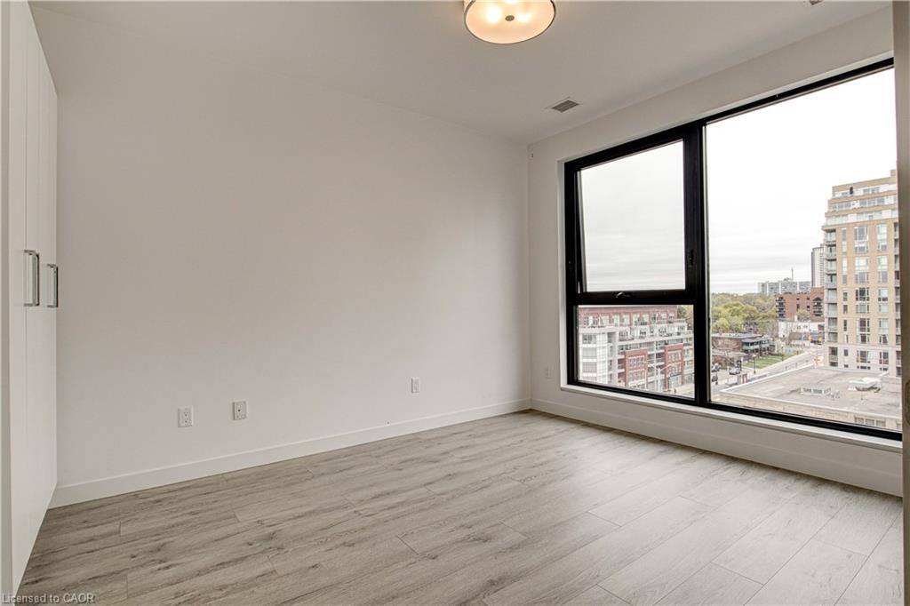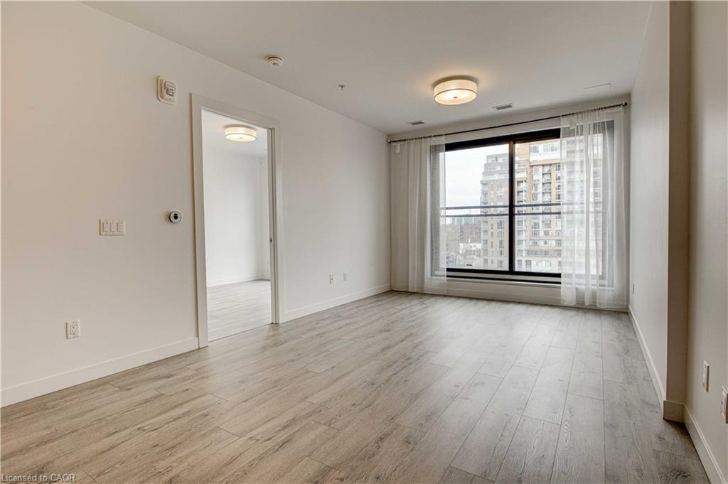 LUXURY UPTOWN WATERLOO ONE BEDROOM + DEN CONDO AVAILABLE IN THE EXCLUSIVE CIRCA 1877. The building amenities of this luxury condo include a ground-floor fine dining restaurant, 6th floor saltwater pool, cabanas, BBQs, fire tables, fitness & yoga studios, co-working space, and much more. This modern and bright unit boasts 10 ft ceilings, high-end finishes and a spacious floor plan. The sleek kitchen features beautiful quartz countertops and backsplash, low profile European style appliances, and an oversized island with plenty of storage and is ideal for food prep, entertaining, and eating meals. The light-filled and large open concept living/dining room offers floor-to-ceiling windows with a Juliet balcony, and space for your sofa AND dining table. Just off the living room you’ll find the large bedroom with city views and custom built closets. The hidden gem of this unit is the den; ideal as an at-home office or more closet/storage. The must-have in-suite laundry and modern four-piece bath complete this beautiful and practical condo. One storage locker is included. Unit 710 is located in the Bauer District of Uptown Waterloo, near shopping, cafes, restaurants, and major employers like Google, Sun Life Financial, the Regional and City offices, and the Grand River Hospital. Circa 1877 is located just steps from a LRT station, making it quick and easy to travel through the city without a car. This is a unit you won’t want to miss! Book your showing today!