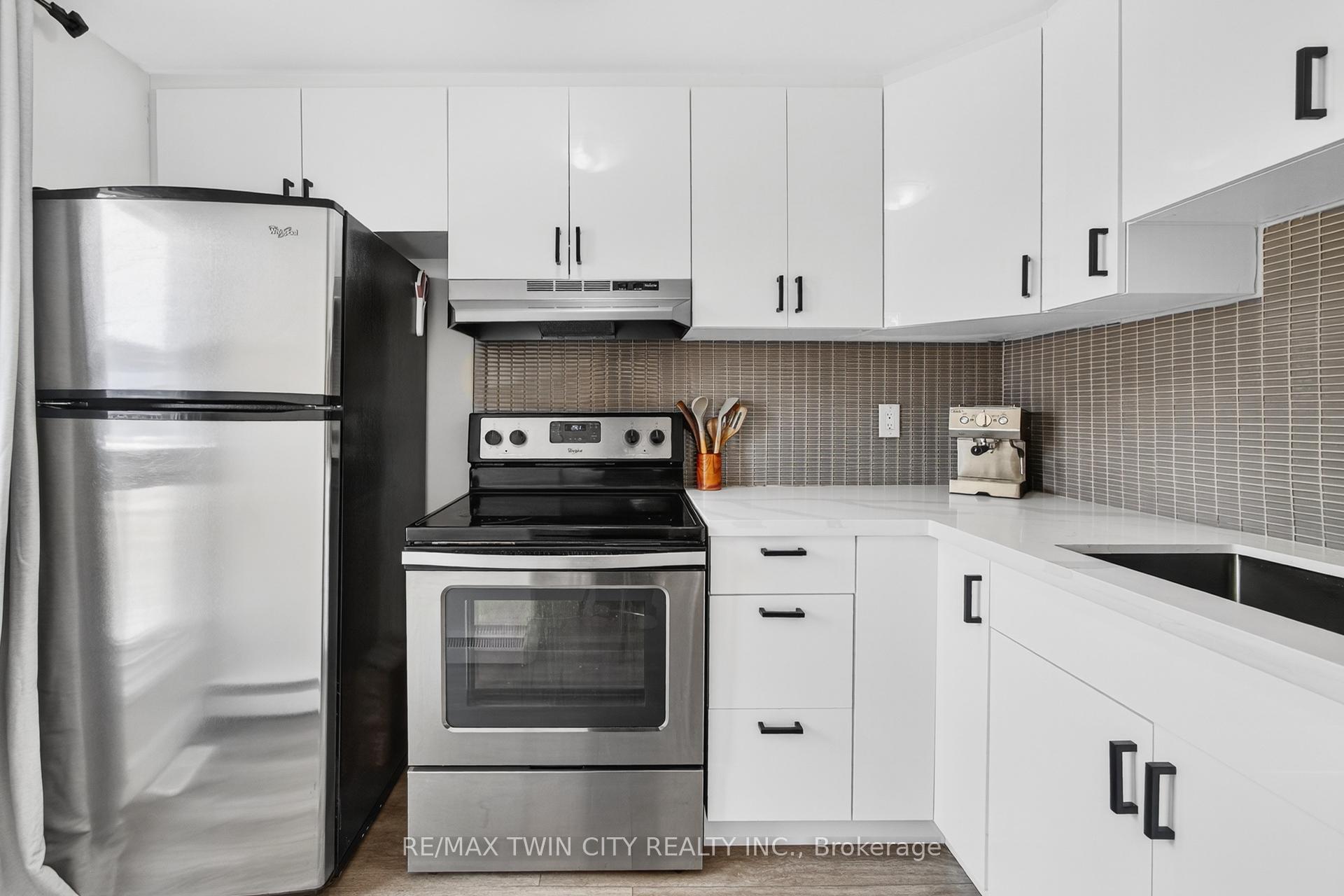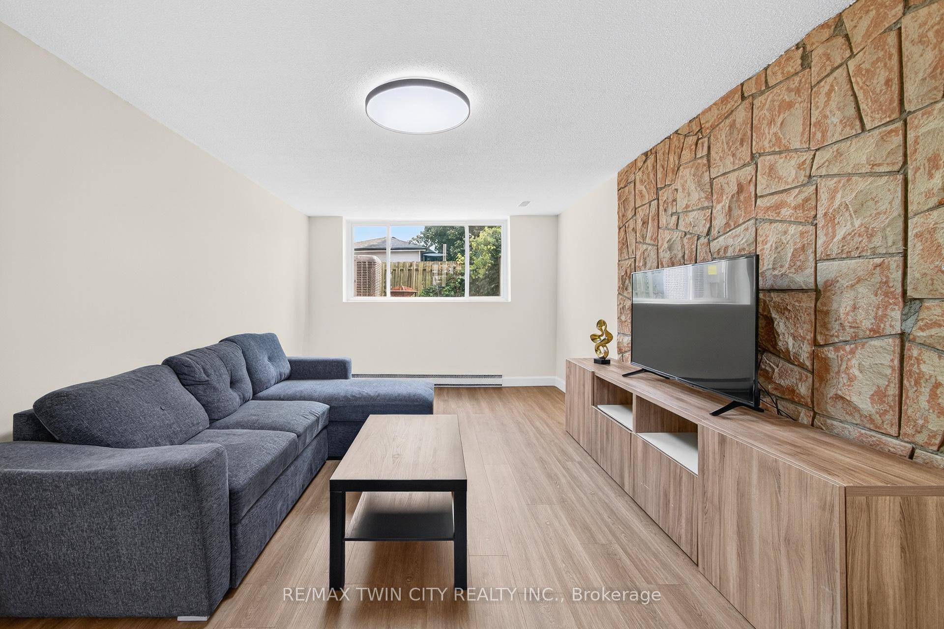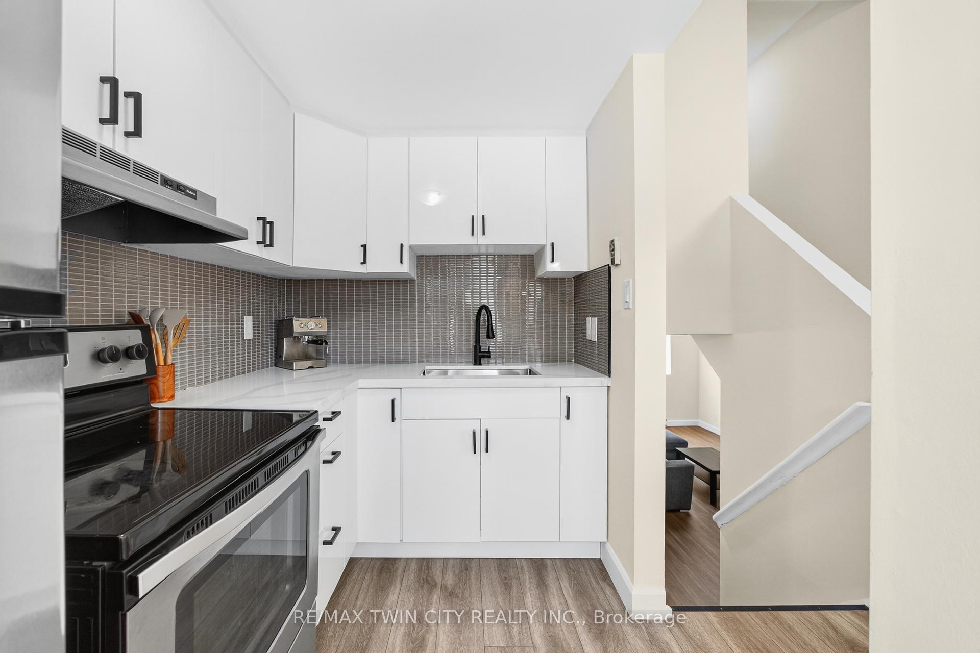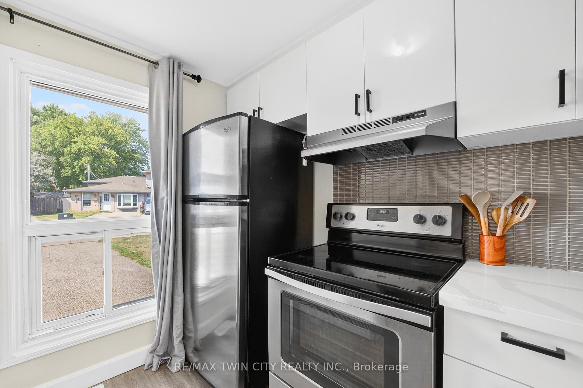 Welcome to this fully renovated, attached backsplit townhome-a rare opportunity to enjoy the space and privacy of a home without condo fees. Thoughtfully updated from top to bottom, this move-in ready residence offers 3 bedrooms and 1 bathroom, with bright, carpet-free living spaces and upgraded flooring throughout. The brand-new kitchen is a standout, perfect for everyday living and entertaining alike, while the open and airy layout is enhanced by large new windows in the bedrooms, living room, and basement, flooding the home with natural light. Major mechanical upgrades provide peace of mind, including a Lennox high-efficiency gas furnace and new central air conditioning. Step outside and enjoy your private yard-a true bonus rarely found at this price point-along with dedicated parking. Ideally located minutes from the 401 and Conestoga College, and close to shopping, dining, public transportation, and all everyday amenities, this home offers both convenience and comfort. Skip the small apartment units and monthly condo fees-this is your chance to own a beautiful, updated home with outdoor space, in a well-connected location, ready for you to move in and enjoy.