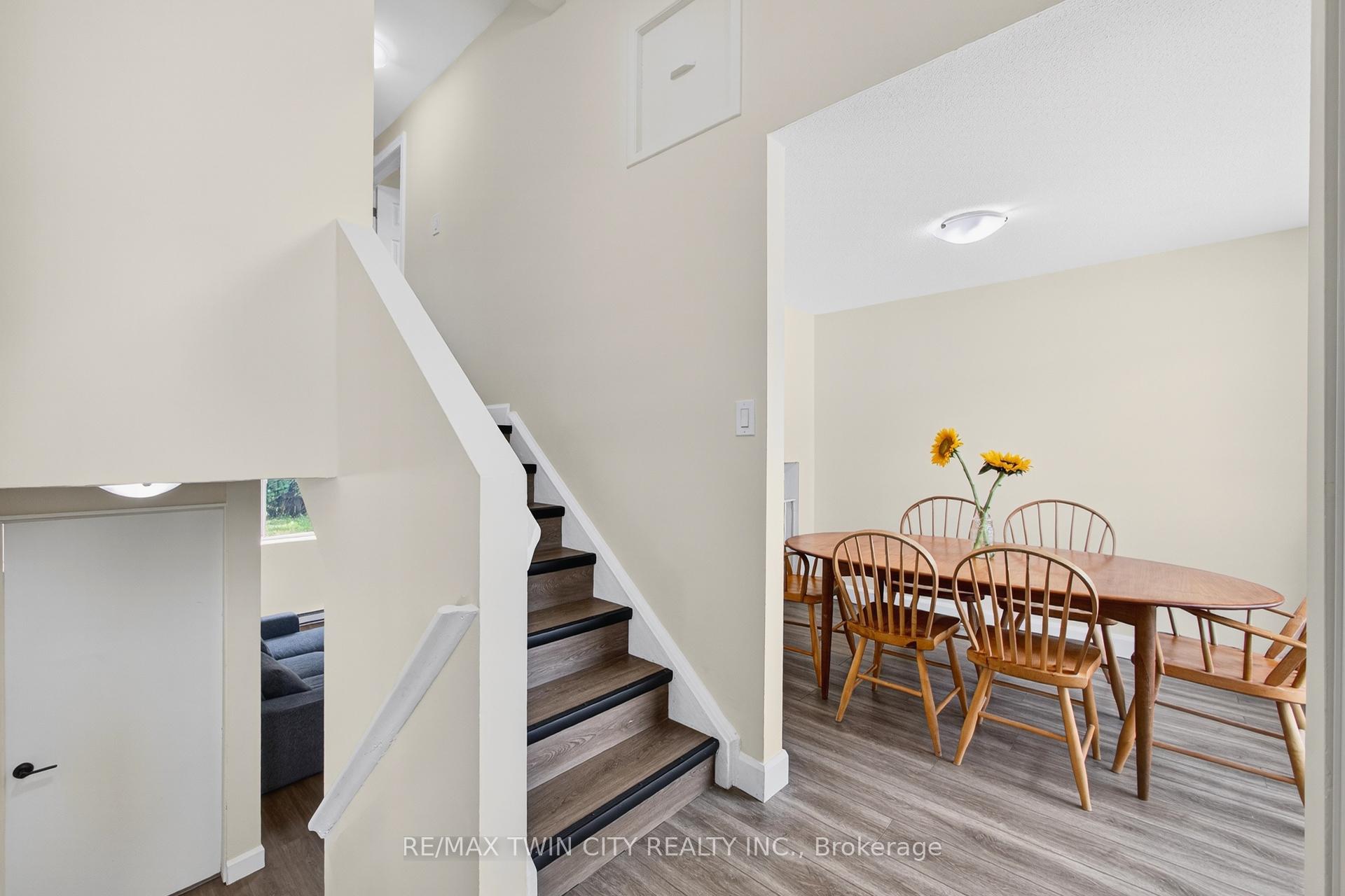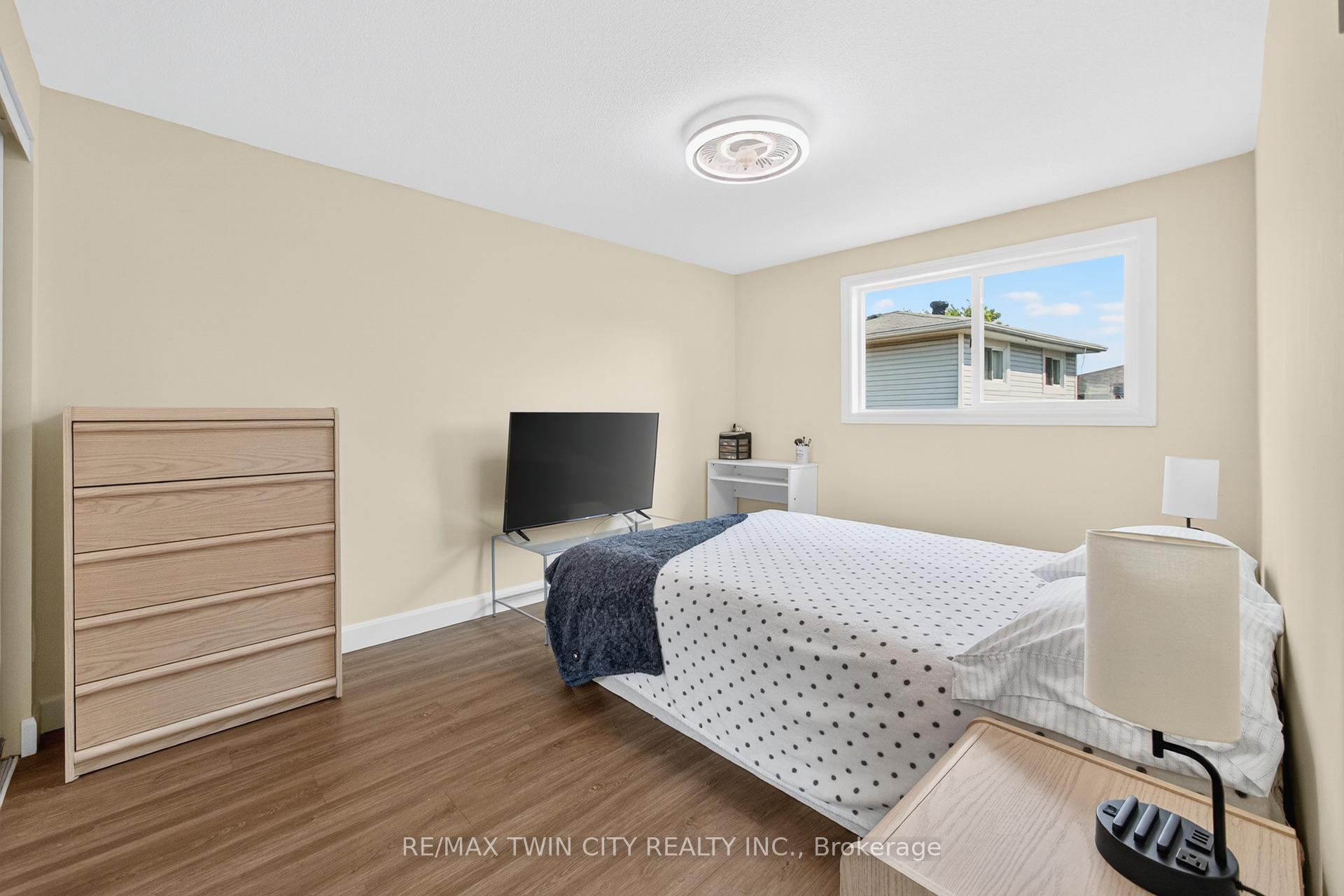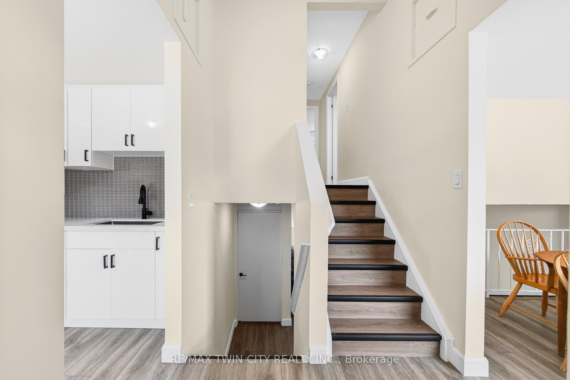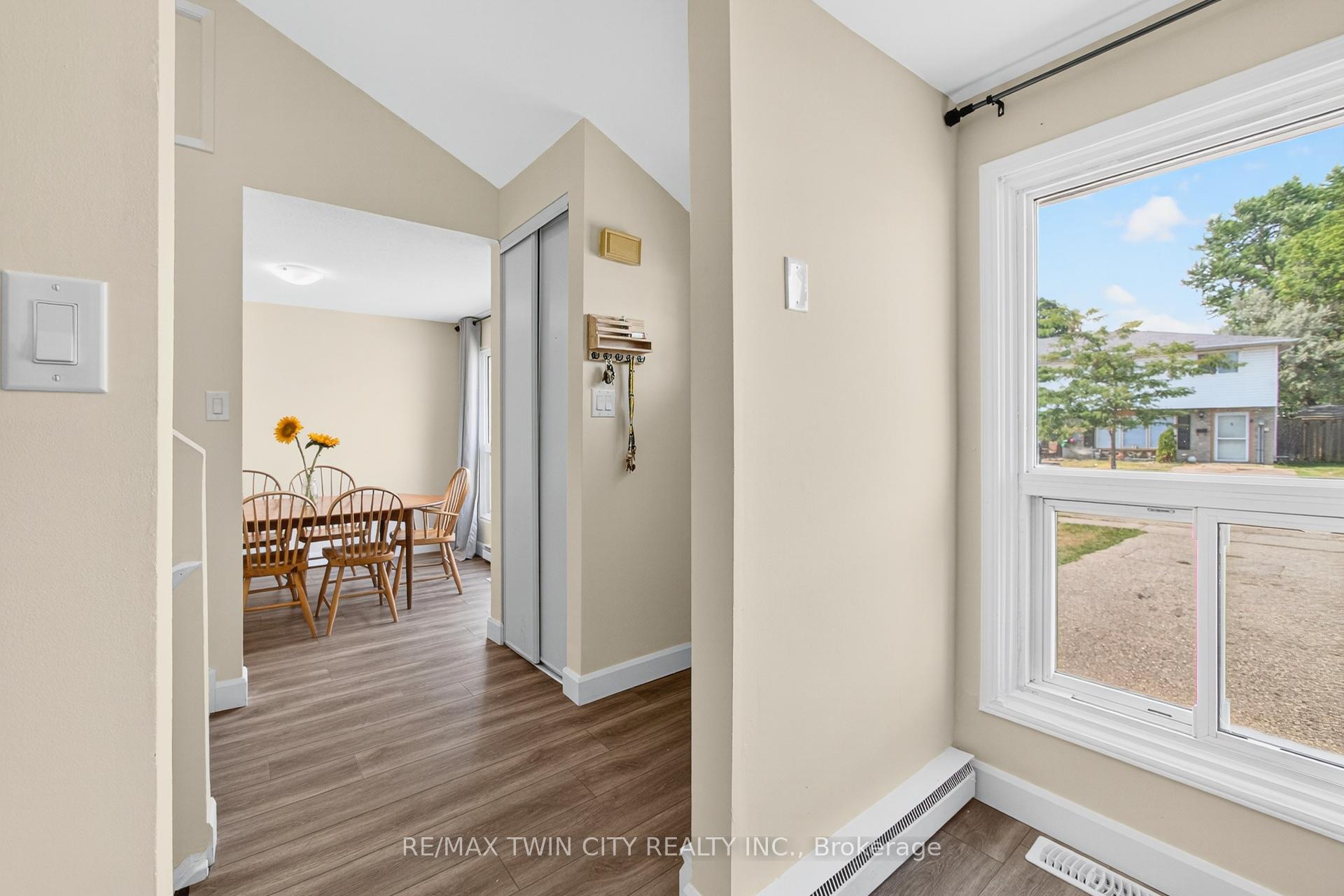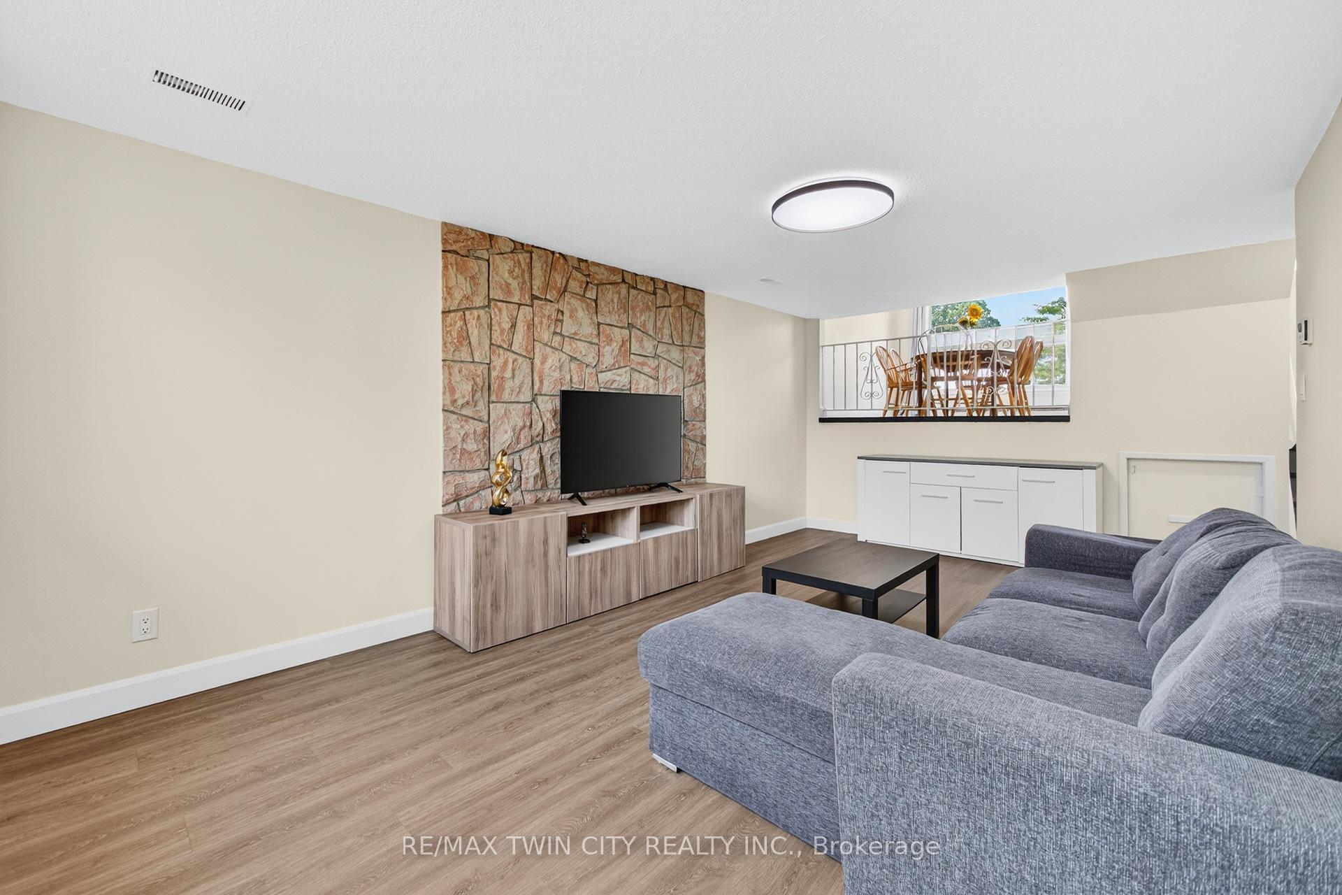 Welcome to this fully renovated, attached backsplit townhome-a rare opportunity to enjoy the space and privacy of a home without condo fees. Thoughtfully updated from top to bottom, this move-in ready residence offers 3 bedrooms and 1 bathroom, with bright, carpet-free living spaces and upgraded flooring throughout. The brand-new kitchen is a standout, perfect for everyday living and entertaining alike, while the open and airy layout is enhanced by large new windows in the bedrooms, living room, and basement, flooding the home with natural light. Major mechanical upgrades provide peace of mind, including a Lennox high-efficiency gas furnace and new central air conditioning. Step outside and enjoy your private yard-a true bonus rarely found at this price point-along with dedicated parking. Ideally located minutes from the 401 and Conestoga College, and close to shopping, dining, public transportation, and all everyday amenities, this home offers both convenience and comfort. Skip the small apartment units and monthly condo fees-this is your chance to own a beautiful, updated home with outdoor space, in a well-connected location, ready for you to move in and enjoy.