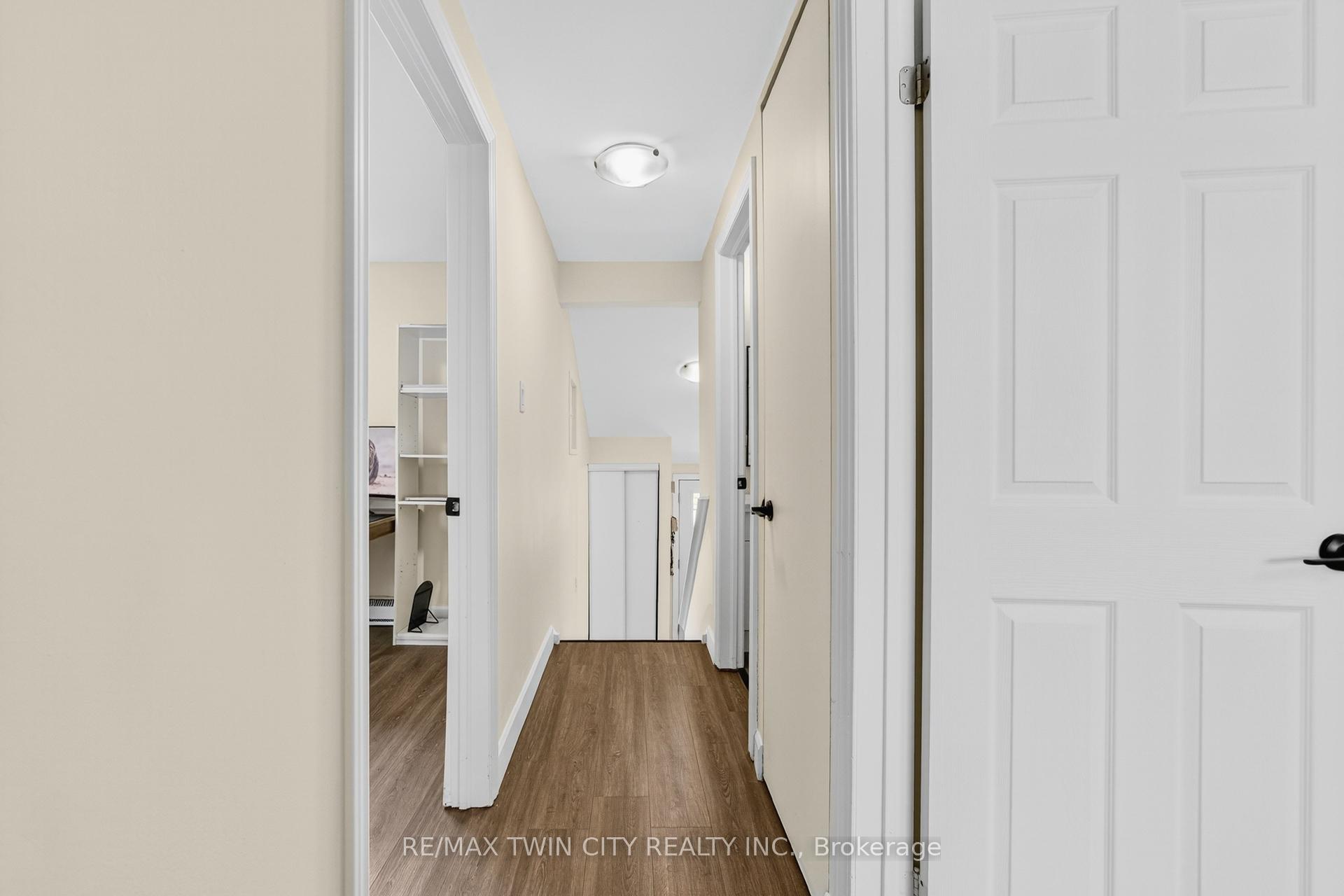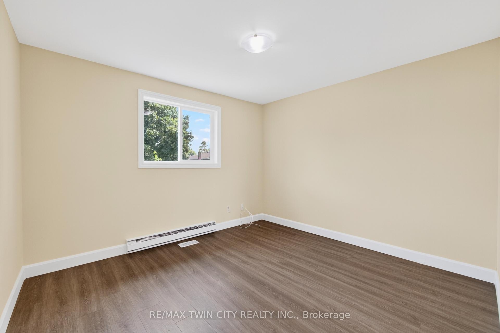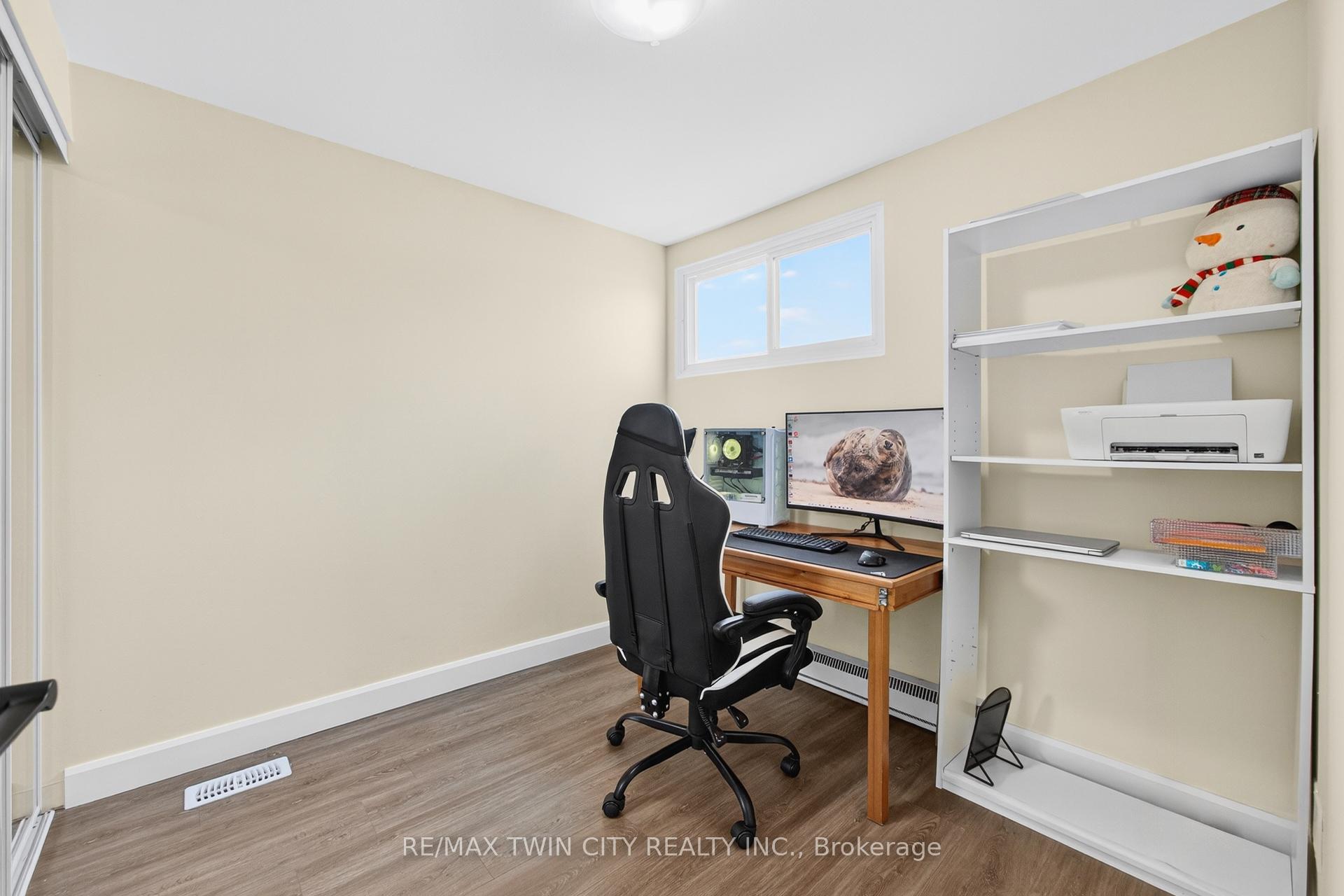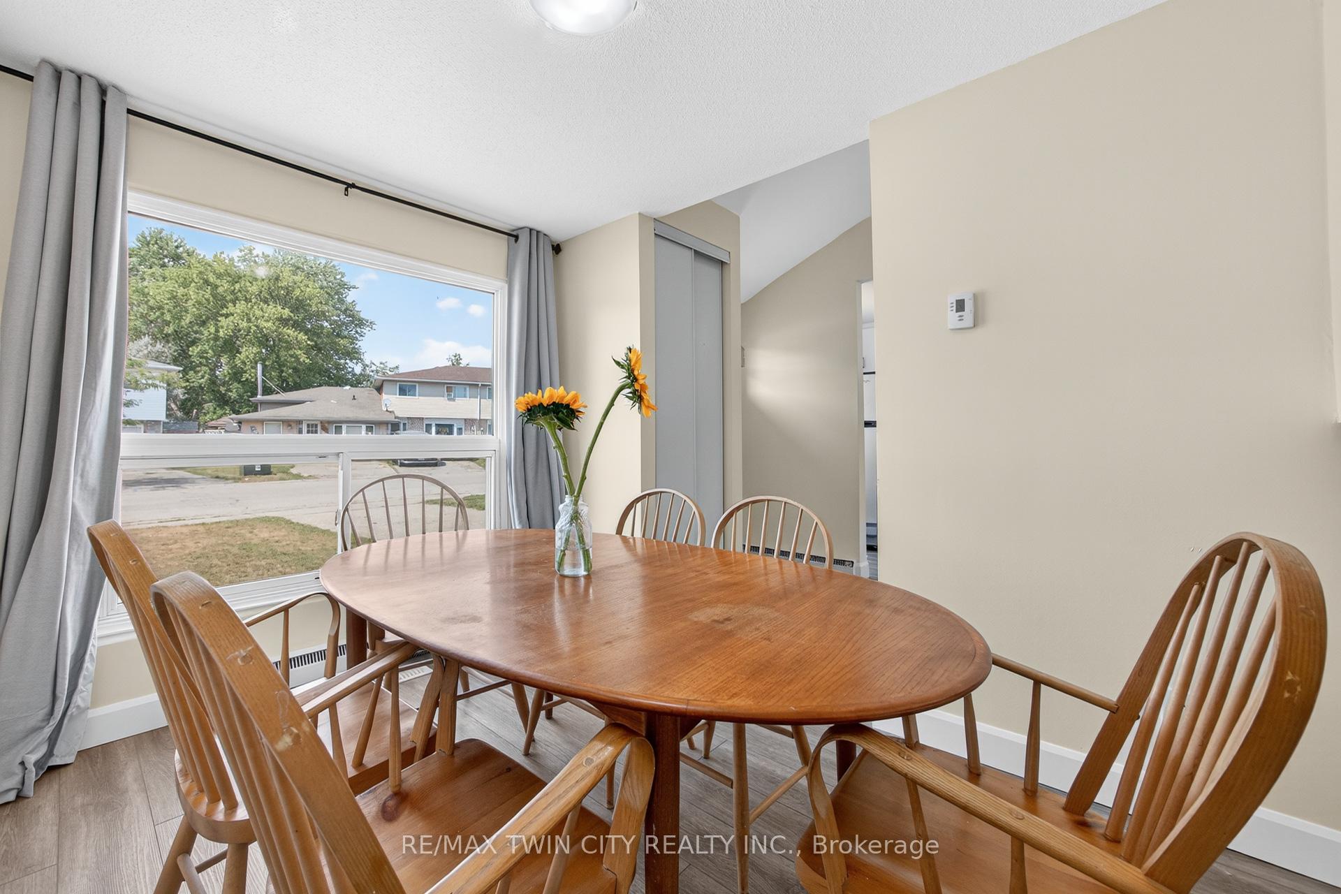 Welcome to this fully renovated, attached backsplit townhome-a rare opportunity to enjoy the space and privacy of a home without condo fees. Thoughtfully updated from top to bottom, this move-in ready residence offers 3 bedrooms and 1 bathroom, with bright, carpet-free living spaces and upgraded flooring throughout. The brand-new kitchen is a standout, perfect for everyday living and entertaining alike, while the open and airy layout is enhanced by large new windows in the bedrooms, living room, and basement, flooding the home with natural light. Major mechanical upgrades provide peace of mind, including a Lennox high-efficiency gas furnace and new central air conditioning. Step outside and enjoy your private yard-a true bonus rarely found at this price point-along with dedicated parking. Ideally located minutes from the 401 and Conestoga College, and close to shopping, dining, public transportation, and all everyday amenities, this home offers both convenience and comfort. Skip the small apartment units and monthly condo fees-this is your chance to own a beautiful, updated home with outdoor space, in a well-connected location, ready for you to move in and enjoy.