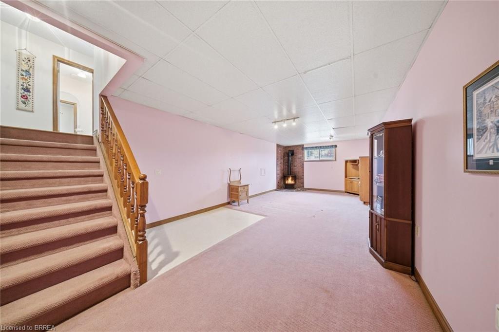 The full basement with high ceilings 9ft , is partially finished with recreation room ,gas fireplace and extra 4th bedroom, and offers great potential for additional living space in portion unfinished —perfect for another rec room, in-law suite, or home gym.