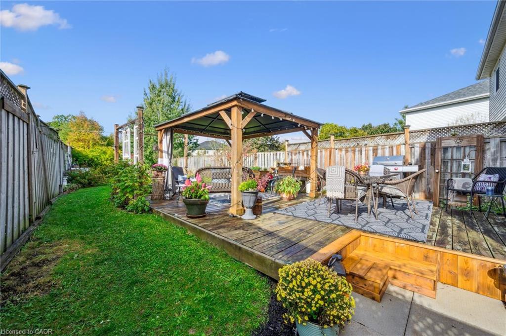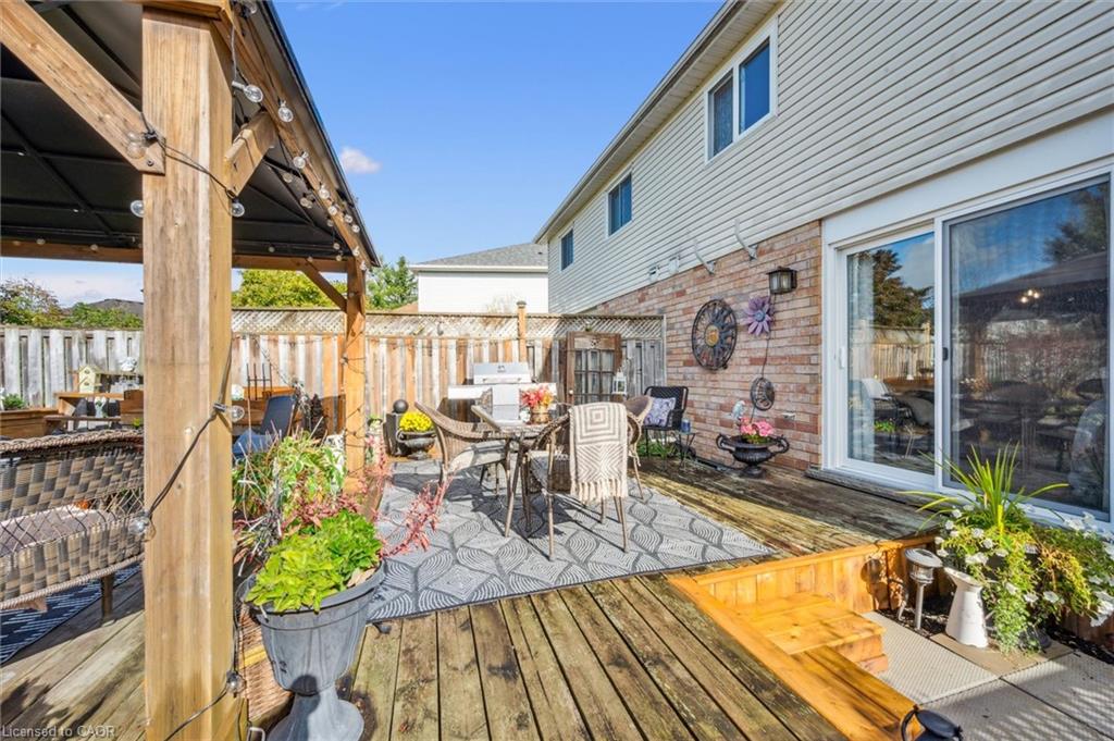 This home is truly AAA Show Ready! You’ll love the fresh, modern decor with new paint, flooring, and light fixtures throughout (2025). The main level features a refreshed, modern kitchen complete with stainless steel appliances, under-cabinet lighting, island, and a spacious dinette. The perfect living room has sliders leading to your private, park-like, fully-fenced backyard with a deck, gazebo, and shed—your own outdoor oasis.Upstairs, find three generous bedrooms, including a huge primary suite that easily fits a king-size bed and features double closets. The main bathroom was luxuriously updated in 2024/2025 with a new quartz-top vanity and shower. A stylishly updated main floor powder room adds convenience. The lower level is fully finished, offering a fantastic huge rec room with an electric fireplace, a dedicated office area, a two-piece bathroom, and a separate utility/laundry space.