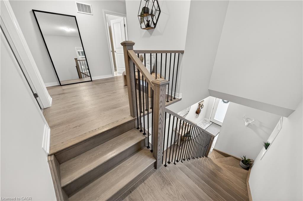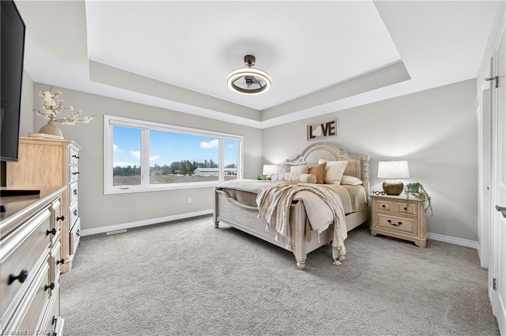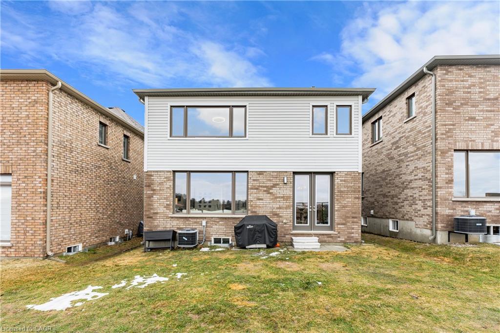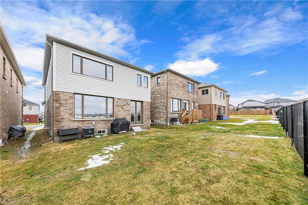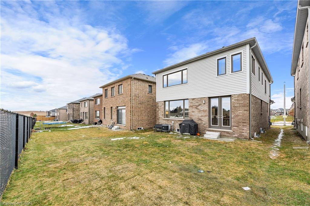 Welcome to this stunning family home in the heart of the village of Ayr – located in a newer subdivision and backing onto peaceful farmers’ fields with breathtaking sunrise and sunset views. Built in 2024 and beautifully upgraded throughout, this approximately 2,200 sq. ft. home offers the perfect blend of modern design and functional family living. The main floor features gorgeous hardwood flooring throughout, including the staircase, and a thoughtfully updated kitchen designed to impress. You’ll love the oversized island – ideal for entertaining – along with high-end GE Café appliances, pantry with pull-out cabinetry, and stunning oversized subway tile backsplash. A spacious living and dining area flows seamlessly for gatherings, while the added coffee bar, floating shelves, and extra storage bring both charm and practicality. Upstairs, you’ll find four generous bedrooms – perfect for growing families. The primary suite offers a custom walk-in closet and a luxurious ensuite complete with double sinks, a soaker tub, and separate shower. A second upstairs bathroom also features double sinks with a private shower and water closet – ideal for busy mornings. The convenient upper-level laundry room includes custom cabinetry for added organization. French doors lead to the backyard where uninterrupted field views create a peaceful and private setting – a rare find in a family-friendly neighbourhood. The unfinished basement offers incredible potential to expand your living space – whether you envision a recreation room, gym, additional bedroom, or in-law setup. Neutral tones throughout make this home truly move-in ready. Stylish, functional, and beautifully maintained – this is the perfect next step for a family looking to settle into one of Ayr’s most desirable communities.