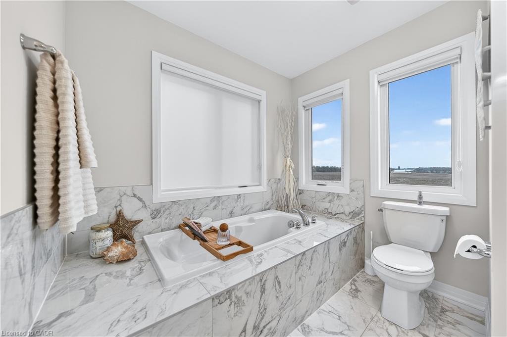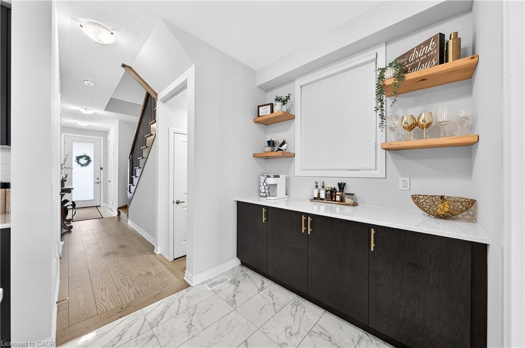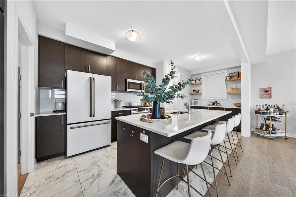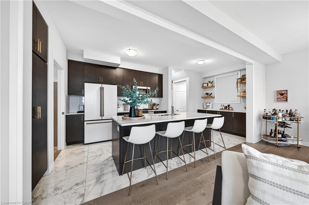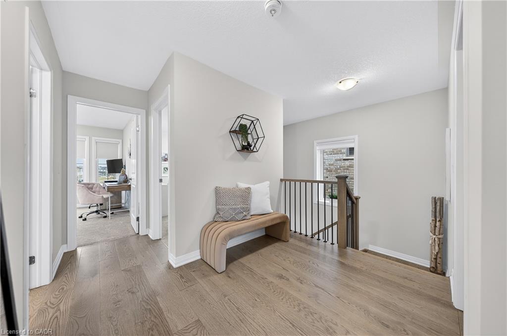 Welcome to this stunning family home in the heart of the village of Ayr – located in a newer subdivision and backing onto peaceful farmers’ fields with breathtaking sunrise and sunset views. Built in 2024 and beautifully upgraded throughout, this approximately 2,200 sq. ft. home offers the perfect blend of modern design and functional family living. The main floor features gorgeous hardwood flooring throughout, including the staircase, and a thoughtfully updated kitchen designed to impress. You’ll love the oversized island – ideal for entertaining – along with high-end GE Café appliances, pantry with pull-out cabinetry, and stunning oversized subway tile backsplash. A spacious living and dining area flows seamlessly for gatherings, while the added coffee bar, floating shelves, and extra storage bring both charm and practicality. Upstairs, you’ll find four generous bedrooms – perfect for growing families. The primary suite offers a custom walk-in closet and a luxurious ensuite complete with double sinks, a soaker tub, and separate shower. A second upstairs bathroom also features double sinks with a private shower and water closet – ideal for busy mornings. The convenient upper-level laundry room includes custom cabinetry for added organization. French doors lead to the backyard where uninterrupted field views create a peaceful and private setting – a rare find in a family-friendly neighbourhood. The unfinished basement offers incredible potential to expand your living space – whether you envision a recreation room, gym, additional bedroom, or in-law setup. Neutral tones throughout make this home truly move-in ready. Stylish, functional, and beautifully maintained – this is the perfect next step for a family looking to settle into one of Ayr’s most desirable communities.