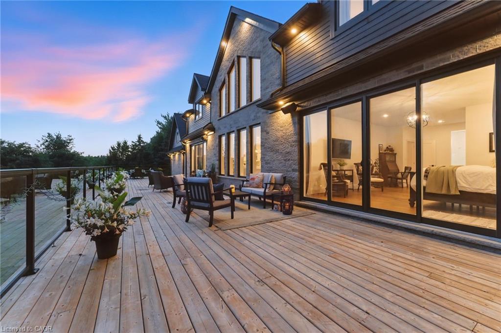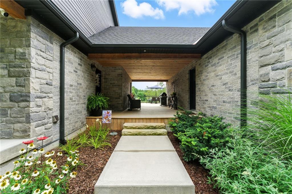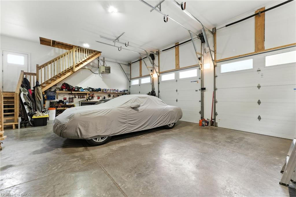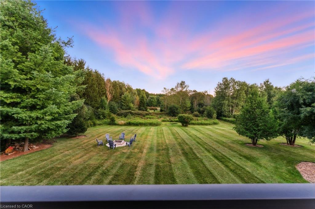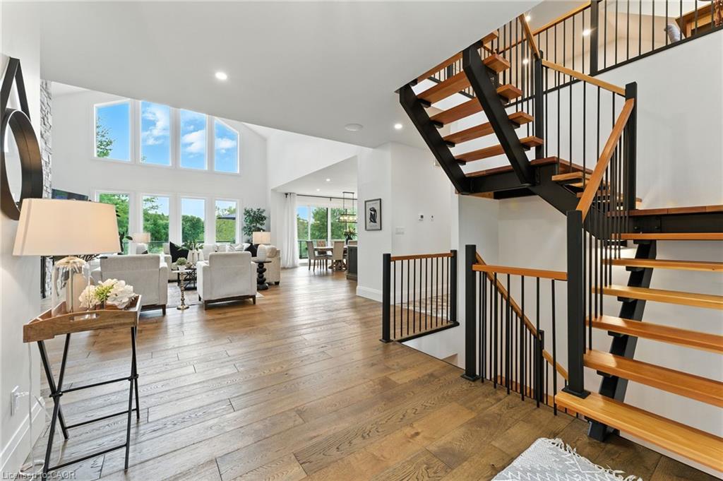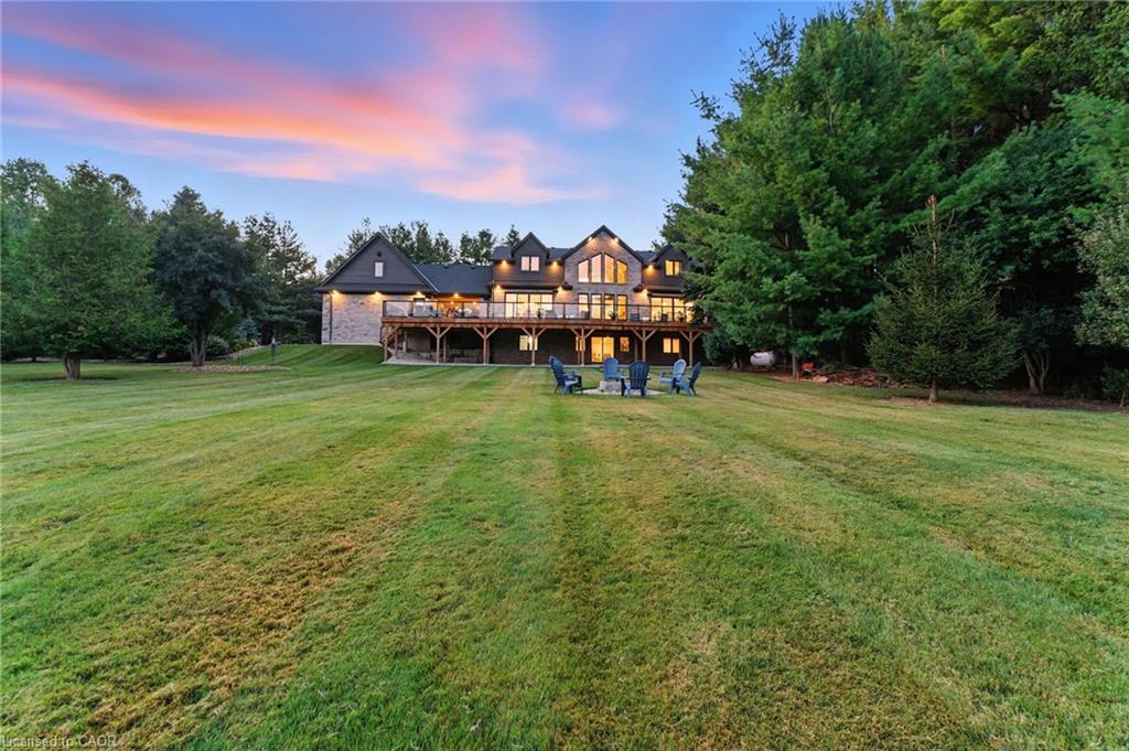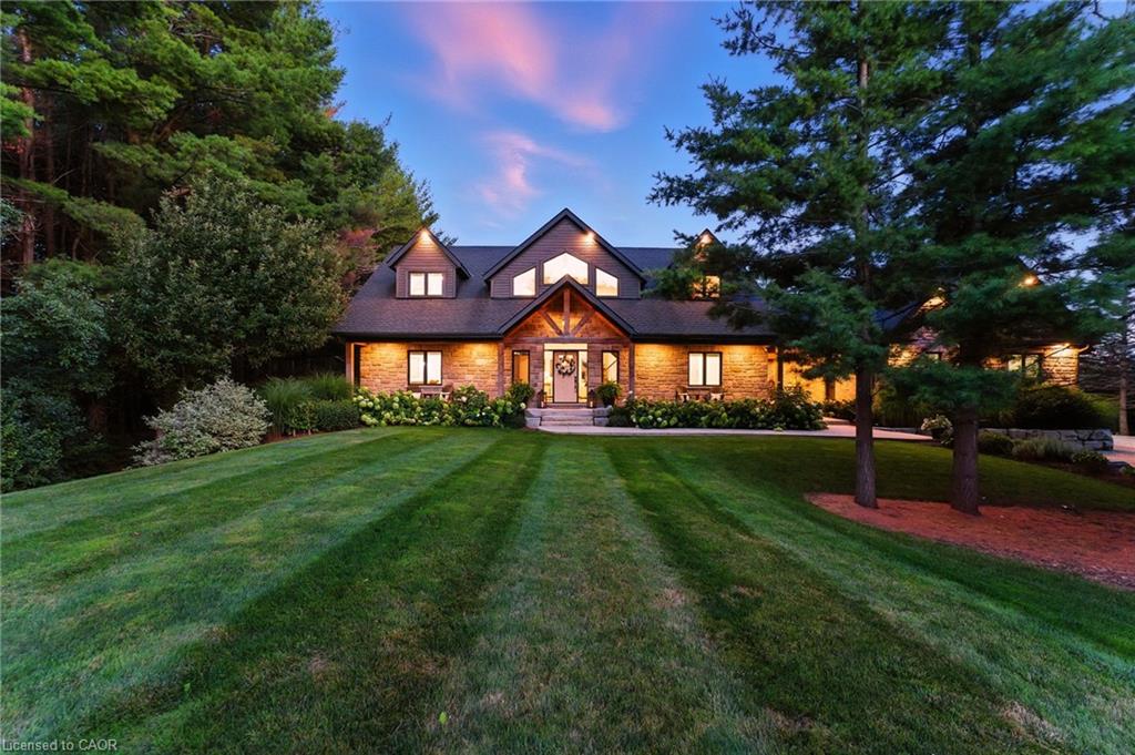 Custom-Built Executive Home on 8 Private Acres with Stunning Views – Just 5 Minutes from Historic Elora. Discover the perfect blend of luxury, privacy, and natural beauty in this exceptional custom-built estate, offering over 4,000 sq. ft. of thoughtfully designed finished living space. Set on 8 peaceful acres of scenic countryside, this one-of-a-kind home welcomes you with sweeping views and a true sense of tranquility. Inside, soaring ceilings, oversized windows, and engineered oak flooring fill the home with light and warmth. A handcrafted three-story Douglas Fir staircase adds timeless character, while built-in surround sound brings each space to life. The main floor is designed for connection and comfort, featuring an open-concept layout flowing from the great room to the spacious dining area and a chef-inspired kitchen with a hickory island, Cambria quartz counters, and high-end finishes. A mudroom and laundry area with breezeway access to the garage add daily convenience. The main floor primary suite is a private retreat with a spa-like ensuite including heated floors, a soaker tub, walk-in shower, double vanities, and a large walk-in closet. Upstairs offers two large bedrooms, a well-appointed bathroom, a quiet office, and a cozy reading lounge overlooking the great room and backyard. The bright walk-out lower level features oversized windows, a large bedroom, an inviting rec room, and storage. The fully insulated, heated 3-car garage with 9 ft doors including a loft—ideal for a studio or future in-law suite. A separate 18’x33’ workshop offers space for tools, toys, or equipment. For added peace of mind, the property is equipped with a whole home automatic generator, ensuring comfort and security in every season. Step outside to enjoy a large back deck, private trails, and a peaceful stream—perfect for nature walks or trail riding. Severance potential offers rare future value without compromising privacy.
