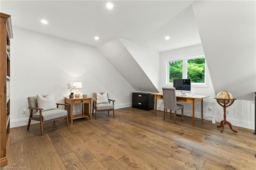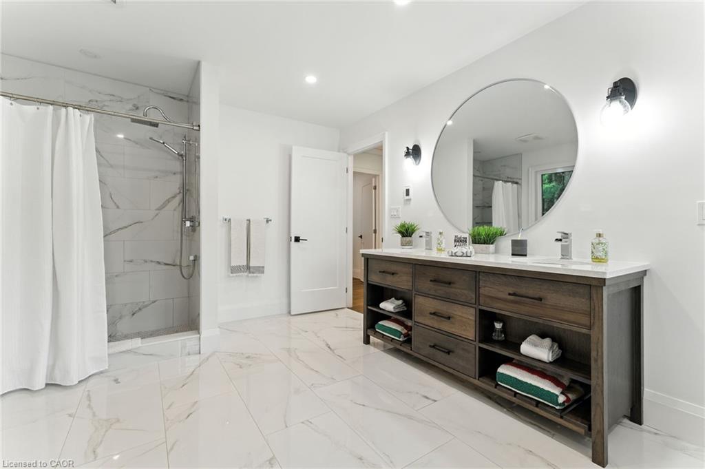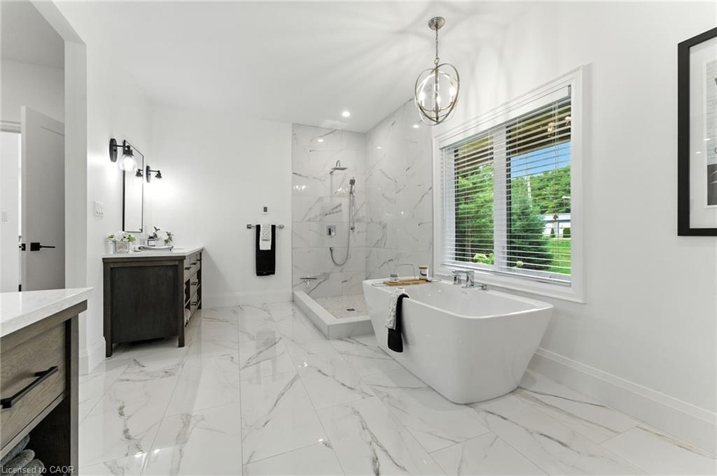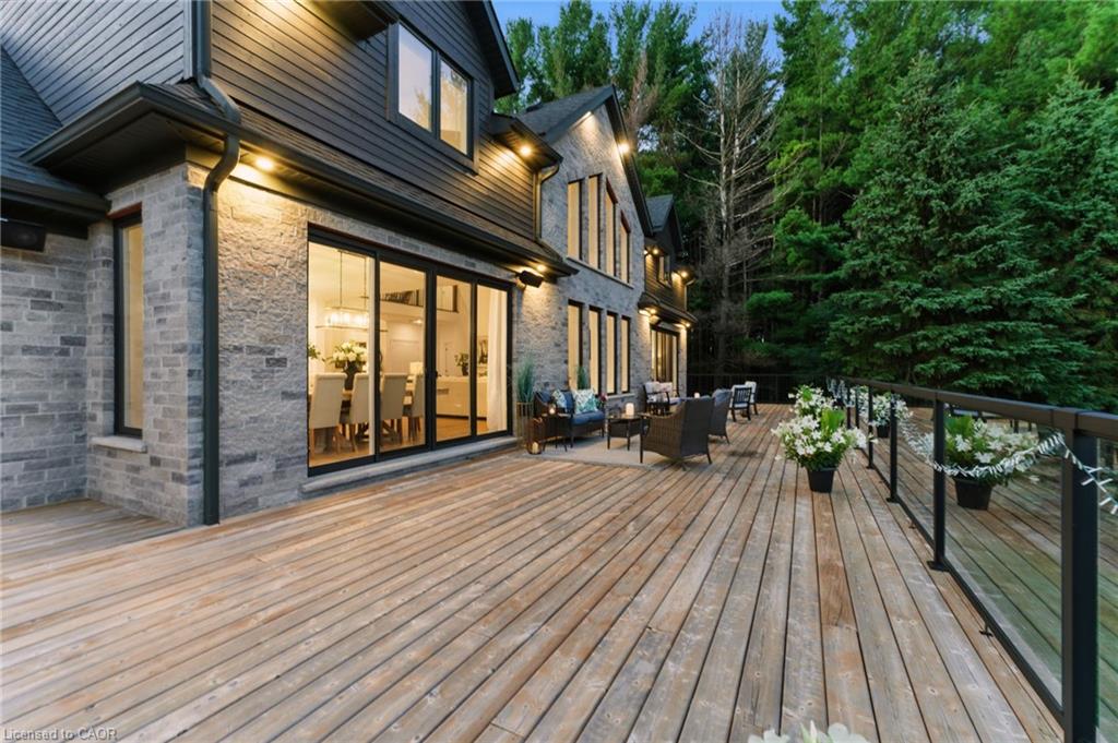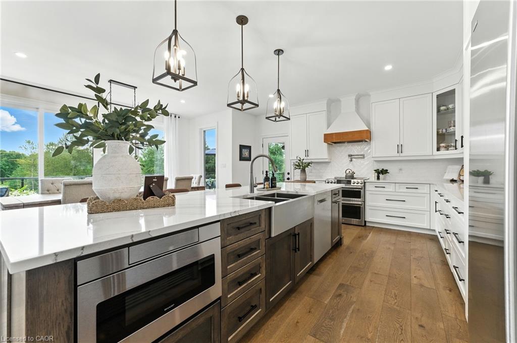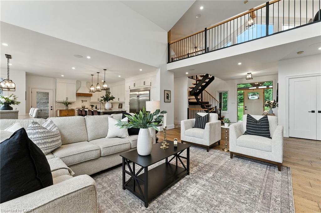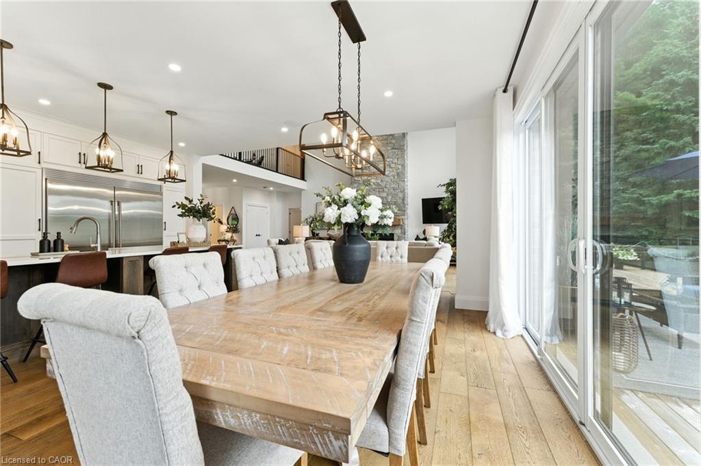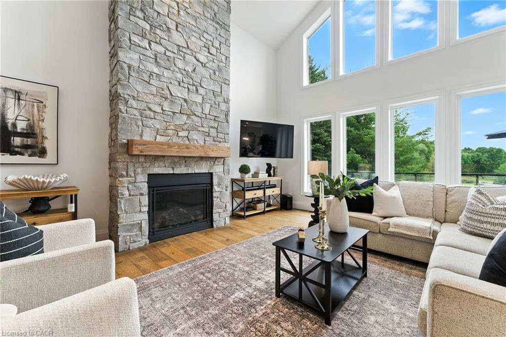 Custom-Built Executive Home on 8 Private Acres with Stunning Views – Just 5 Minutes from Historic Elora. Discover the perfect blend of luxury, privacy, and natural beauty in this exceptional custom-built estate, offering over 4,000 sq. ft. of thoughtfully designed finished living space. Set on 8 peaceful acres of scenic countryside, this one-of-a-kind home welcomes you with sweeping views and a true sense of tranquility. Inside, soaring ceilings, oversized windows, and engineered oak flooring fill the home with light and warmth. A handcrafted three-story Douglas Fir staircase adds timeless character, while built-in surround sound brings each space to life. The main floor is designed for connection and comfort, featuring an open-concept layout flowing from the great room to the spacious dining area and a chef-inspired kitchen with a hickory island, Cambria quartz counters, and high-end finishes. A mudroom and laundry area with breezeway access to the garage add daily convenience. The main floor primary suite is a private retreat with a spa-like ensuite including heated floors, a soaker tub, walk-in shower, double vanities, and a large walk-in closet. Upstairs offers two large bedrooms, a well-appointed bathroom, a quiet office, and a cozy reading lounge overlooking the great room and backyard. The bright walk-out lower level features oversized windows, a large bedroom, an inviting rec room, and storage. The fully insulated, heated 3-car garage with 9 ft doors including a loft—ideal for a studio or future in-law suite. A separate 18’x33’ workshop offers space for tools, toys, or equipment. For added peace of mind, the property is equipped with a whole home automatic generator, ensuring comfort and security in every season. Step outside to enjoy a large back deck, private trails, and a peaceful stream—perfect for nature walks or trail riding. Severance potential offers rare future value without compromising privacy.