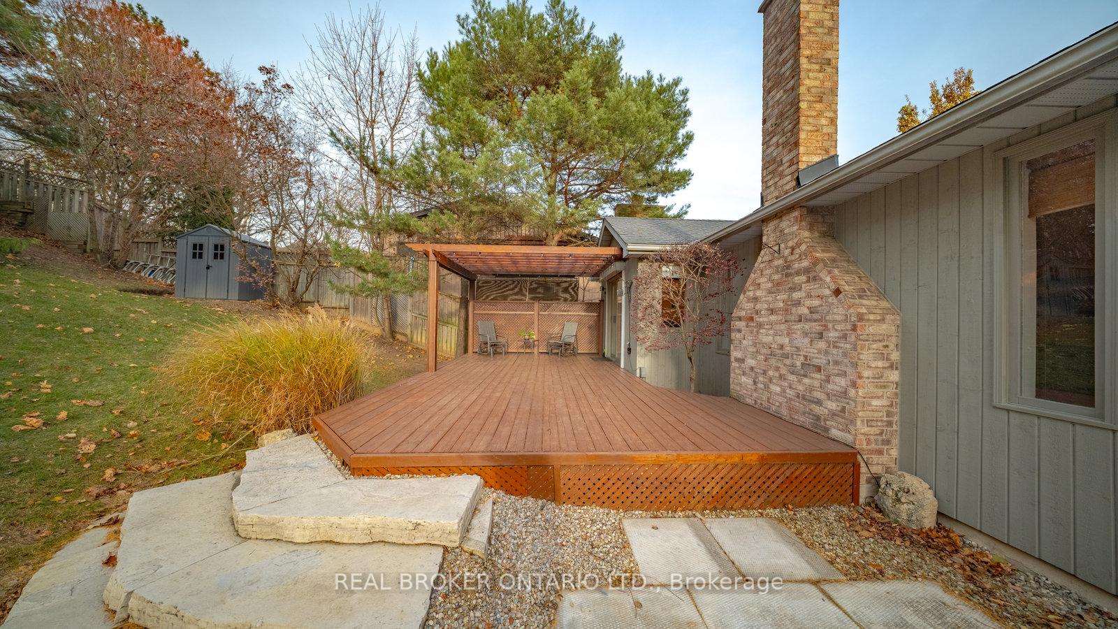 Set on a beautiful, elevated lot in West Galt, 74 Gordon Street offers the kind of space and layout that growing households look for in this sought-after area. A grand raised-ranch entry welcomes you with room to breathe, leading easily to both levels and setting the tone for how much space this home gives you. The upper level features an expansive formal living room with a bay window, a dedicated dining room, and a sunken family room anchored by a gas fireplace. The chef’s eat-in kitchen has granite counters, stainless steel appliances, and direct access to the deck for easy indoor-outdoor living. Hardwood floors run throughout the main areas, and the private wing includes a generous primary suite with a walk-through closet and spa-like bathroom, along with two more large bedrooms and a second designer bath. The lower level adds even more flexibility with a massive rec room with large windows, an additional bedroom, a full bathroom, laundry room, storage, and direct access to the oversized two-car garage. Outside, the yard feels like cottage country with its terraced design, mature trees, and multiple outdoor spaces including a deck with pergola, a patio ready for a hot tub, and a private front sitting area perfect for morning coffee. This is a well-kept home in a quiet corner of West Galt with quick access to schools, parks, and everyday amenities. Come see what makes this one so special.