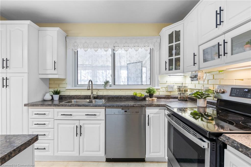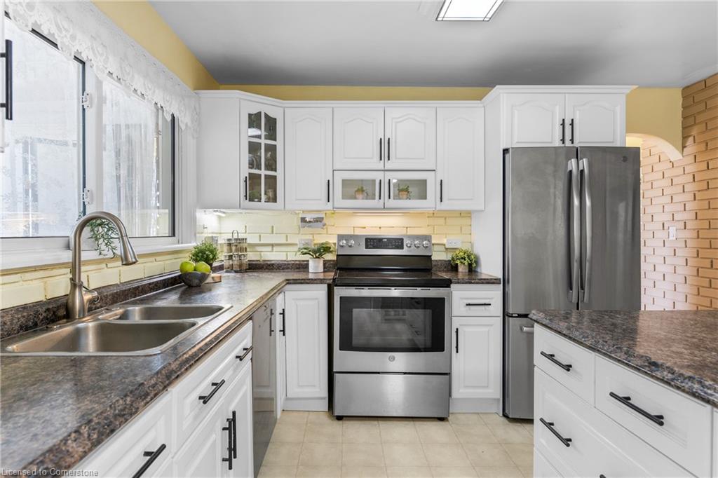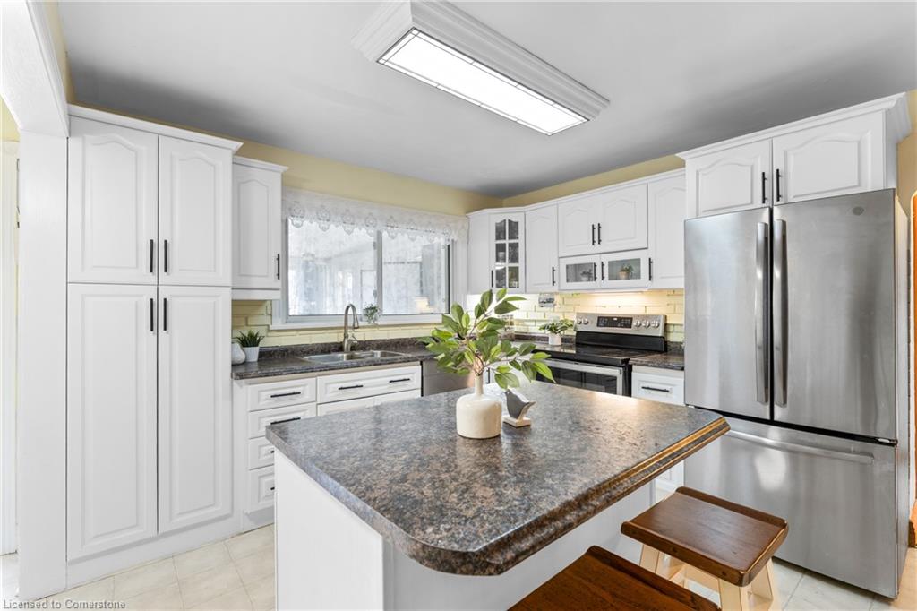 Location…Location…Location. Well kept bungalow located in a highly sought after neighbourhood in South Preston. Main floor features a large living room with fireplace, eat-in kitchen with white cabinetry, stainless steel appliances and movable island. There is a 4 season sunroom with gas stove, now being used as a home office/ dining room. Its a great “flex” space, the previous owner used it as a main floor family room. Original hardwood floors under the carpet in living room and bedroom. Attached garage with inside entry, garage door opener and its insulated.The basement features a 3rd bedroom, 3 piece bathroom (combined with laundry), small office area and a L-shaped rec room with gas stove. The backyard is fabulous, its huge and very private. Fully fenced and features a stone patio area, insulated workshop 12 X 12 X 14 with hydro and a 10 X 10 garden shed. Lots of updates: furnace 2012, roof shingles 2016,vinyl windows almost throughout, extra insulation in attic area, leaf gutter system and hydro is breakers. Water softener and water heater are both owned. The location is amazing! Its quiet and only a block or two from Preston High School, St. Joseph School, parks and beautiful walking trails along the river. Handy to shopping, restaurants, churches and Hwy 401. Only the 2nd owner in over 45 years.