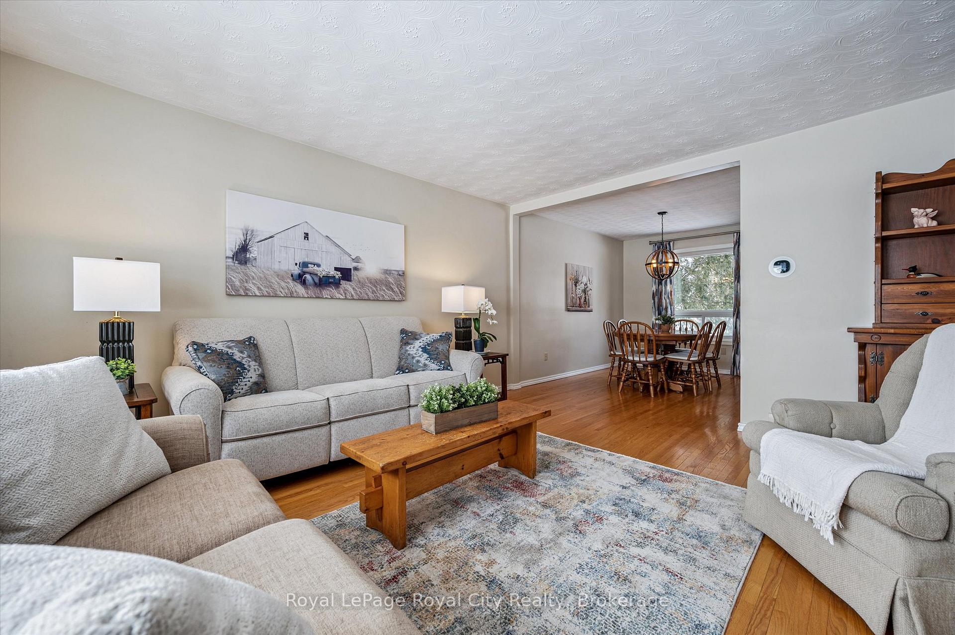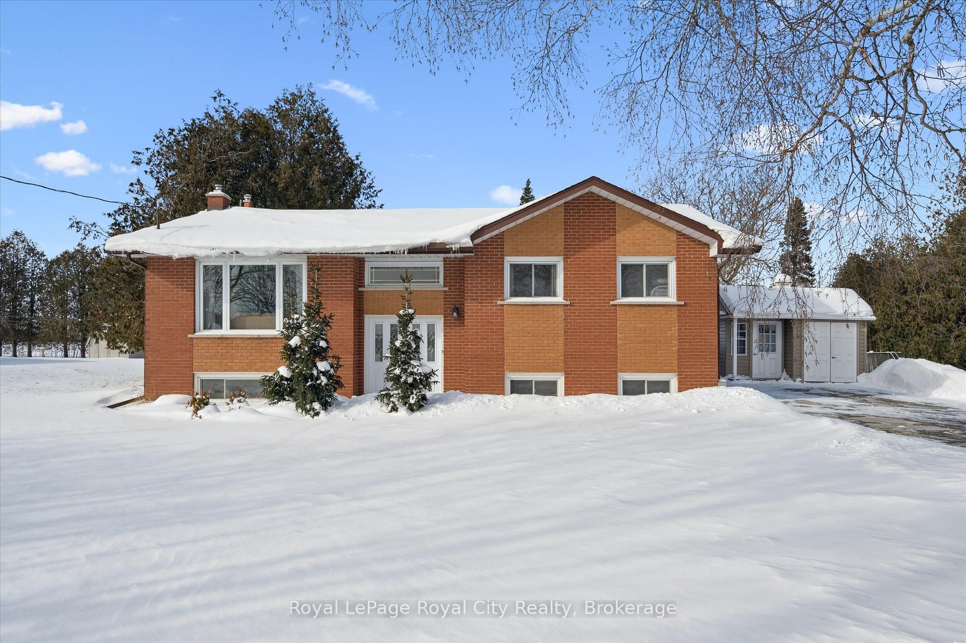 Offered for the first time ever, this solid brick raised bungalow is a true one-owner home, proudly maintained and beautifully positioned on just over half an acre in the charming community of Ariss. The professionally landscaped exterior creates exceptional curb appeal while the quiet, serene backyard offers the perfect retreat to relax and unwind. Enjoy breathtaking sunrises with your morning coffee and stunning sunsets in the evening, all from the comfort of your own property. The backyard is designed for both enjoyment and functionality, featuring a heated on-ground pool, two great-sized garden sheds for additional storage, and plenty of space to entertain or simply soak in the peaceful rural setting. Inside, the open-concept living and dining room showcases beautiful hardwood flooring and an inviting layout ideal for everyday living and hosting family and friends. The functional kitchen offers ample cabinetry and workspace, with convenient access to the rear deck, making outdoor dining and summer gatherings effortless. The main floor also features three well-appointed bedrooms and a 4 piece bathroom, providing a comfortable space for the whole family. The finished lower level offers a bright, versatile living area enhanced by large windows that allow for plenty of natural light. The generous recreation room is ideal for movie nights or relaxing evenings, complete with a cozy gas fireplace as a focal point. A separate den and a dedicated office (both easily adaptable as a 4th bedroom), a convenient 2-piece bathroom, updated laundry area, and ample storage space add to the functionality of this well-designed lower level. Practical features including natural gas, fibre internet (2020), and a whole-home and pool Generac generator (2021) provide peace of mind for comfortable country living. Ideally located close to schools, trails, and essential amenities, this exceptional property offers the perfect balance of peaceful country living and everyday convenience.