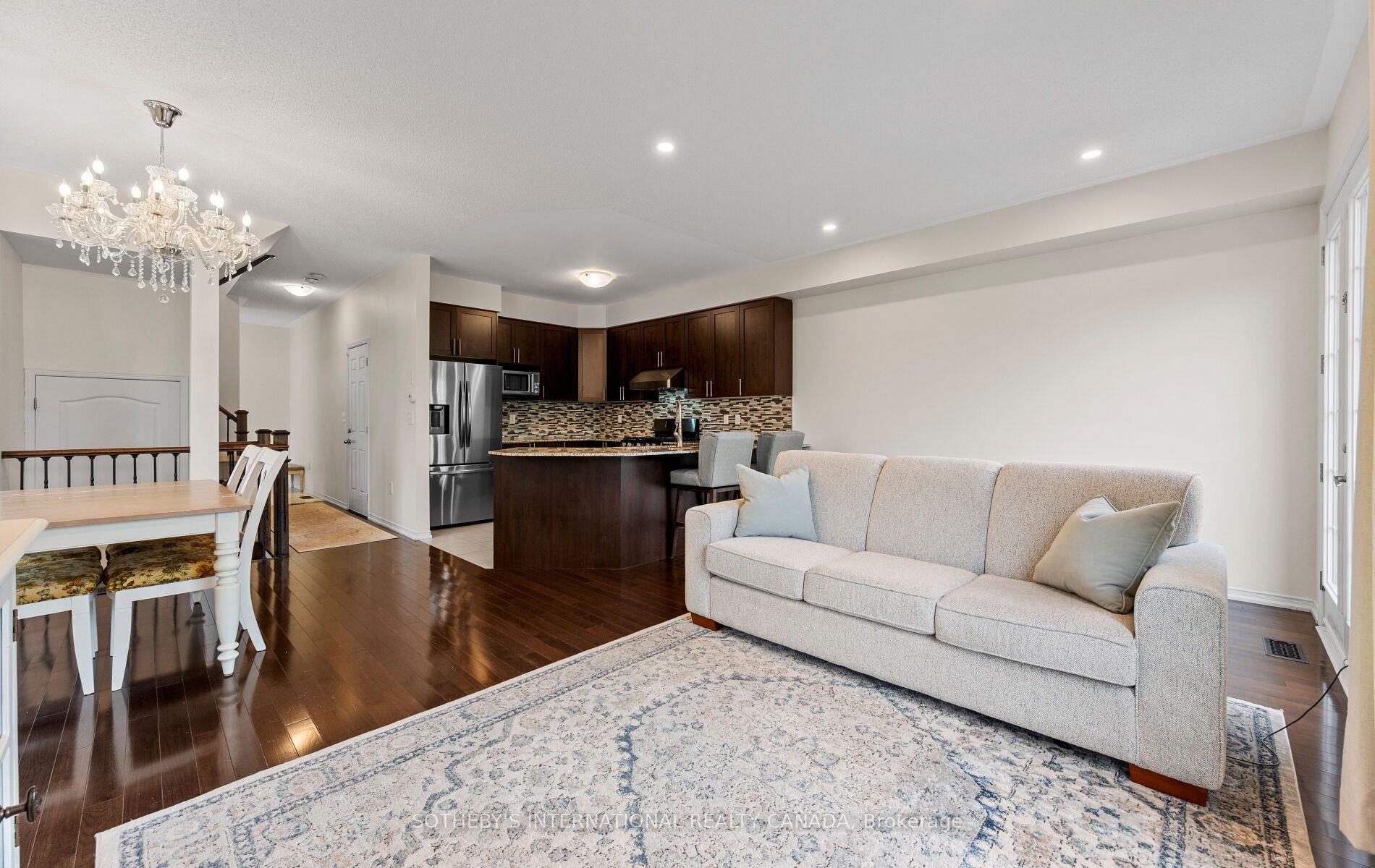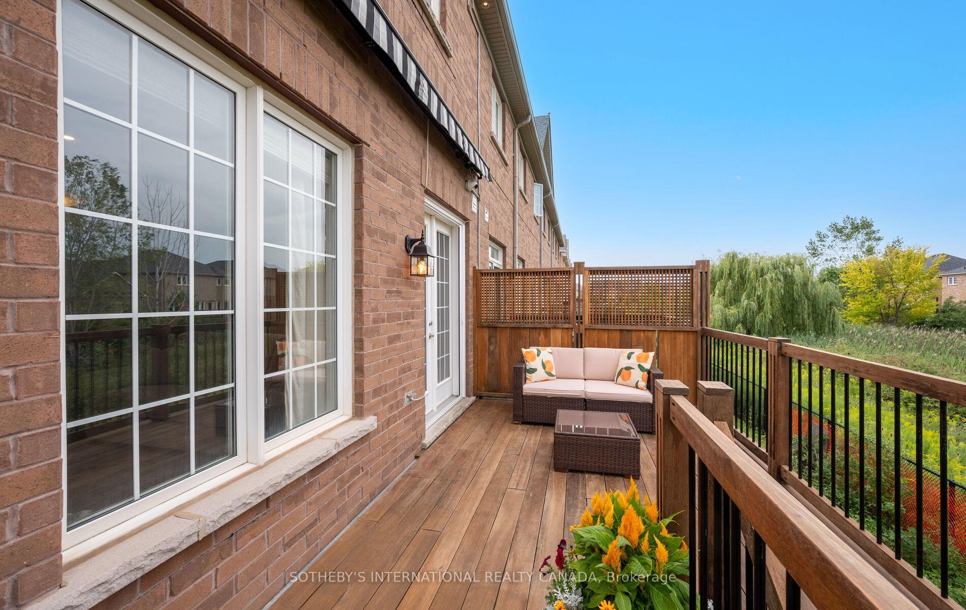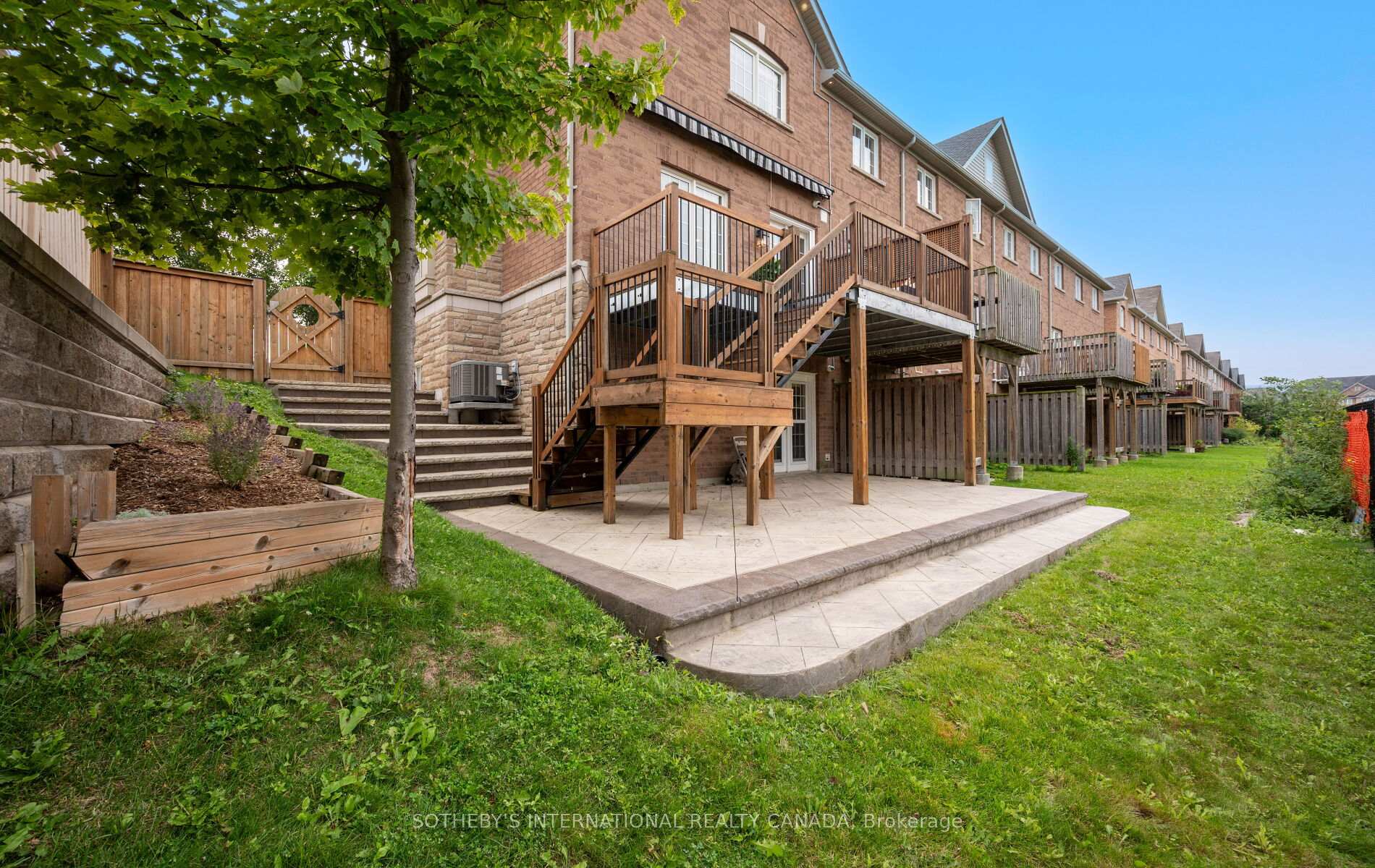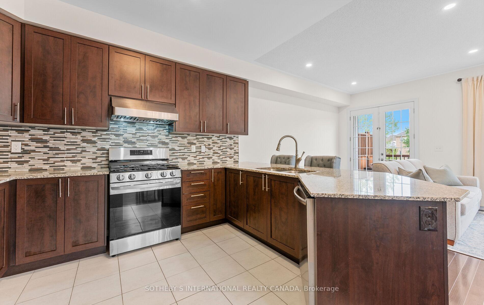 Fabulous on Farmstead! Located in the desirable Willmott neighbourhood of Milton, Unit 21 is a beautifully landscaped corner lot, end-unit townhome that backs on to tranquil green space. Take a few steps into this home and be wowed by all the natural light that pours in from its many windows & French doors. On the main floor the 9 Ft ceilings, warm hardwood floors, crisp white walls and pot lights add to its bright & airy feel. Your open concept living area has distinct zones for cooking, dining & unwinding. A modern kitchen which features a breakfast bar, double sink, ample cabinet & counter space, full sized stainless steel appliances & granite countertops. Open up those French doors (Yes! Both open to let in all that fresh air) and walk out on to your extended deck that offers stunning views of the ravine & a lovely willow tree. It’s also equipped with a motorized awning for those extra sunny days plus stairs that bring you down to your stamped concrete patio, which wraps around the exterior of the home. Exterior pot lights illuminate the home from all angles. Both deck and patio have gas lines for the BBQ aficionados! You’ll also find a two piece powder room on the main floor as well as access to your attached garage. Head upstairs and you’ll find three spacious bedrooms, as well as two full bathrooms and two linen closets. The primary bedroom is a true retreat with separate sitting area, two large windows, a walk-in closet and four piece ensuite bathroom with a soaker tub and separate shower. The lower level is a finished walkout basement that is as stunning as it is versatile. The open concept space can be used as a recreation room, home office, home gym & so much more, with a sleek full bathroom (Yes, that’s a total of four bathrooms!), stacked Electrolux full size washer & dryer and laundry sink – plus the second set of French doors lead you out into the backyard. This home has parking for three cars and additional visitor parking in the area.