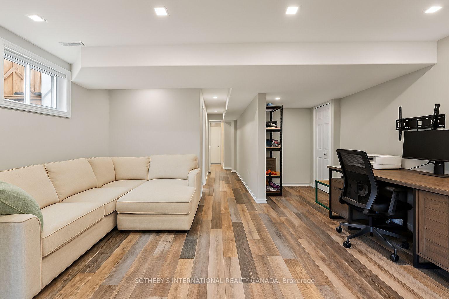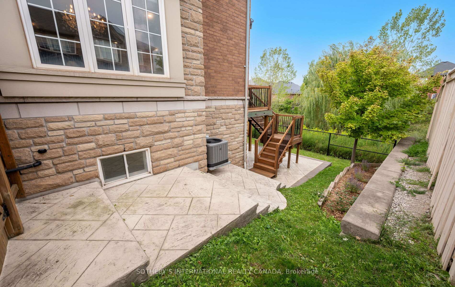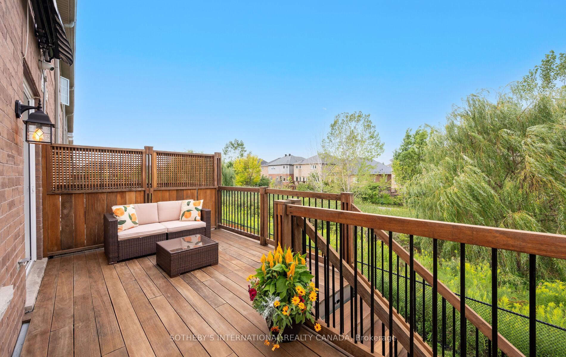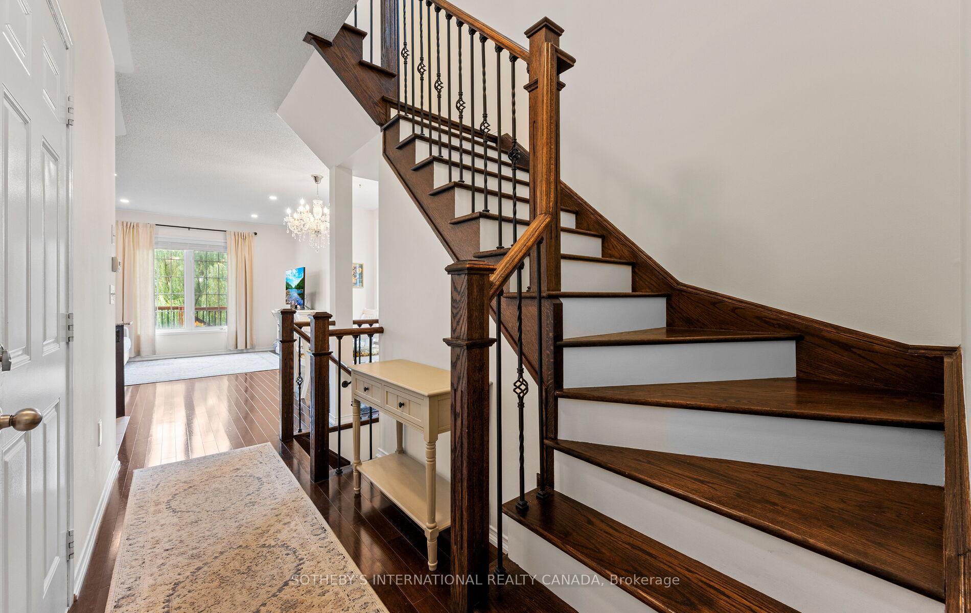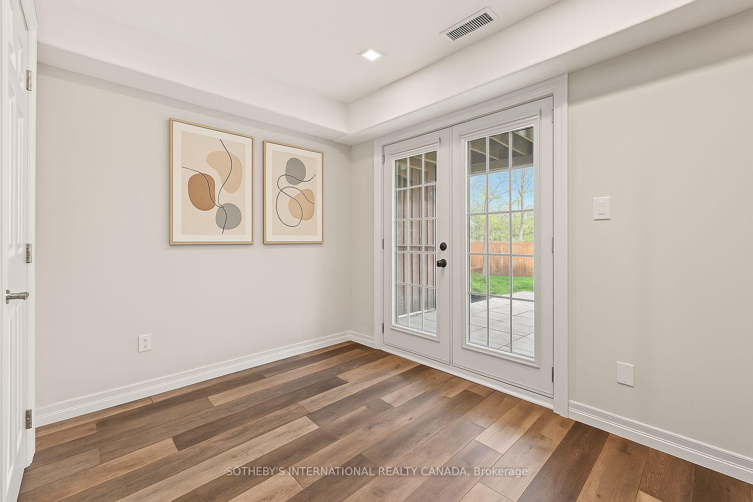 Fabulous on Farmstead! Located in the desirable Willmott neighbourhood of Milton, Unit 21 is a beautifully landscaped corner lot, end-unit townhome that backs on to tranquil green space. Take a few steps into this home and be wowed by all the natural light that pours in from its many windows & French doors. On the main floor the 9 Ft ceilings, warm hardwood floors, crisp white walls and pot lights add to its bright & airy feel. Your open concept living area has distinct zones for cooking, dining & unwinding. A modern kitchen which features a breakfast bar, double sink, ample cabinet & counter space, full sized stainless steel appliances & granite countertops. Open up those French doors (Yes! Both open to let in all that fresh air) and walk out on to your extended deck that offers stunning views of the ravine & a lovely willow tree. It’s also equipped with a motorized awning for those extra sunny days plus stairs that bring you down to your stamped concrete patio, which wraps around the exterior of the home. Exterior pot lights illuminate the home from all angles. Both deck and patio have gas lines for the BBQ aficionados! You’ll also find a two piece powder room on the main floor as well as access to your attached garage. Head upstairs and you’ll find three spacious bedrooms, as well as two full bathrooms and two linen closets. The primary bedroom is a true retreat with separate sitting area, two large windows, a walk-in closet and four piece ensuite bathroom with a soaker tub and separate shower. The lower level is a finished walkout basement that is as stunning as it is versatile. The open concept space can be used as a recreation room, home office, home gym & so much more, with a sleek full bathroom (Yes, that’s a total of four bathrooms!), stacked Electrolux full size washer & dryer and laundry sink – plus the second set of French doors lead you out into the backyard. This home has parking for three cars and additional visitor parking in the area.
