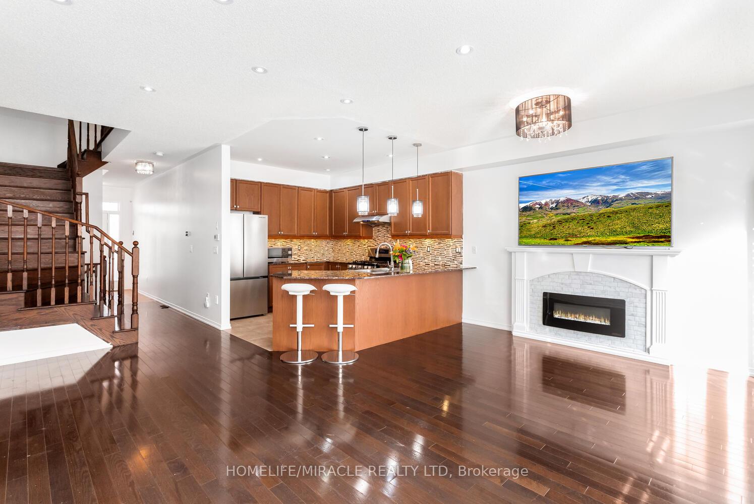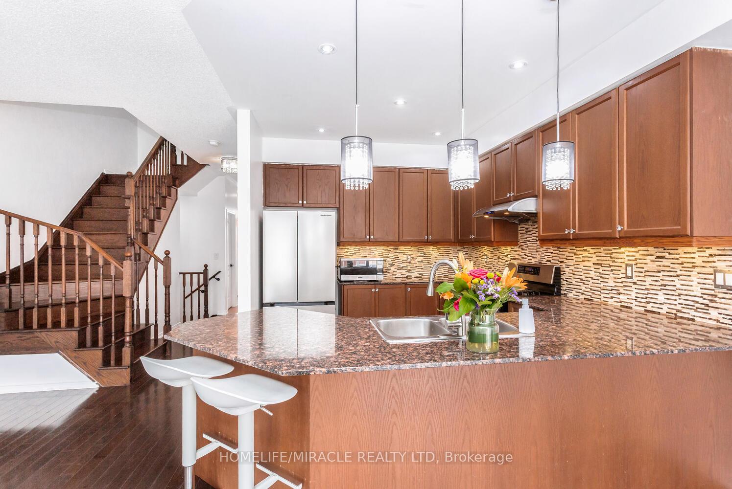 Welcome to this beautiful townhome in the highly sought-after Willmott neighbourhood, offering 1,600 sq ft of well-planned living space. This home provides parking for two vehicles plus visitor spots, and features an inviting open-concept design with stylish upgrades throughout. The kitchen showcases rich cabinetry, a backsplash, stainless steel appliances, stone countertops, and fabulous appliances. The bright living and dining area features hardwood flooring, upgraded lighting, and a soft, neutral color palette that creates a warm and welcoming feel. Upstairs, the primary suite offers a beautiful ensuite complete with a glass-enclosed shower, soaker tub, an sin vanity. Two additional bedrooms share a convenient main bath. The finished basement with fully functional kitchen, washroom and family room, with windows, provides excellent potential for in-law suite. With a main-floor powder room, and modern finishes throughout, this townhome delivers the perfect blend of comfort, style, and functionality.