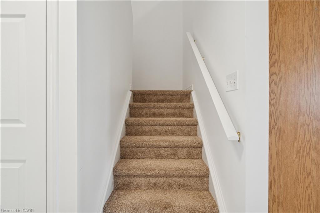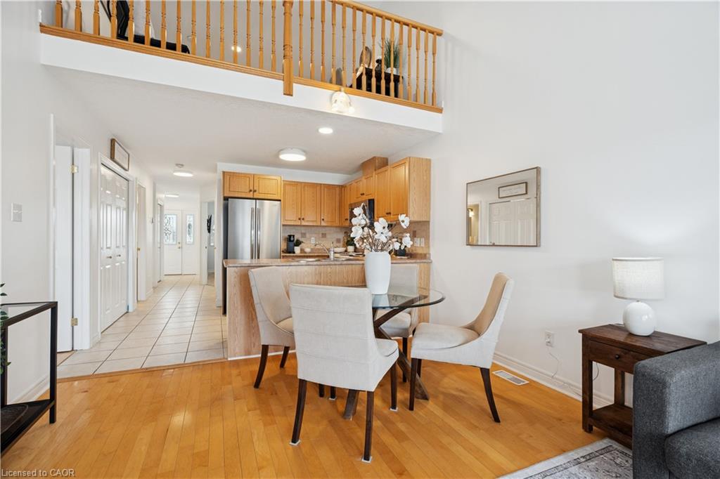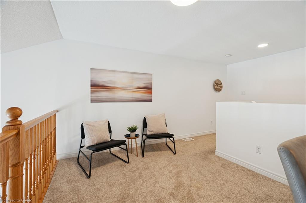 Looking for a freehold townhouse in Acton with no condo fees and walkable GO Train access? This beautifully maintained 1,384 sq ft bungaloft townhouse at 75 Doctor Moore Court offers the perfect blend of comfort, space, and smart lifestyle living in one of Acton’s most family-friendly neighbourhoods. Built in 2005 and located on a quiet court, this home features two spacious bedrooms on the main level, including a primary bedroom with semi-ensuite privileges, making it ideal for first-time buyers, downsizers, or commuters seeking main-floor living convenience. The open-concept living and dining room is highlighted by vaulted ceilings and an abundance of natural light, creating an airy and welcoming atmosphere rarely found in townhomes. The living room walks out to a private rear deck, perfect for summer barbecues or morning coffee overlooking your fenced backyard. The kitchen offers ample cabinetry, functional prep space, and newer appliances including fridge and microwave, while the newer washer and dryer provide peace of mind. Upstairs, a versatile loft overlooks the living room, offering an ideal work-from-home office, reading nook, or creative studio space. The finished basement expands your living space with a large recreation room, flexible bedroom nook, and laundry area, ideal for guests, hobbies, or extended family. The exterior offers exceptional curb appeal with a 2025 updated driveway, single-car garage, and total parking for two vehicles. Located steps to Wallace Street Park, Fairy Lake walking trails, golf courses, downtown Acton shops and restaurants, and within walking distance to the Acton GO Train with direct connections to Georgetown, Brampton, and Toronto, this home blends small-town charm with commuter convenience. If you’ve been searching for a move-in-ready freehold townhouse in Acton with finished basement, loft space, and no monthly fees, this is the opportunity you’ve been waiting for.