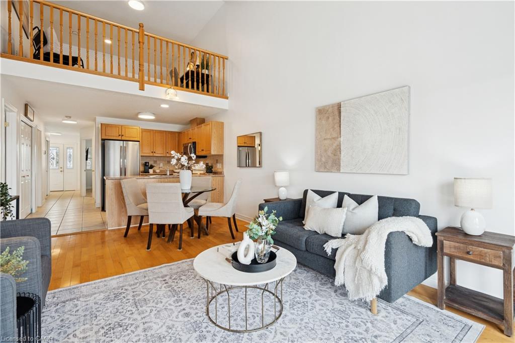 Looking for a freehold townhouse in Acton with no condo fees and walkable GO Train access? This beautifully maintained 1,384 sq ft bungaloft townhouse at 75 Doctor Moore Court offers the perfect blend of comfort, space, and smart lifestyle living in one of Acton’s most family-friendly neighbourhoods. Built in 2005 and located on a quiet court, this home features two spacious bedrooms on the main level, including a primary bedroom with semi-ensuite privileges, making it ideal for first-time buyers, downsizers, or commuters seeking main-floor living convenience. The open-concept living and dining room is highlighted by vaulted ceilings and an abundance of natural light, creating an airy and welcoming atmosphere rarely found in townhomes. The living room walks out to a private rear deck, perfect for summer barbecues or morning coffee overlooking your fenced backyard. The kitchen offers ample cabinetry, functional prep space, and newer appliances including fridge and microwave, while the newer washer and dryer provide peace of mind. Upstairs, a versatile loft overlooks the living room, offering an ideal work-from-home office, reading nook, or creative studio space. The finished basement expands your living space with a large recreation room, flexible bedroom nook, and laundry area, ideal for guests, hobbies, or extended family. The exterior offers exceptional curb appeal with a 2025 updated driveway, single-car garage, and total parking for two vehicles. Located steps to Wallace Street Park, Fairy Lake walking trails, golf courses, downtown Acton shops and restaurants, and within walking distance to the Acton GO Train with direct connections to Georgetown, Brampton, and Toronto, this home blends small-town charm with commuter convenience. If you’ve been searching for a move-in-ready freehold townhouse in Acton with finished basement, loft space, and no monthly fees, this is the opportunity you’ve been waiting for.