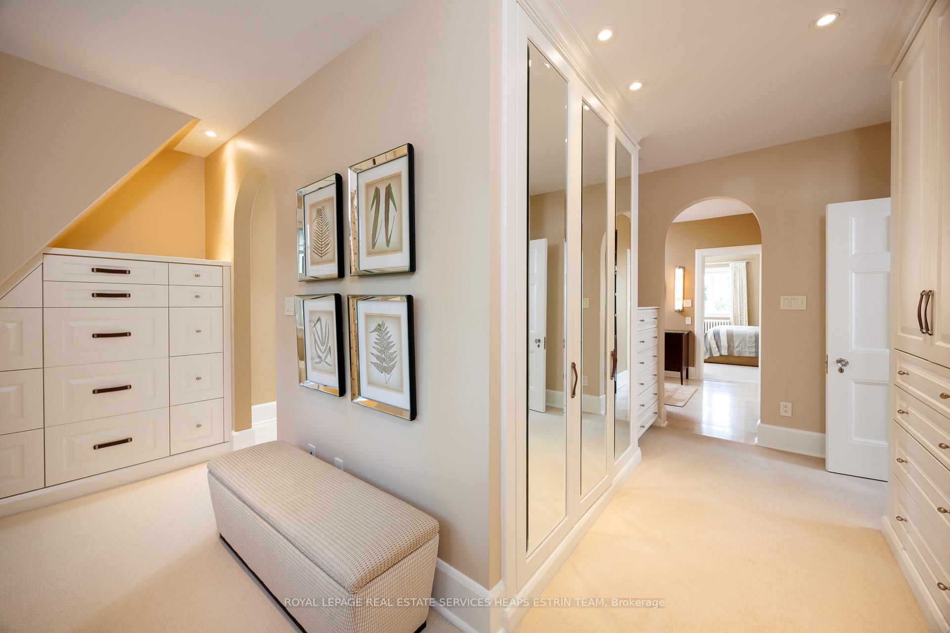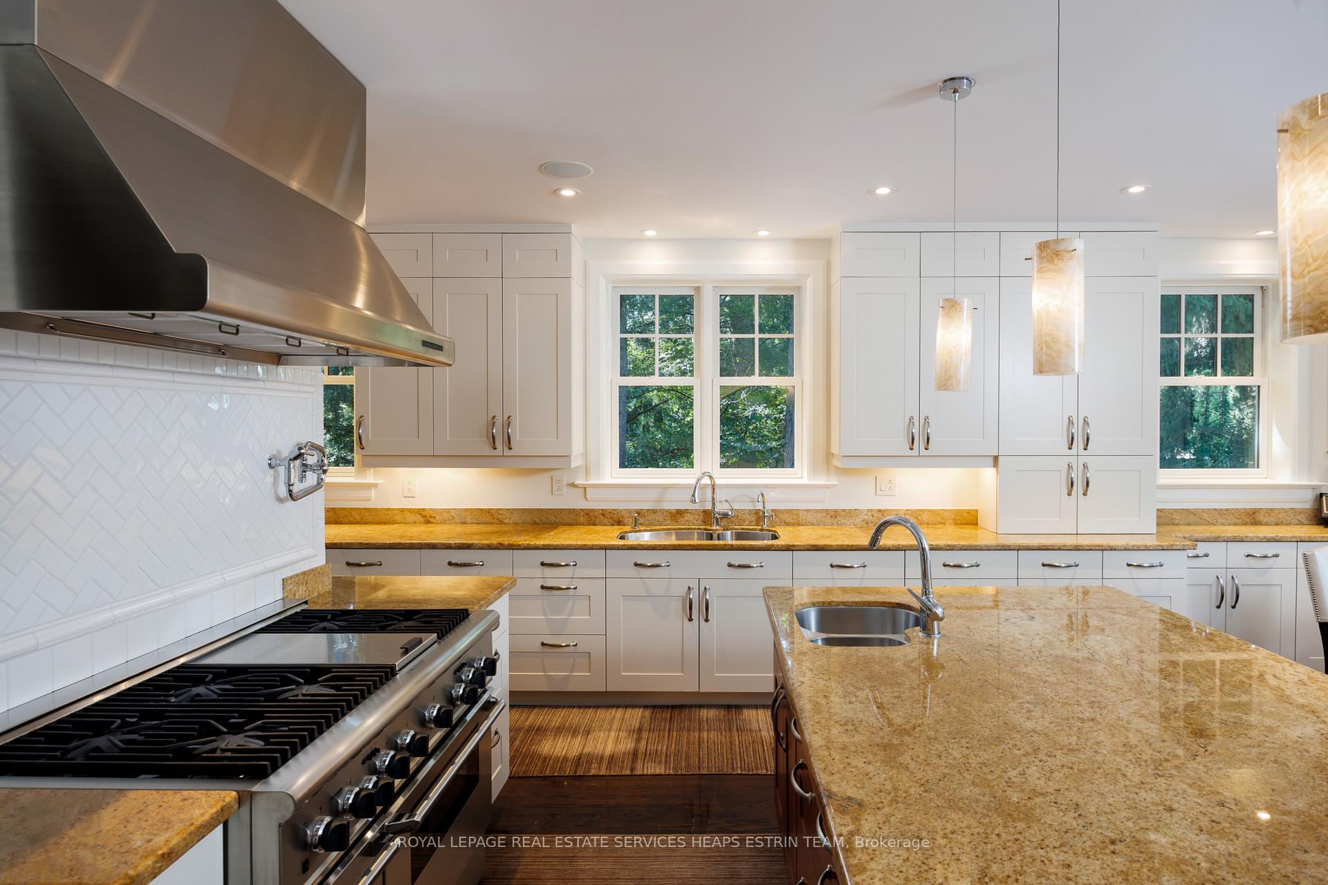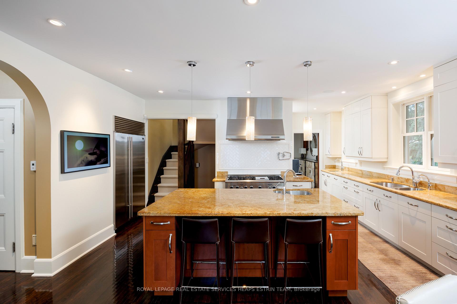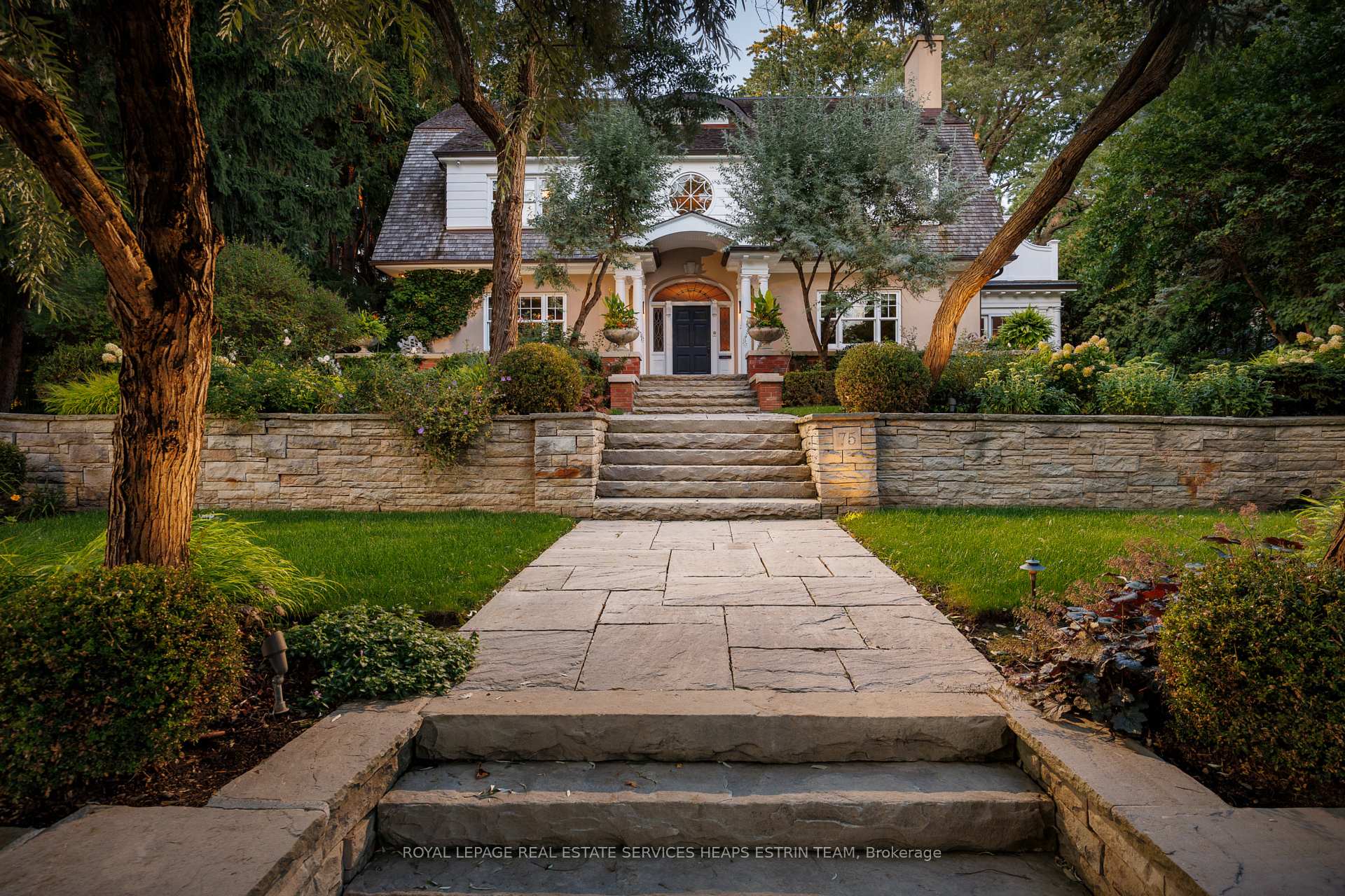 A landmark estate in St. George’s Park. Privately set on one of Guelph’s most prestigious streets, 75 Queen Street is a legacy residence of rare scale and architectural significance. This fully reimagined Dutch Colonial estate sits elevated on an 89 x 264-foot lot, surrounded by professionally designed grounds that have been meticulously cultivated and maintained for over 25 years. The exterior offers resort-quality living, with a saltwater pool, wood-burning fireplace, outdoor shower, and dedicated pool bathroom, framed by mature trees and layered stonework. The sense of privacy and serenity is immediate. Inside, the home spans over 5,700 square feet of finished space and follows a classic centre-hall plan with gracious flow and custom detail throughout. The main level includes a grand great room, formal dining room, glass-enclosed sunroom, chef’s kitchen with granite surfaces and premium appliances, and a private office. Upstairs, the primary suite features two fireplaces, a walk-in closet, a five-piece ensuite, and a private balcony with hot tub. The third floor offers additional bedrooms, a large family room with wet bar, and elevated views of the gardens and city skyline. The fully finished lower level includes radiant heated floors, a home theatre, cigar lounge with ventilation, wine cellar, kitchenette, and full laundry. A detached garage and separate outbuilding provide parking for four vehicles, a sauna, a full bath, and two upper lofts that are ideal for guest accommodation, a studio, or a wellness retreat. In total, there is parking for 14 vehicles. All buildings are security-monitored and equipped with heat sensors, ensuring peace of mind and enhanced safety throughout the estate. Just steps to St. George’s Park and within walking distance to downtown, the GO Station, and top schools, this property presents a rare opportunity to own one of Guelph’s most iconic estates. Timeless, private, and built without compromise.