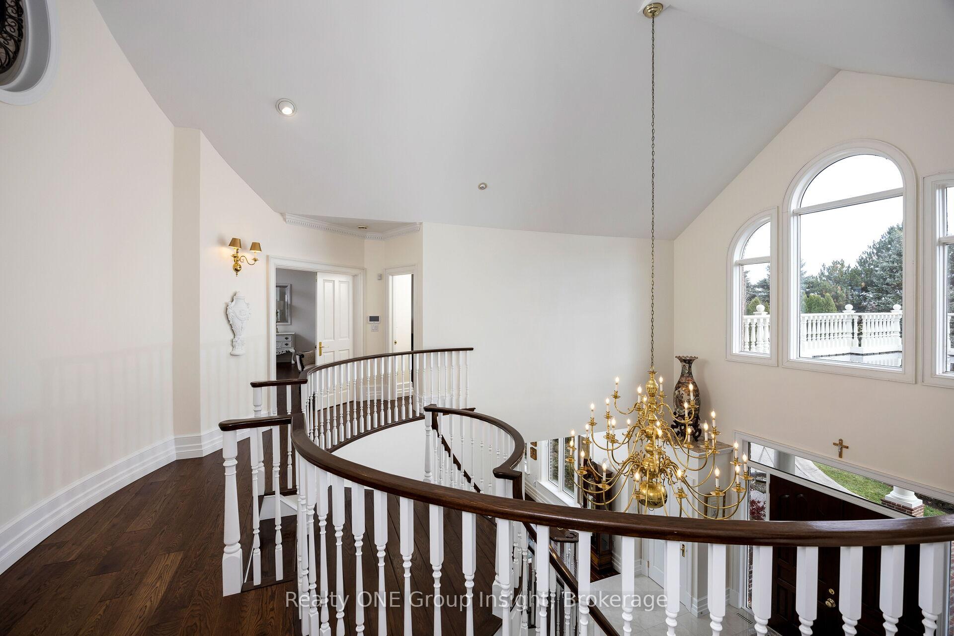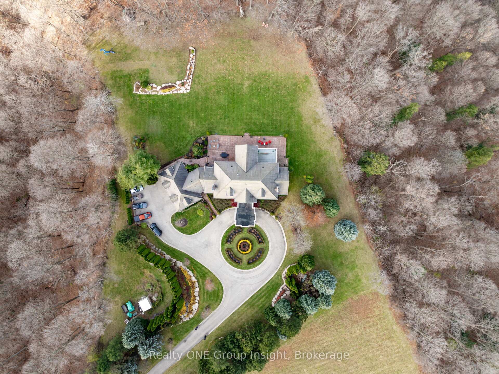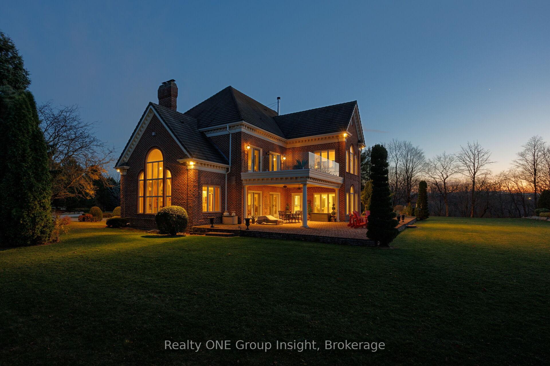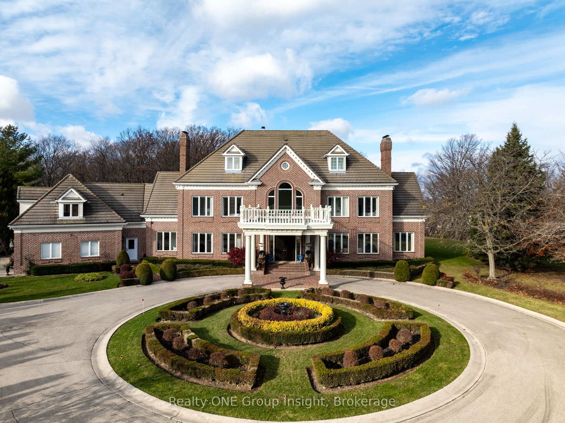 Perched atop the Stoney Creek Escarpment and situated on a 16-acre peninsula, this stunning Georgian-style estate offers over 7,000 square feet of above-grade living space. Upon entering through the private gates and driving along the scenic driveway, you’ll pass formal gardens before arriving at the impressive Porte Cochere. Stepping through the front doors, you’re greeted by dual staircases and soaring 28-foot ceilings, creating an immediate sense of grandeur. The open, flowing floor plan seamlessly connects all formal rooms to the foyer. For professional needs, the oak-paneled office is conveniently located just off the foyer. The modern kitchen is equipped with high-end Thermador and SubZero appliances, perfect for both everyday meals and entertaining. At the rear of the home, the family area features expansive windows that offer breathtaking city views year-round. The luxurious primary suite includes a spa-like ensuite designed to indulge the homeowner, and a large balcony provides an uninterrupted view of the city. In addition to the Primary Suite, the second floor offers three additional spacious bedrooms, each with its own ensuite bathroom. Above the garage, the bonus room offers an ideal space for a teen retreat or in-law suite. This self-contained area includes a 3-piece ensuite and a kitchenette. The lower level features a gym and sauna, providing the perfect space to meet your fitness and relaxation needs. There’s also a vast unfinished area providing an open canvas for your personal preferences. For a comprehensive list of features, please get in touch today!