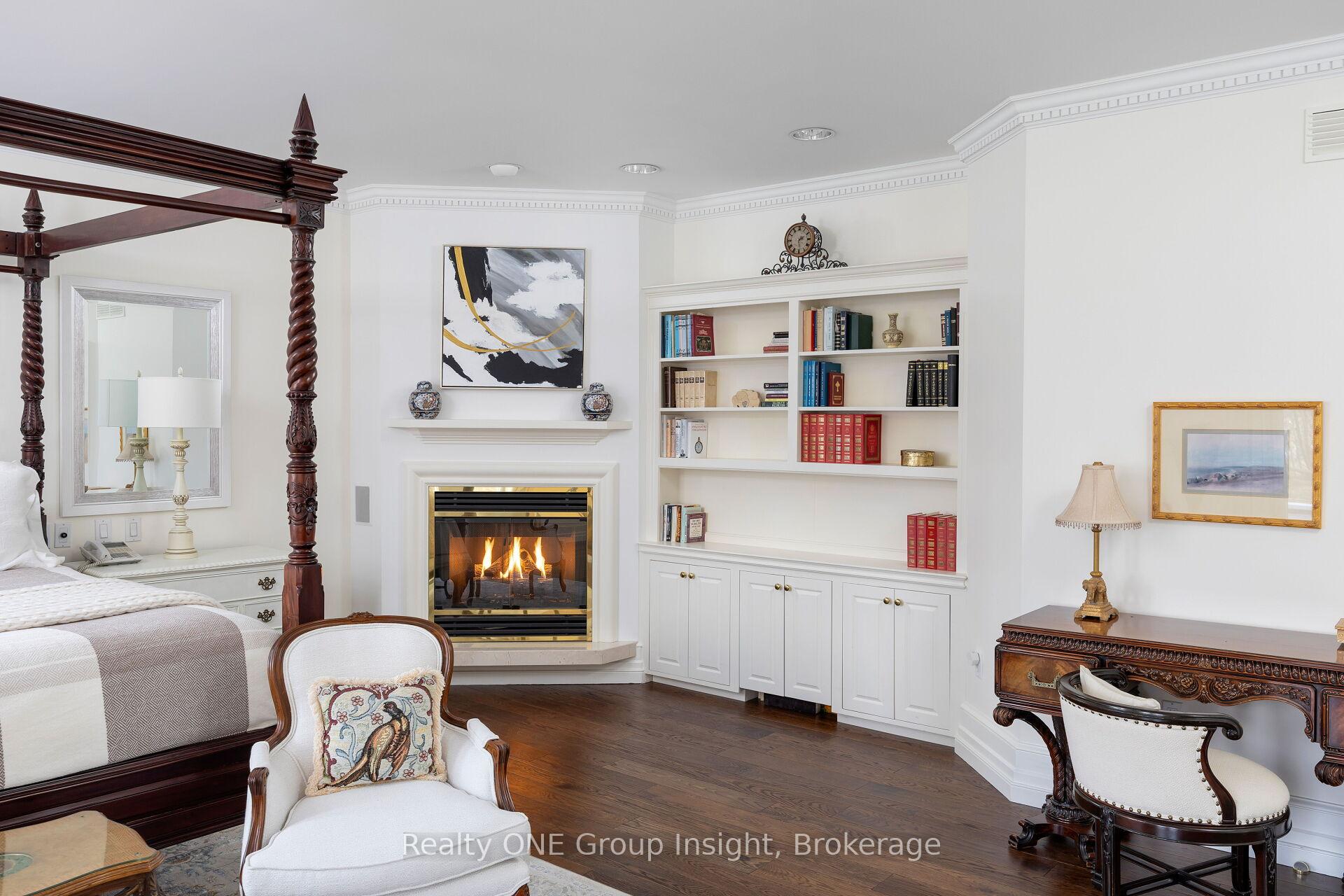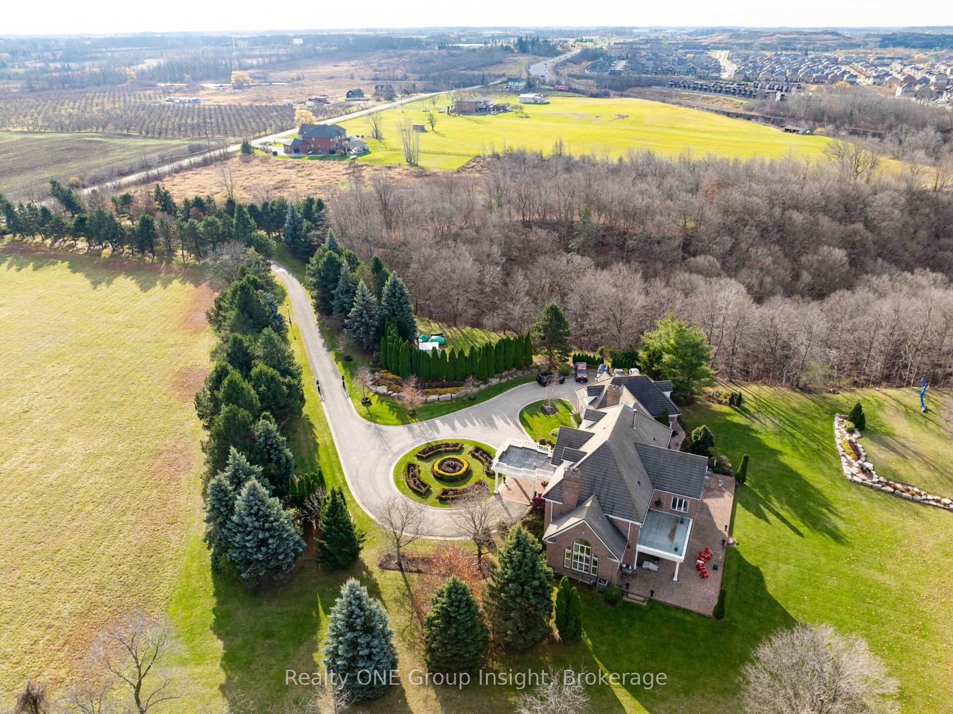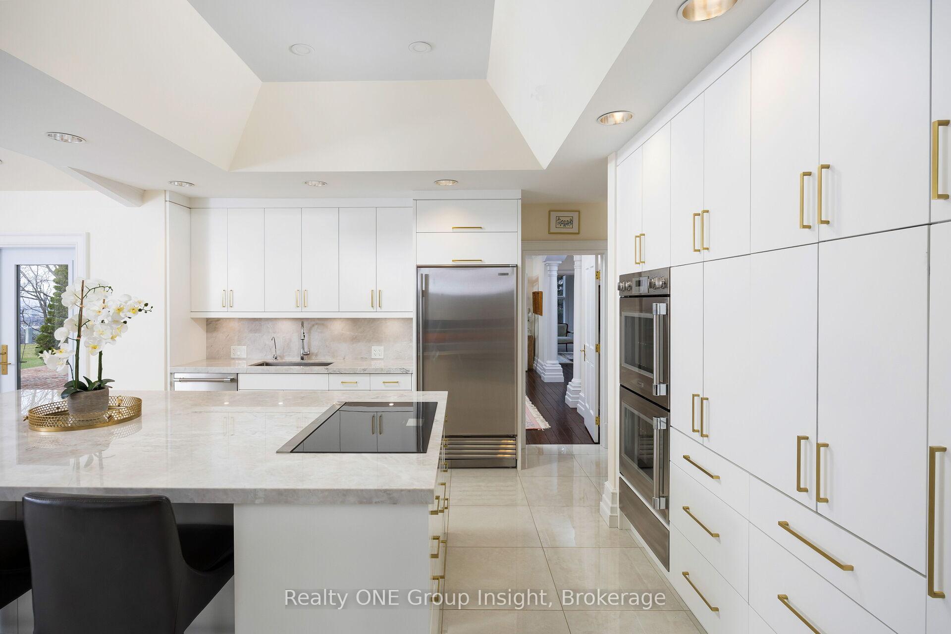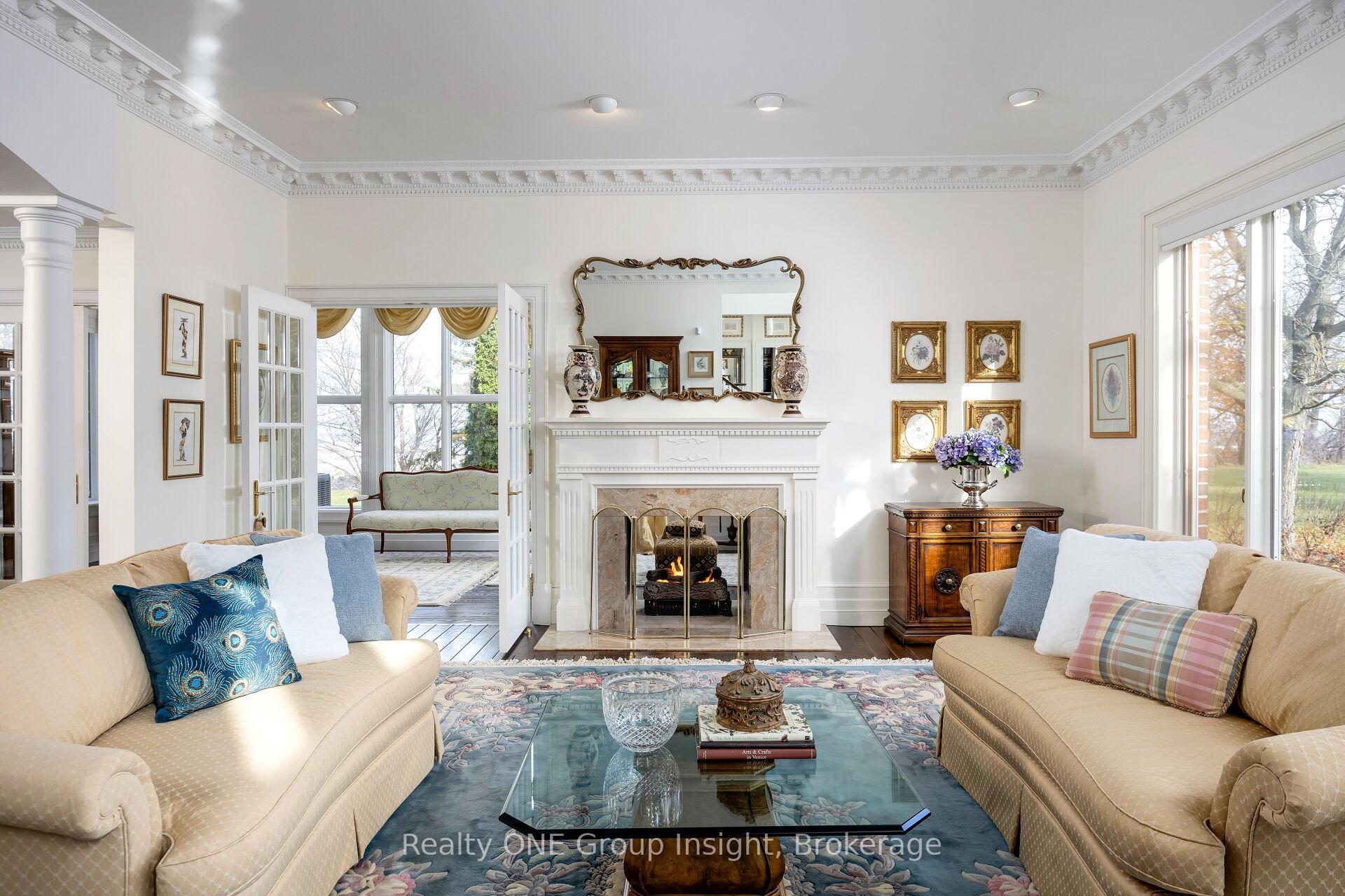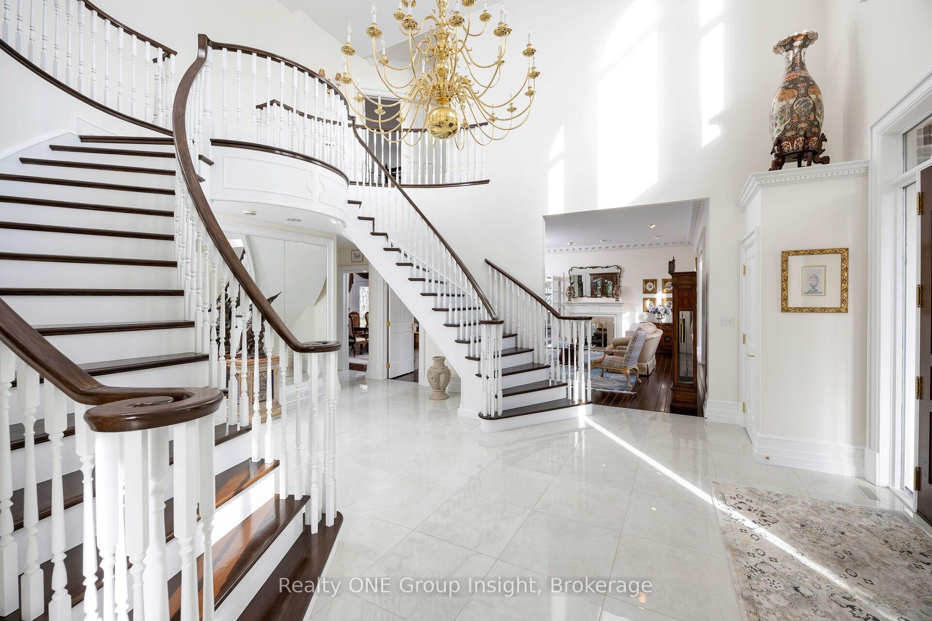 Perched atop the Stoney Creek Escarpment and situated on a 16-acre peninsula, this stunning Georgian-style estate offers over 7,000 square feet of above-grade living space. Upon entering through the private gates and driving along the scenic driveway, you’ll pass formal gardens before arriving at the impressive Porte Cochere. Stepping through the front doors, you’re greeted by dual staircases and soaring 28-foot ceilings, creating an immediate sense of grandeur. The open, flowing floor plan seamlessly connects all formal rooms to the foyer. For professional needs, the oak-paneled office is conveniently located just off the foyer. The modern kitchen is equipped with high-end Thermador and SubZero appliances, perfect for both everyday meals and entertaining. At the rear of the home, the family area features expansive windows that offer breathtaking city views year-round. The luxurious primary suite includes a spa-like ensuite designed to indulge the homeowner, and a large balcony provides an uninterrupted view of the city. In addition to the Primary Suite, the second floor offers three additional spacious bedrooms, each with its own ensuite bathroom. Above the garage, the bonus room offers an ideal space for a teen retreat or in-law suite. This self-contained area includes a 3-piece ensuite and a kitchenette. The lower level features a gym and sauna, providing the perfect space to meet your fitness and relaxation needs. There’s also a vast unfinished area providing an open canvas for your personal preferences. For a comprehensive list of features, please get in touch today!