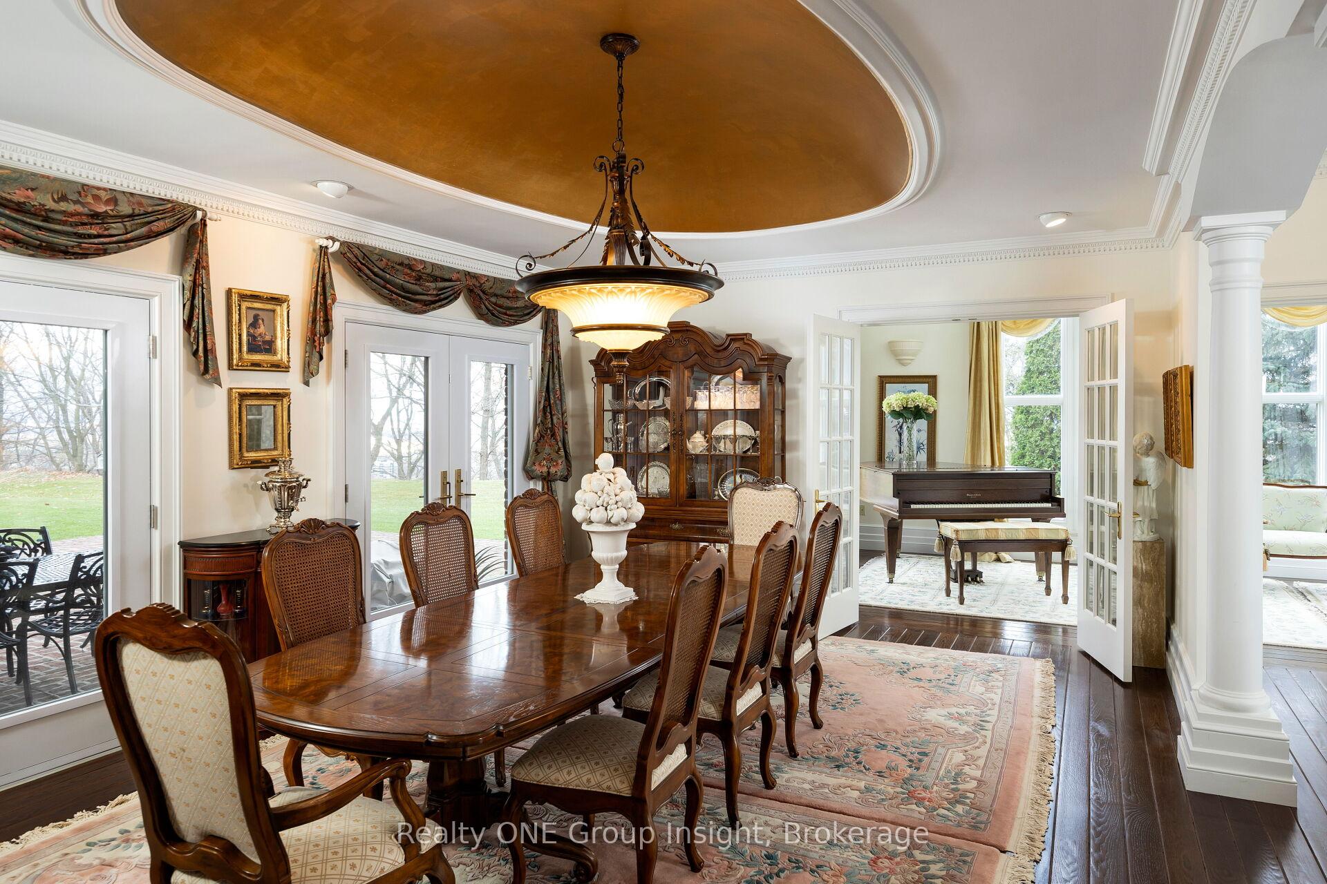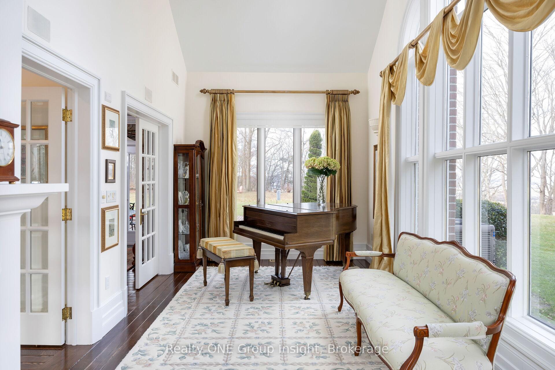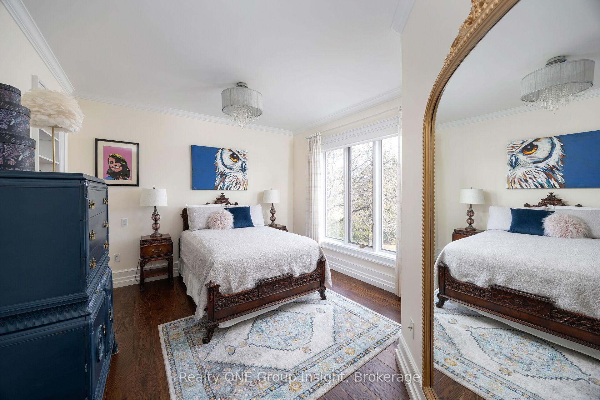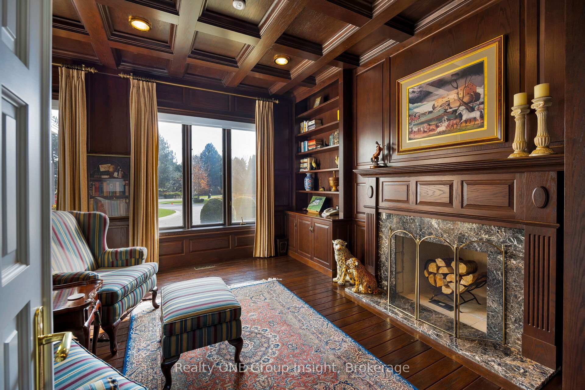 Perched atop the Stoney Creek Escarpment and situated on a 16-acre peninsula, this stunning Georgian-style estate offers over 7,000 square feet of above-grade living space. Upon entering through the private gates and driving along the scenic driveway, you’ll pass formal gardens before arriving at the impressive Porte Cochere. Stepping through the front doors, you’re greeted by dual staircases and soaring 28-foot ceilings, creating an immediate sense of grandeur. The open, flowing floor plan seamlessly connects all formal rooms to the foyer. For professional needs, the oak-paneled office is conveniently located just off the foyer. The modern kitchen is equipped with high-end Thermador and SubZero appliances, perfect for both everyday meals and entertaining. At the rear of the home, the family area features expansive windows that offer breathtaking city views year-round. The luxurious primary suite includes a spa-like ensuite designed to indulge the homeowner, and a large balcony provides an uninterrupted view of the city. In addition to the Primary Suite, the second floor offers three additional spacious bedrooms, each with its own ensuite bathroom. Above the garage, the bonus room offers an ideal space for a teen retreat or in-law suite. This self-contained area includes a 3-piece ensuite and a kitchenette. The lower level features a gym and sauna, providing the perfect space to meet your fitness and relaxation needs. There’s also a vast unfinished area providing an open canvas for your personal preferences. For a comprehensive list of features, please get in touch today!