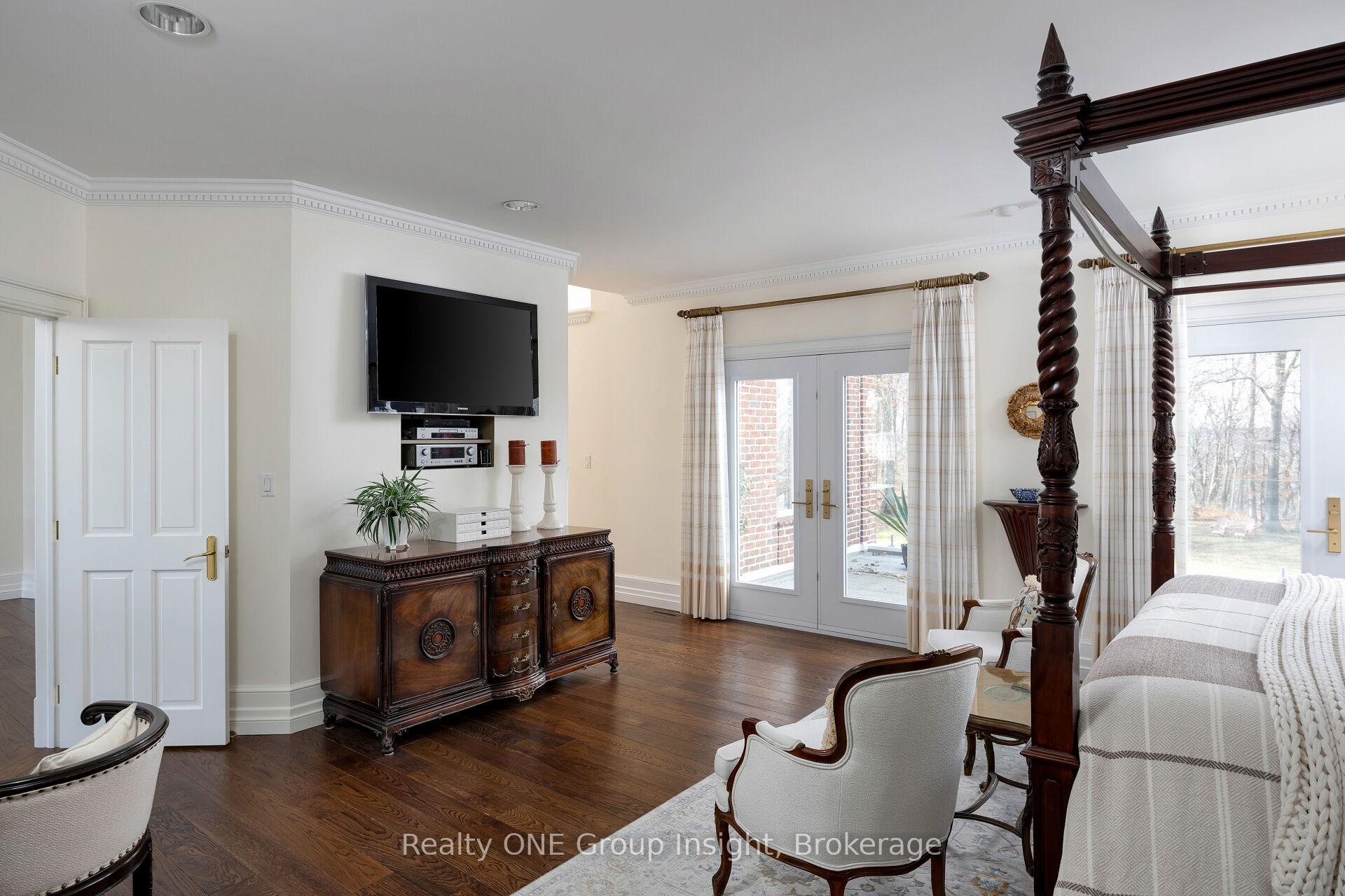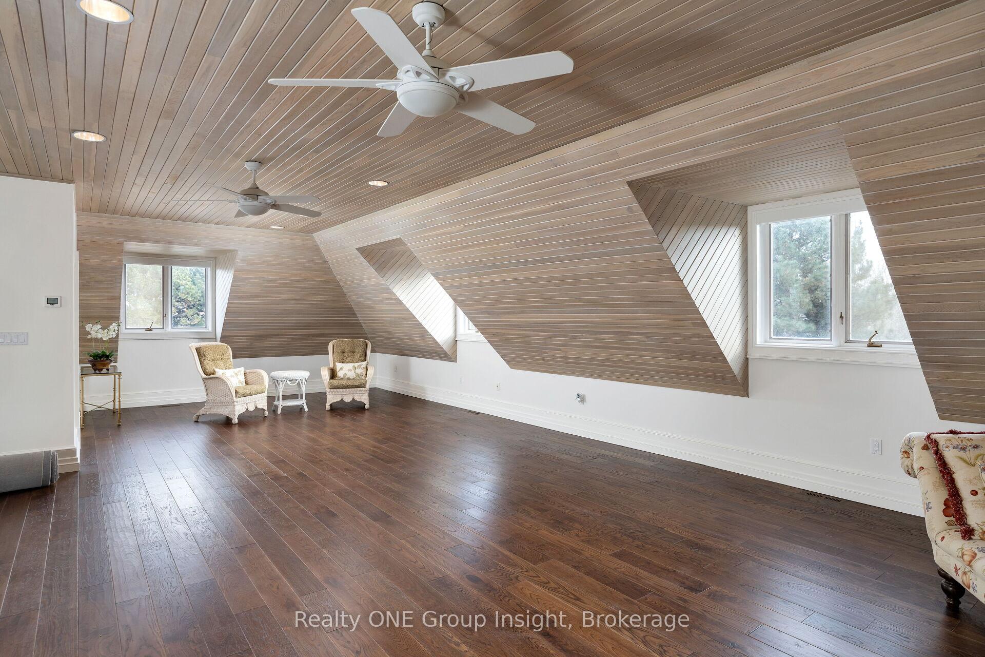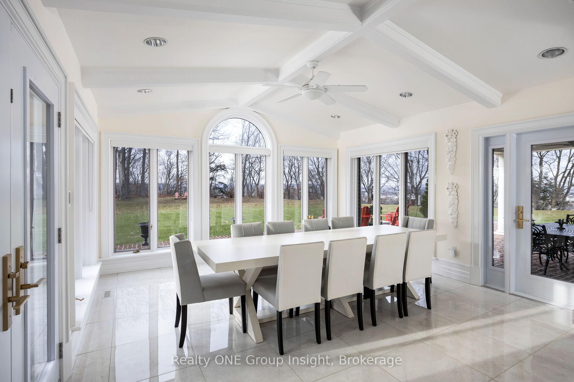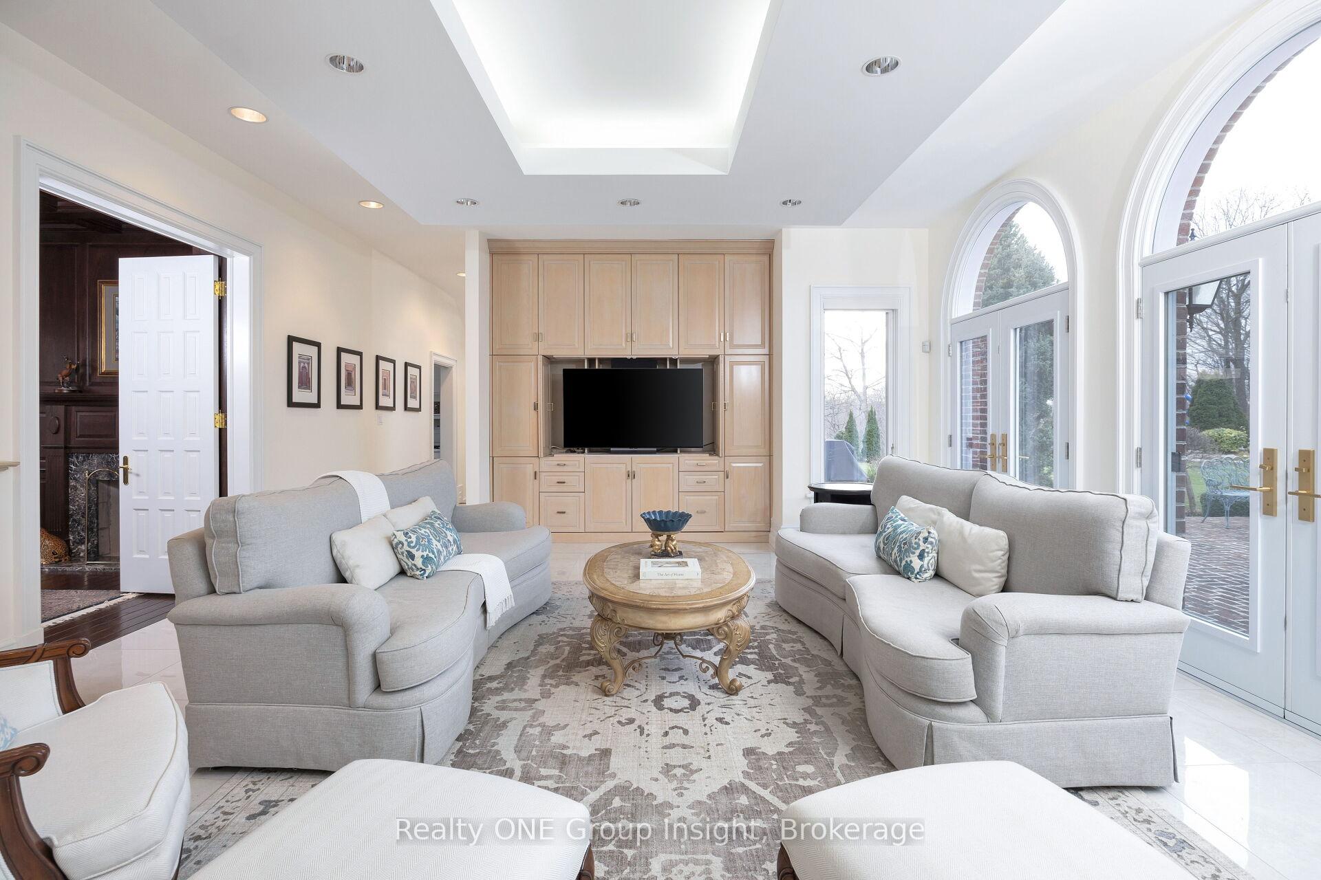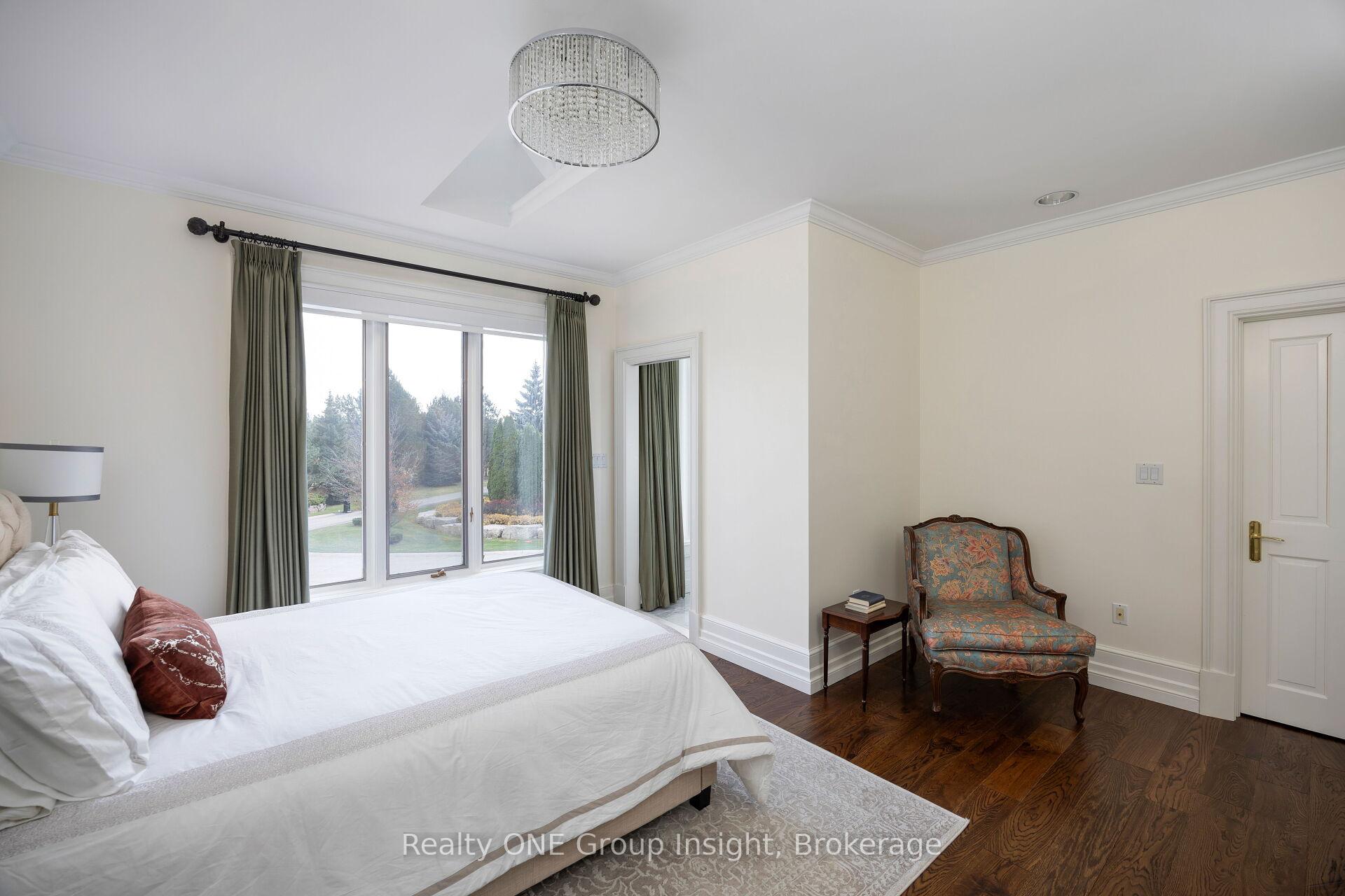 Perched atop the Stoney Creek Escarpment and situated on a 16-acre peninsula, this stunning Georgian-style estate offers over 7,000 square feet of above-grade living space. Upon entering through the private gates and driving along the scenic driveway, you’ll pass formal gardens before arriving at the impressive Porte Cochere. Stepping through the front doors, you’re greeted by dual staircases and soaring 28-foot ceilings, creating an immediate sense of grandeur. The open, flowing floor plan seamlessly connects all formal rooms to the foyer. For professional needs, the oak-paneled office is conveniently located just off the foyer. The modern kitchen is equipped with high-end Thermador and SubZero appliances, perfect for both everyday meals and entertaining. At the rear of the home, the family area features expansive windows that offer breathtaking city views year-round. The luxurious primary suite includes a spa-like ensuite designed to indulge the homeowner, and a large balcony provides an uninterrupted view of the city. In addition to the Primary Suite, the second floor offers three additional spacious bedrooms, each with its own ensuite bathroom. Above the garage, the bonus room offers an ideal space for a teen retreat or in-law suite. This self-contained area includes a 3-piece ensuite and a kitchenette. The lower level features a gym and sauna, providing the perfect space to meet your fitness and relaxation needs. There’s also a vast unfinished area providing an open canvas for your personal preferences. For a comprehensive list of features, please get in touch today!