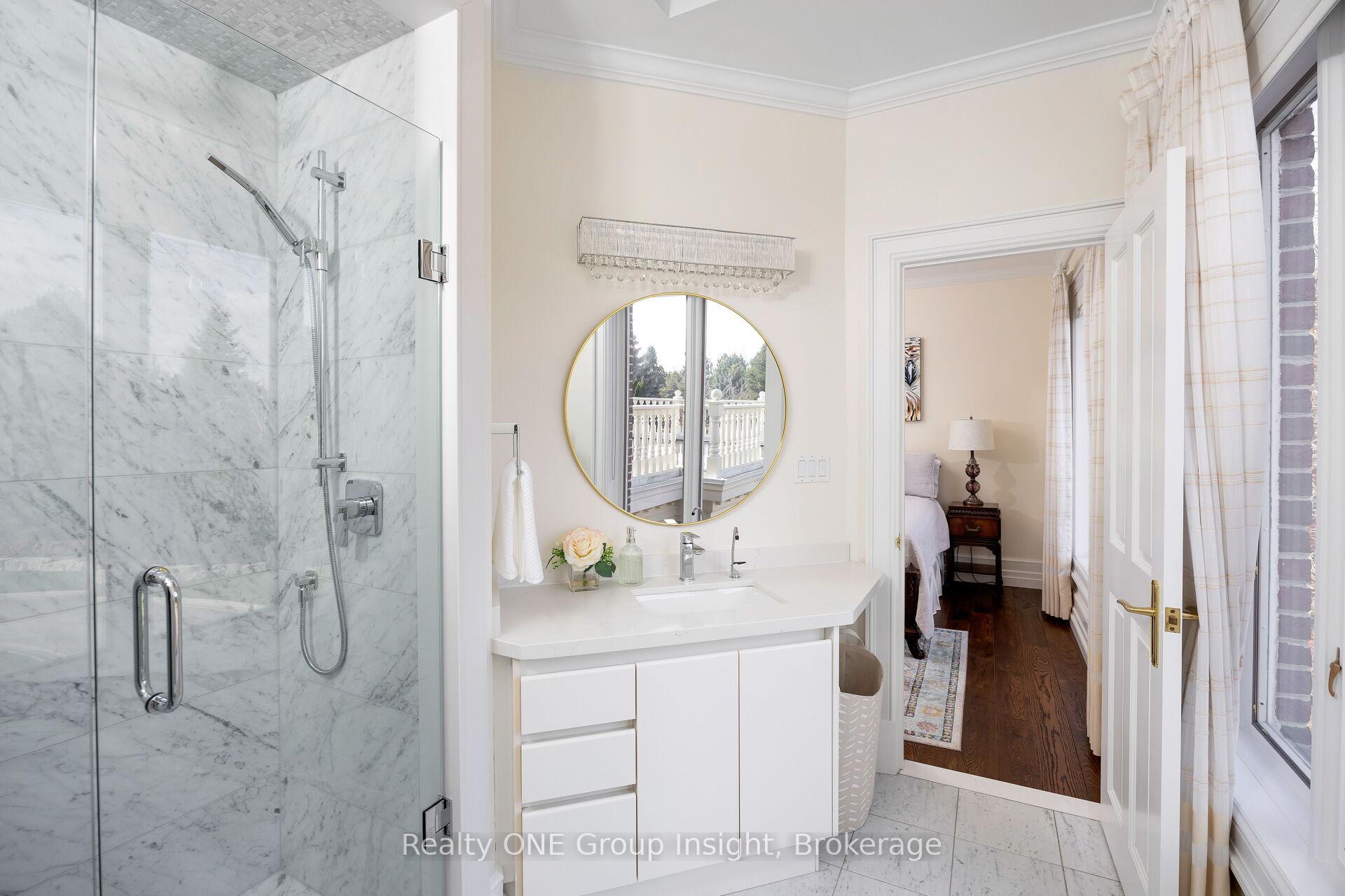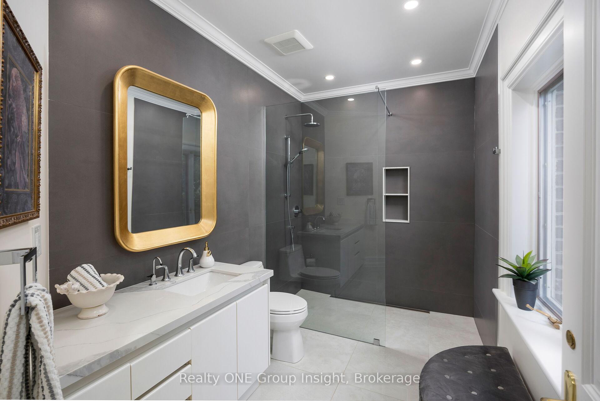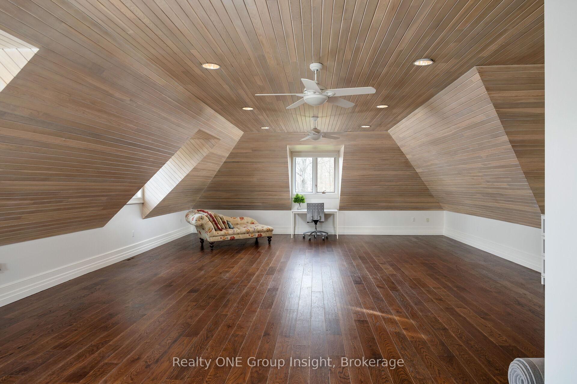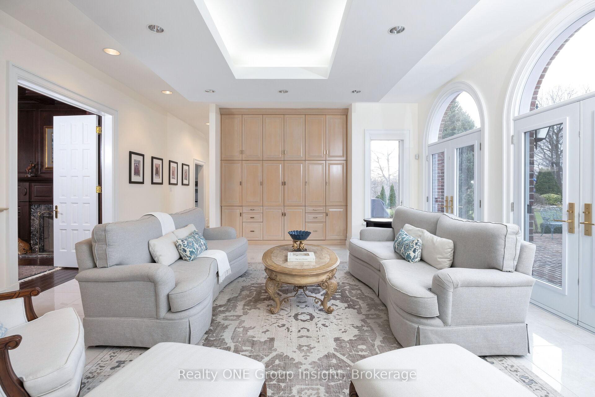 Perched atop the Stoney Creek Escarpment and situated on a 16-acre peninsula, this stunning Georgian-style estate offers over 7,000 square feet of above-grade living space. Upon entering through the private gates and driving along the scenic driveway, you’ll pass formal gardens before arriving at the impressive Porte Cochere. Stepping through the front doors, you’re greeted by dual staircases and soaring 28-foot ceilings, creating an immediate sense of grandeur. The open, flowing floor plan seamlessly connects all formal rooms to the foyer. For professional needs, the oak-paneled office is conveniently located just off the foyer. The modern kitchen is equipped with high-end Thermador and SubZero appliances, perfect for both everyday meals and entertaining. At the rear of the home, the family area features expansive windows that offer breathtaking city views year-round. The luxurious primary suite includes a spa-like ensuite designed to indulge the homeowner, and a large balcony provides an uninterrupted view of the city. In addition to the Primary Suite, the second floor offers three additional spacious bedrooms, each with its own ensuite bathroom. Above the garage, the bonus room offers an ideal space for a teen retreat or in-law suite. This self-contained area includes a 3-piece ensuite and a kitchenette. The lower level features a gym and sauna, providing the perfect space to meet your fitness and relaxation needs. There’s also a vast unfinished area providing an open canvas for your personal preferences. For a comprehensive list of features, please get in touch today!
