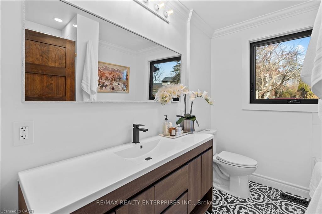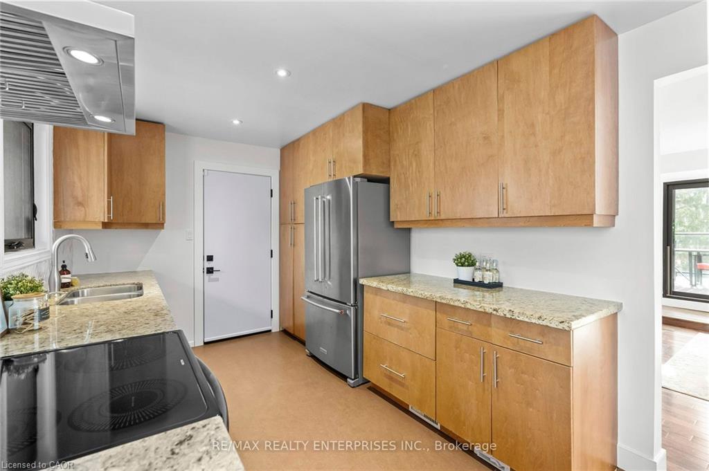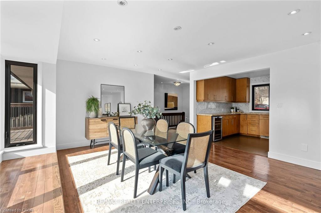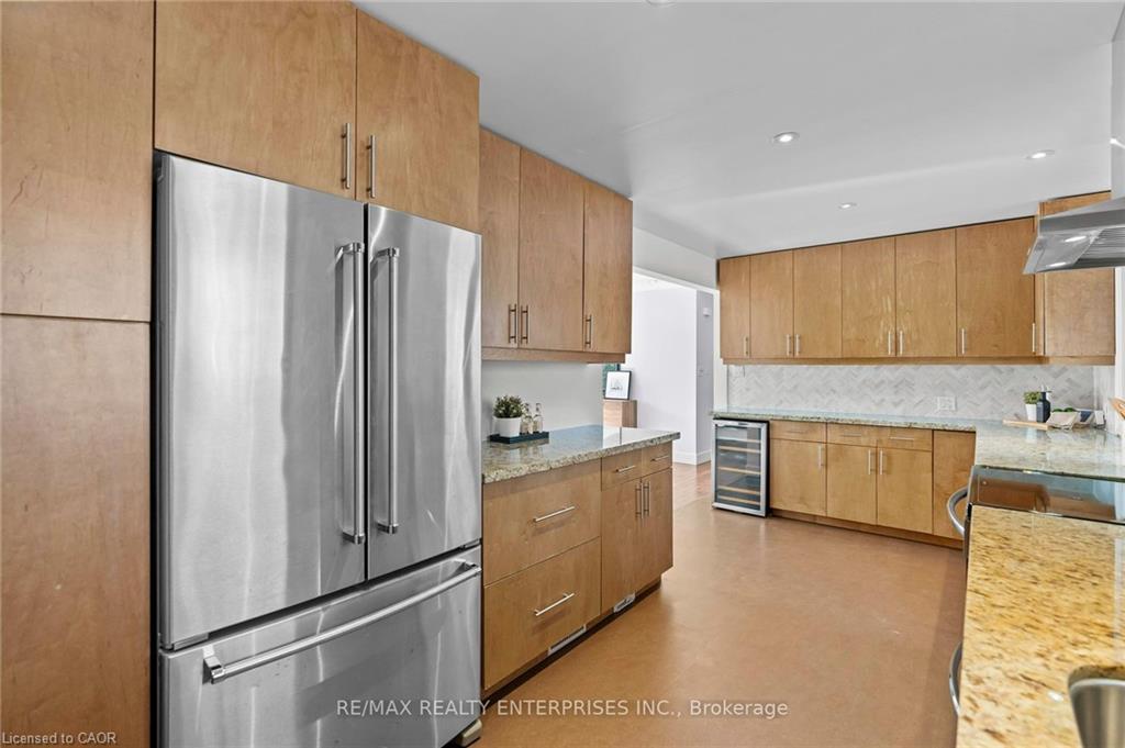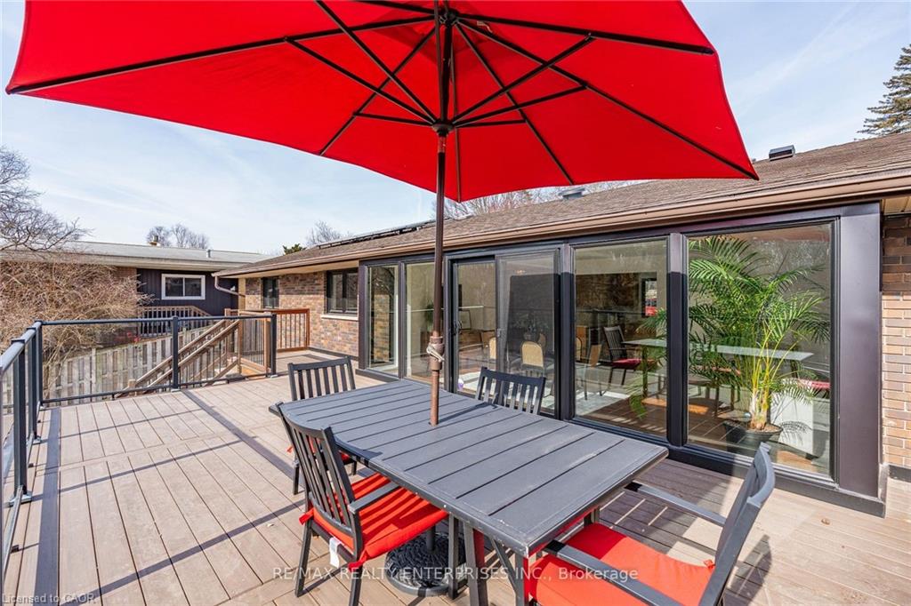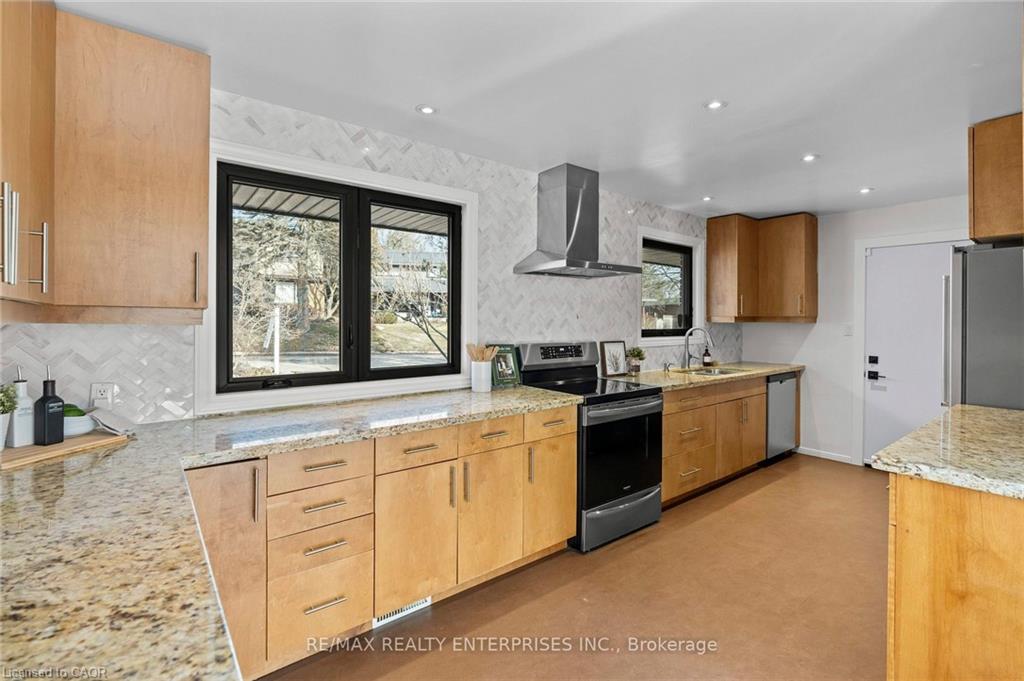 Inside, the bright and spacious layout features hardwood floors and NEW oversized picture windows and doors, providing breathtaking ravine views. The gourmet kitchen boasts granite countertop and ample cabinetry. The main level includes three bedrooms and a renovated 4-piece main bath with a glass shower and a separate soaker tub.The fully finished walkout basement,