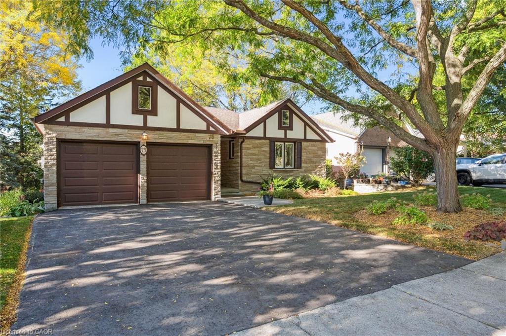Welcome to 75 Shadybrook Crescent – a charming Tudor-style bungalow nestled in the highly desirable Kortright West neighbourhood, just steps from Preservation Park and its incredible trail system! With over 2,600 sq ft of finished living space, including a walk-out lower level, this 3+1 bedroom, 3-bathroom home offers both character and flexibility for a variety of lifestyles. The main floor features hardwood flooring and an open-concept living and dining area centred around a stunning full-height stone fireplace. Three spacious bedrooms and two full bathrooms make everyday living comfortable and functional. Downstairs, the finished walk-out lower level adds even more opportunity. With a second kitchen, full bathroom, large recreation room with its own fireplace, and a fourth bedroom, it’s an ideal setup for multi-generational living or mortgage helper. Outside, the backyard provides shade and privacy under a canopy of mature trees – perfect for relaxing or outdoor entertaining. An attached garage and double driveway add convenience, and commuting is a breeze with fast access to the Hanlon. Lovingly maintained and move-in ready, this home gives you the flexibility to enjoy it as-is and update at your own pace. Settle in and soak up fall in one of Guelph’s most nature-connected neighbourhoods!
