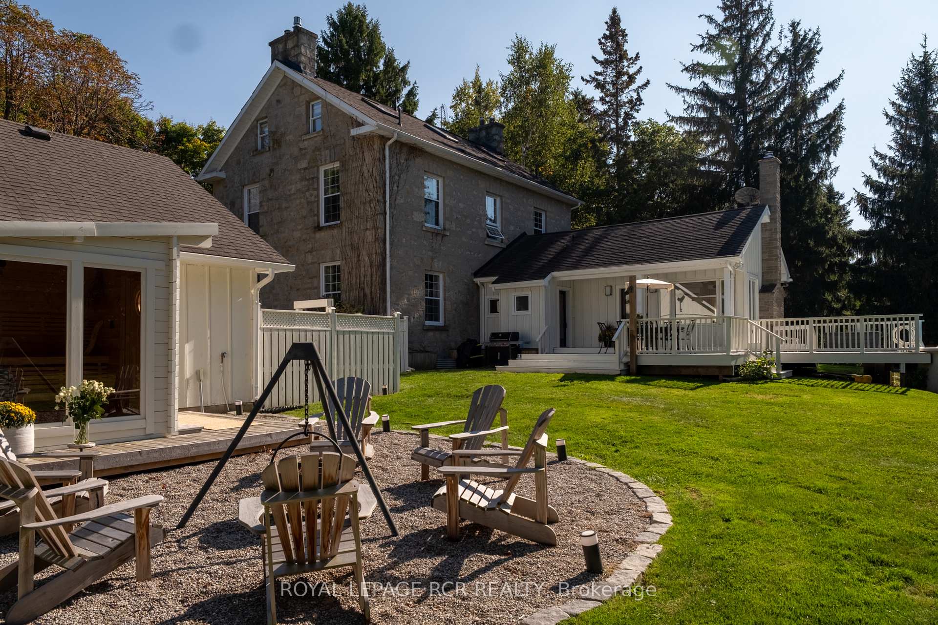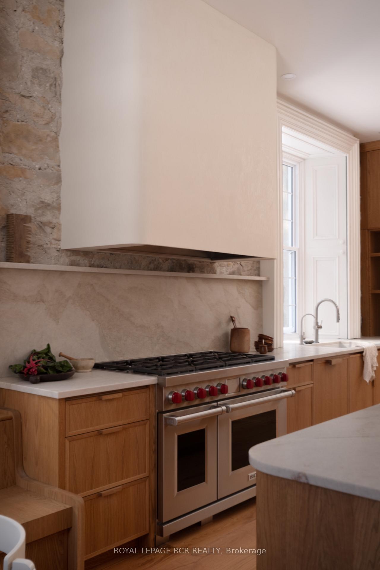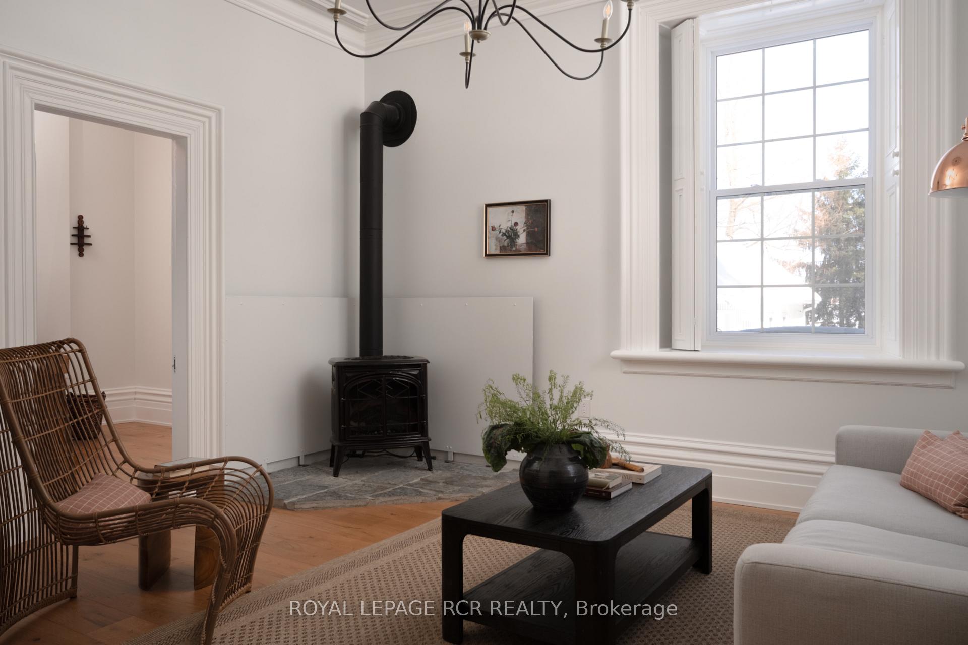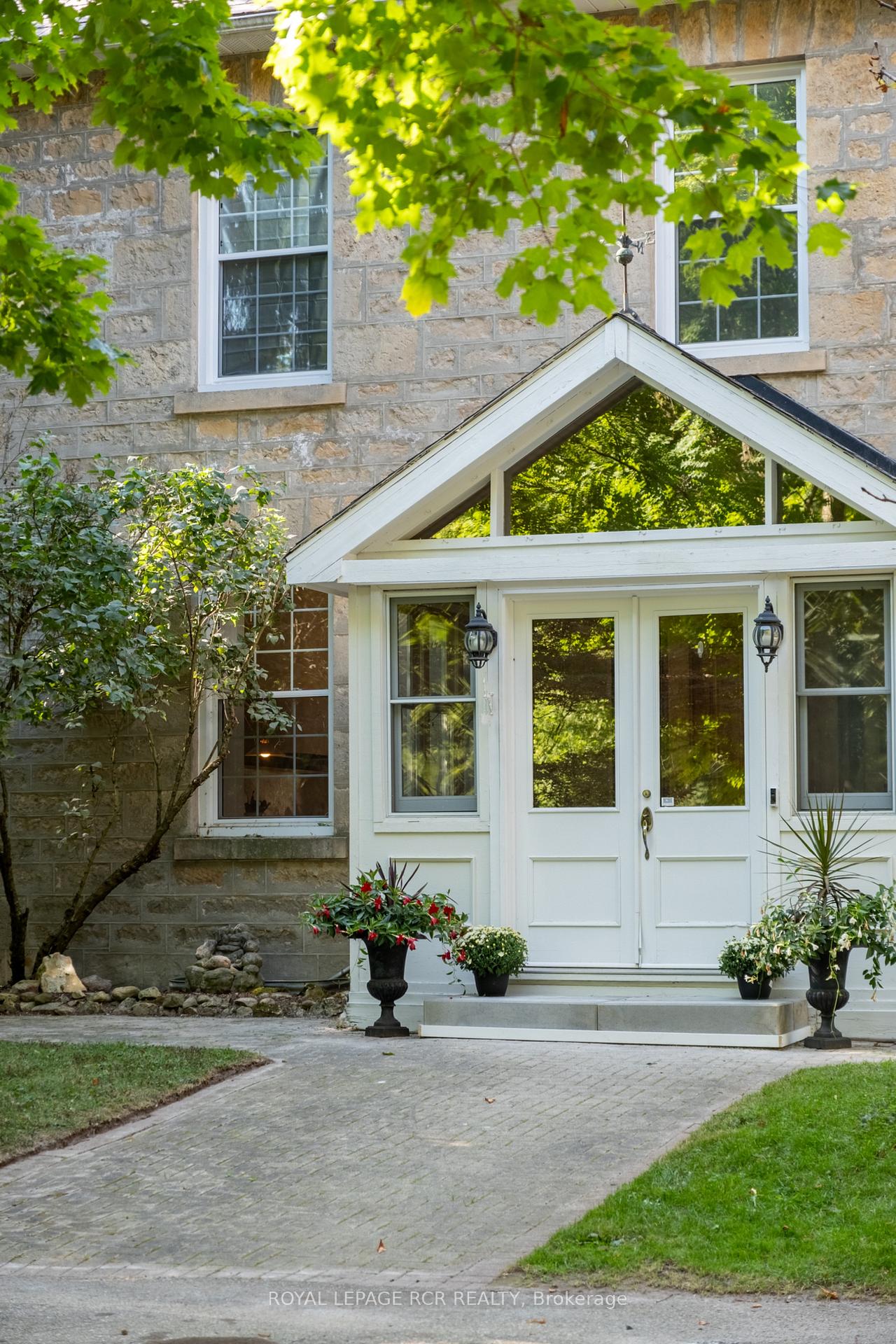 Historic soul meets a high-design heartbeat. Welcome to Stonecrop, an iconic 1857 stone manor reimagined as a warm, soulful sanctuary. Just outside of Elora, set on nearly 10 private acres at the end of a dramatic tree-lined driveway, this is a rare dialogue between historic provenance and refined organic luxury. Inside, soaring 12-foot ceilings, original plaster medallions, and dramatic stone walls create an inviting, layered atmosphere. At the heart of the home, a show-stopping kitchen, recently featured in Architectural Digest (!!!), anchors daily life and entertaining. Rooted in timeless design, it blends heritage architecture with modern precision through custom wood cabinetry, integrated top-tier appliances, and natural materials in balance. The living and dining areas continue the story, where a stone fireplace is set beneath vaulted ceilings, and skylights that flood the space with light. The main level also offers a family room, dreamy private office, and magazine worthy powder room. Upstairs, 5 spacious bedrooms span 2 levels, each defined by natural light and quiet luxury. The second floor features wide-plank wood flooring, 3 large bedrooms, and a beautifully appointed 4-piece bath. The third floor is fully finished with vaulted ceilings, exposed beams, 2 additional bedrooms, a sitting area, and a 3-piece bath. The partially finished basement offers in-law suite potential with a large bedroom, kitchenette rough-in, 4-piece bath, and separate entrance. Geothermal heating supports the home with modern efficiency. Outdoors, a heated above-ground pool, outdoor sauna, fire pit lounge, and outdoor pizza kitchen set the tone for unforgettable summers. An orchard, gardens, and private trails wind through nearly 10 acres of countryside. The impressive 58-foot detached garage includes a dedicated home gym and ample space for cars, toys, and equipment, completing this private country compound. AD-worthy interiors. Expansive acreage. Stonecrop is iconic.