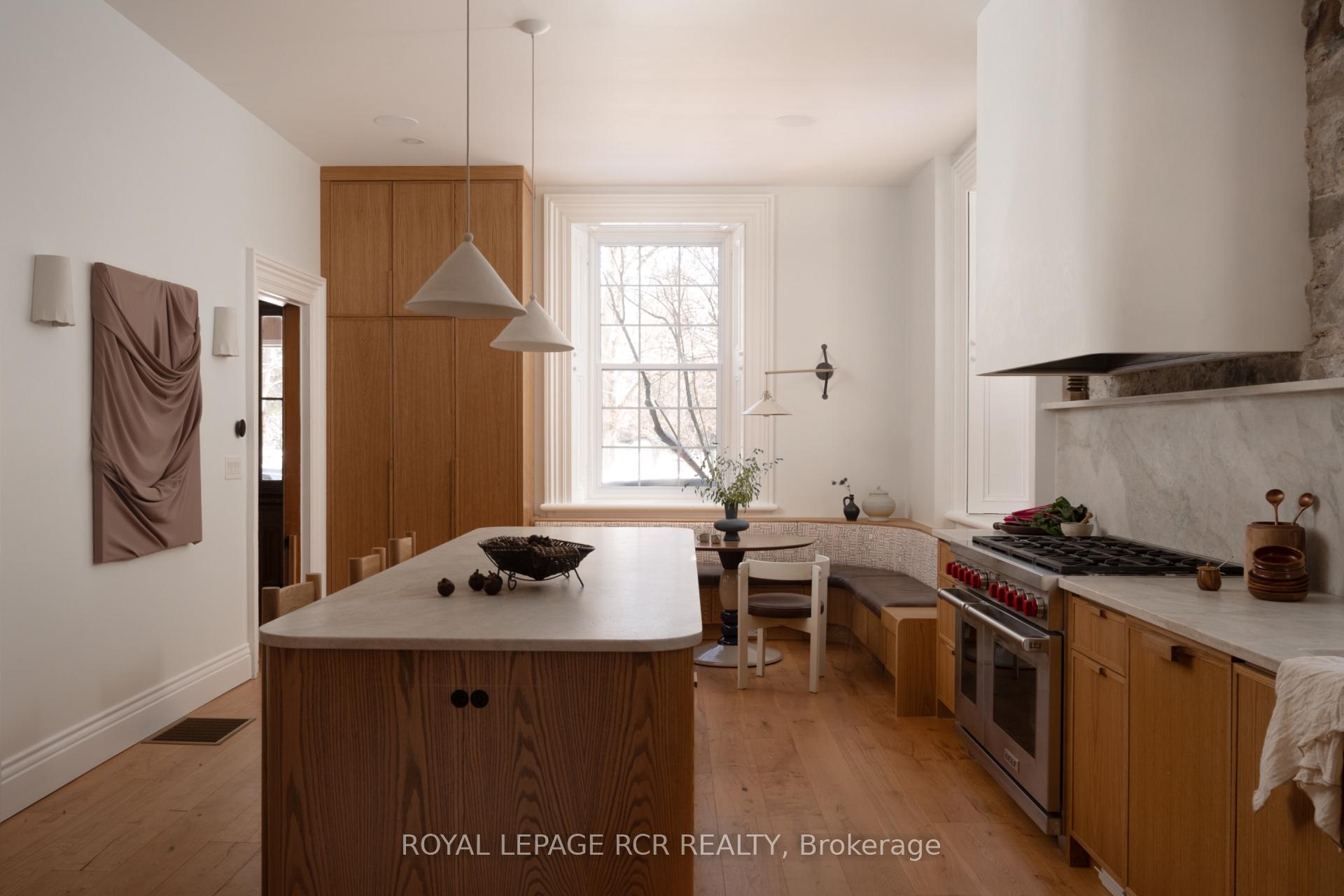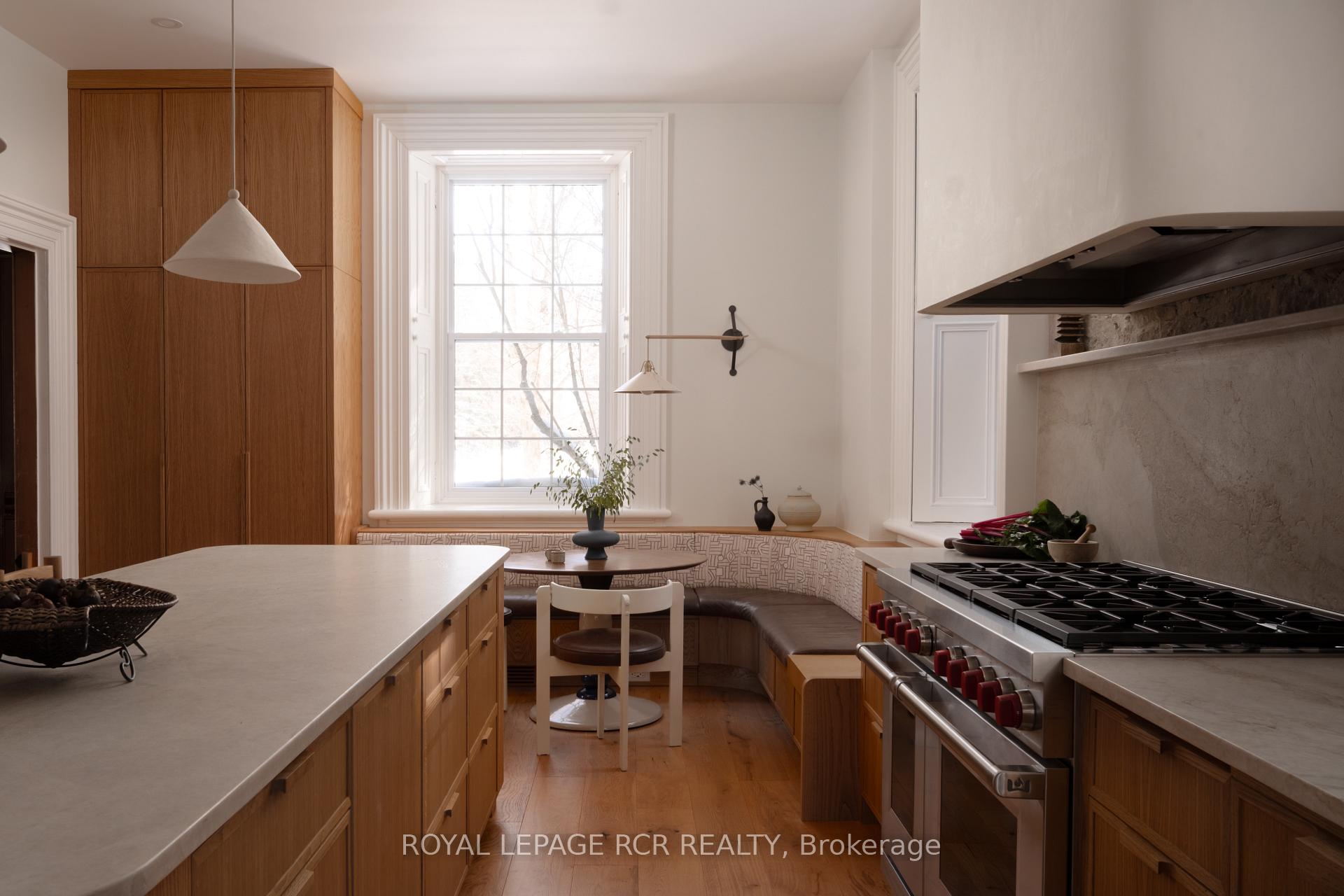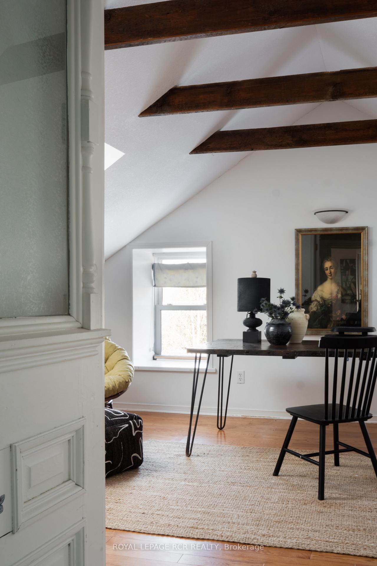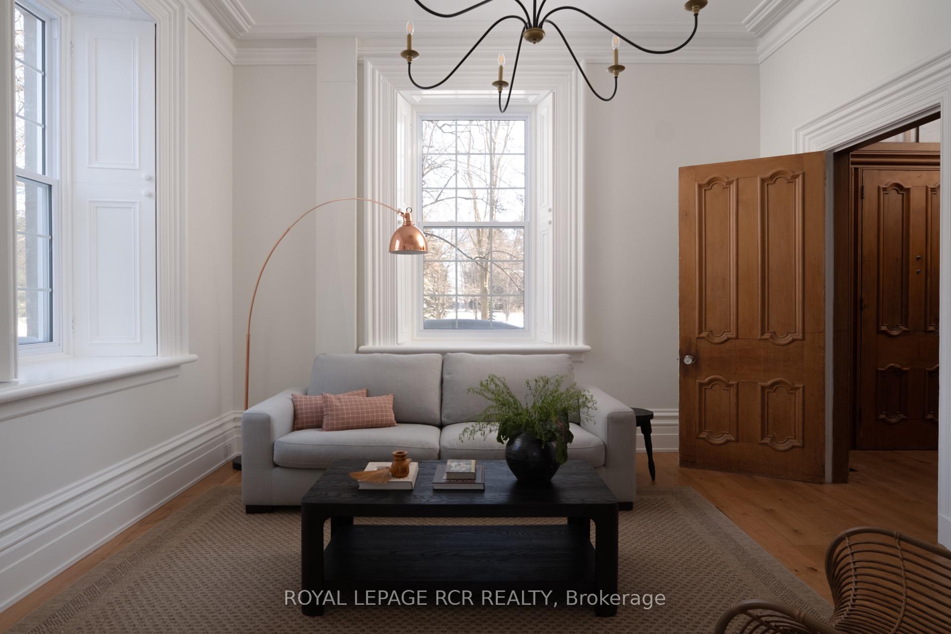Historic soul meets a high-design heartbeat. Welcome to Stonecrop, an iconic 1857 stone manor reimagined as a warm, soulful sanctuary. Just outside of Elora, set on nearly 10 private acres at the end of a dramatic tree-lined driveway, this is a rare dialogue between historic provenance and refined organic luxury. Inside, soaring 12-foot ceilings, original plaster medallions, and dramatic stone walls create an inviting, layered atmosphere. At the heart of the home, a show-stopping kitchen, recently featured in Architectural Digest (!!!), anchors daily life and entertaining. Rooted in timeless design, it blends heritage architecture with modern precision through custom wood cabinetry, integrated top-tier appliances, and natural materials in balance. The living and dining areas continue the story, where a stone fireplace is set beneath vaulted ceilings, and skylights that flood the space with light. The main level also offers a family room, dreamy private office, and magazine worthy powder room. Upstairs, 5 spacious bedrooms span 2 levels, each defined by natural light and quiet luxury. The second floor features wide-plank wood flooring, 3 large bedrooms, and a beautifully appointed 4-piece bath. The third floor is fully finished with vaulted ceilings, exposed beams, 2 additional bedrooms, a sitting area, and a 3-piece bath. The partially finished basement offers in-law suite potential with a large bedroom, kitchenette rough-in, 4-piece bath, and separate entrance. Geothermal heating supports the home with modern efficiency. Outdoors, a heated above-ground pool, outdoor sauna, fire pit lounge, and outdoor pizza kitchen set the tone for unforgettable summers. An orchard, gardens, and private trails wind through nearly 10 acres of countryside. The impressive 58-foot detached garage includes a dedicated home gym and ample space for cars, toys, and equipment, completing this private country compound. AD-worthy interiors. Expansive acreage. Stonecrop is iconic.