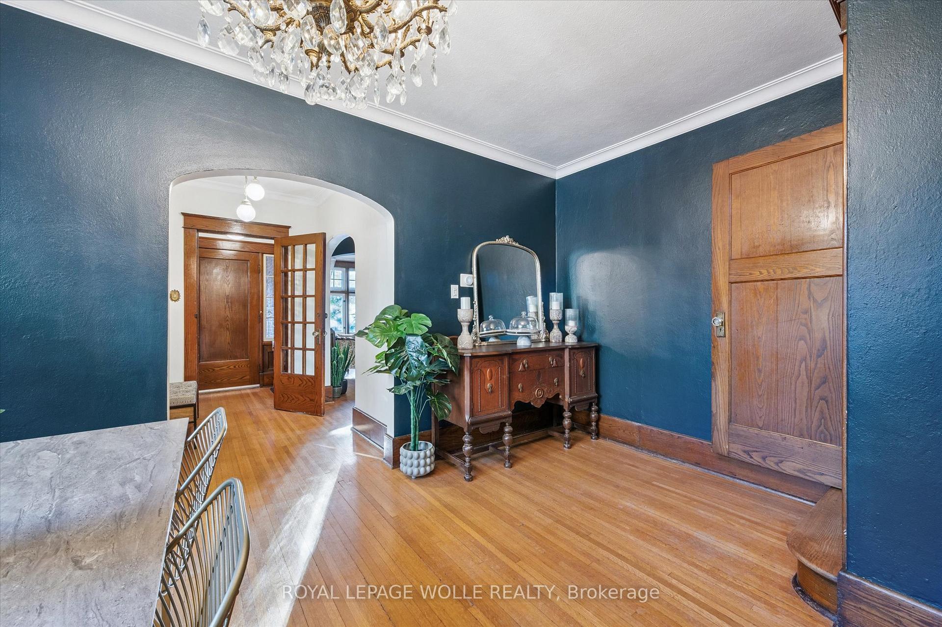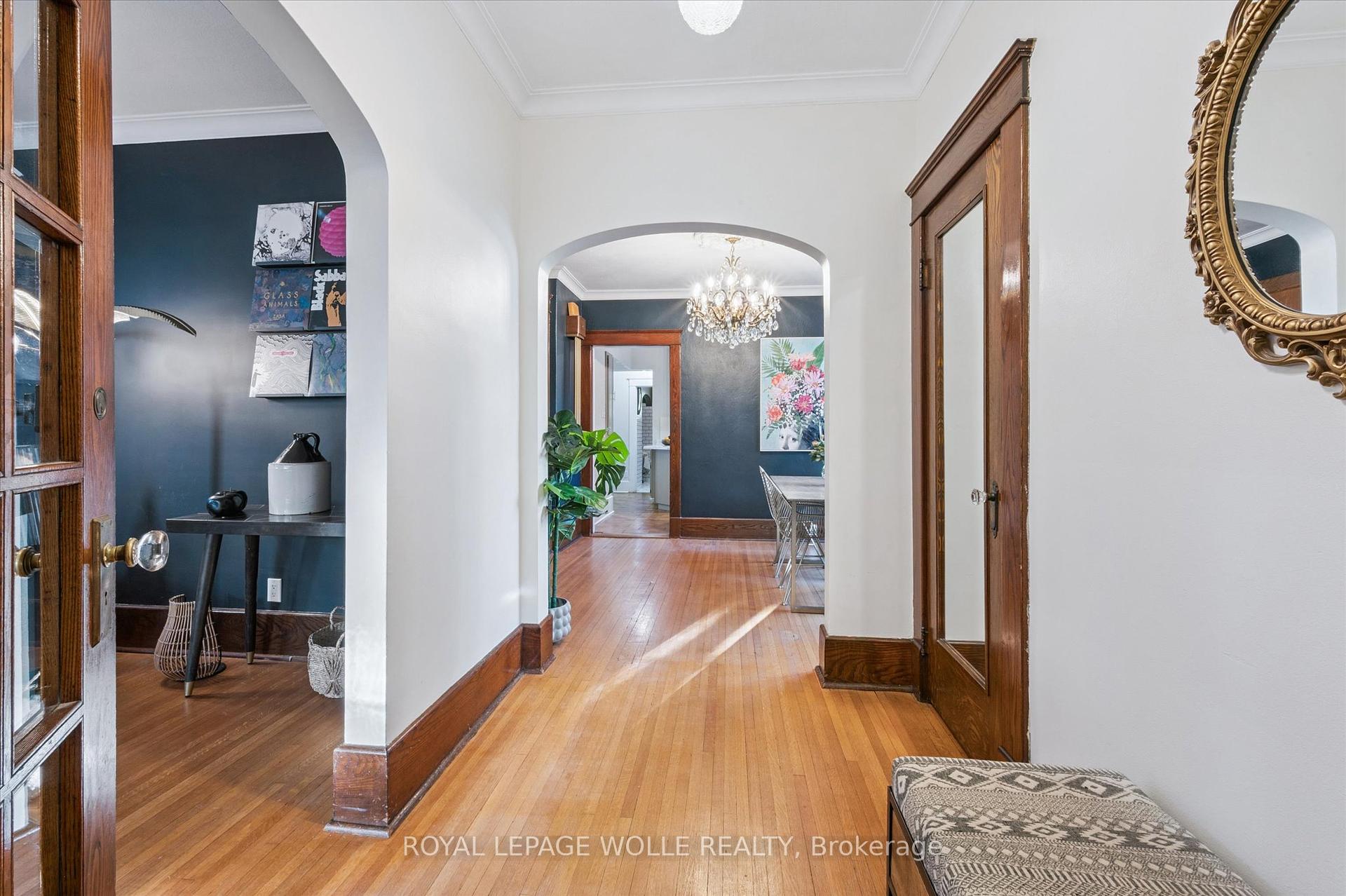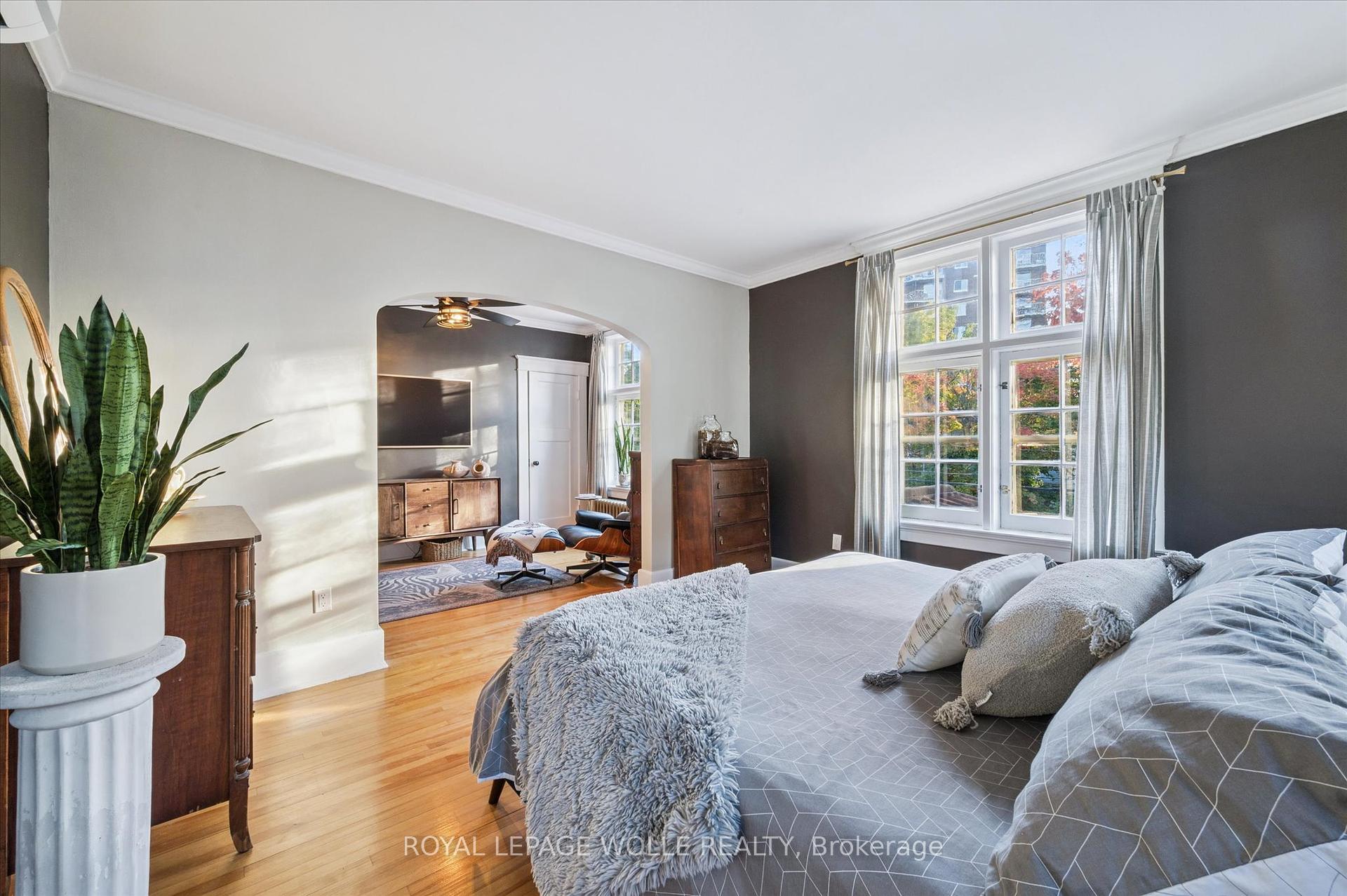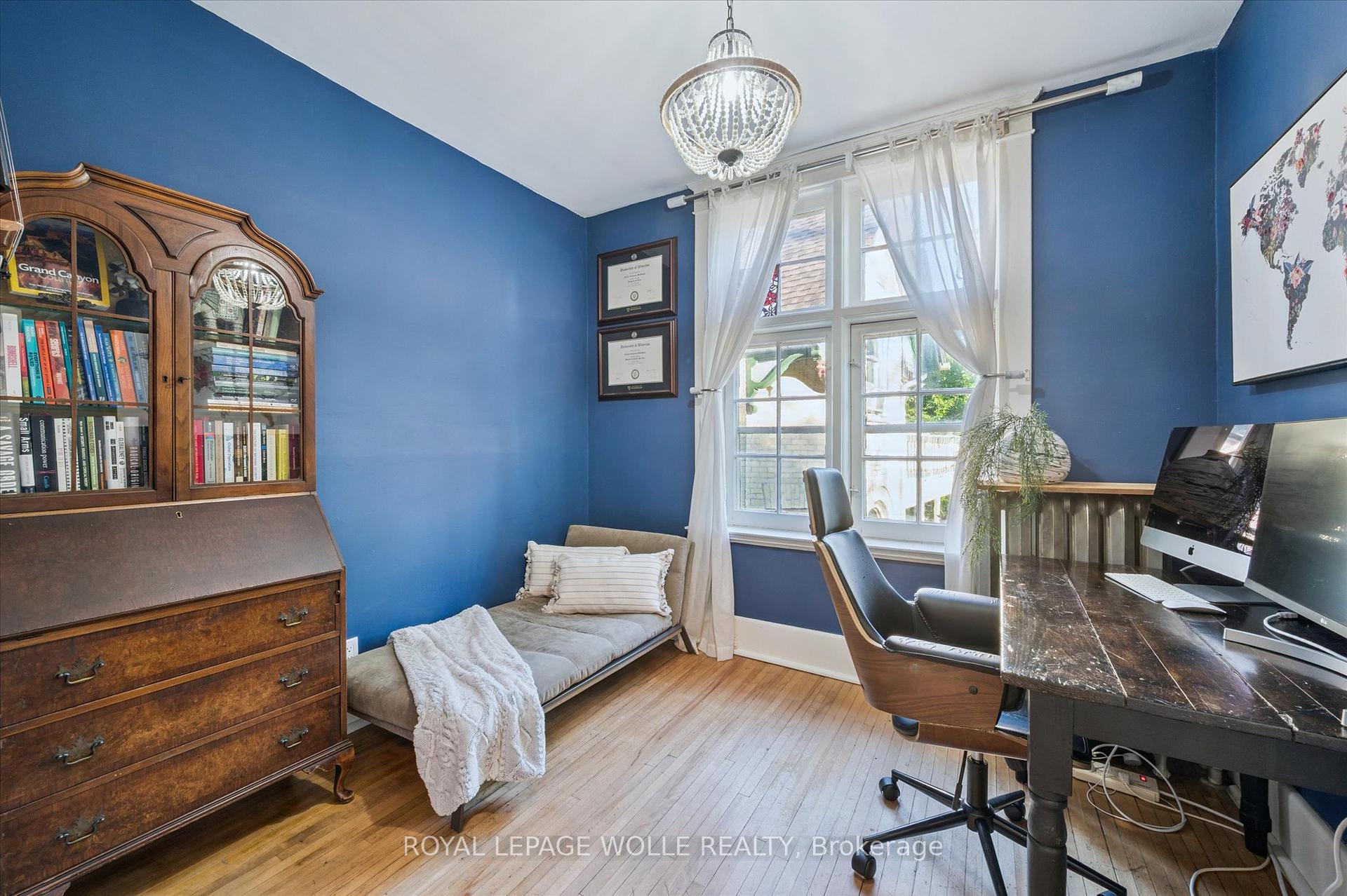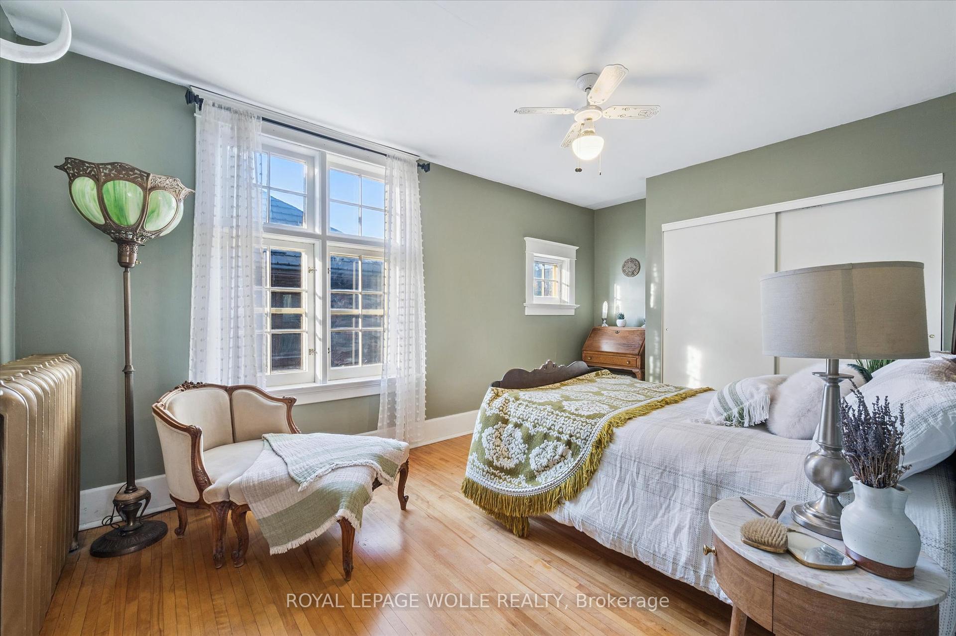 Charming Century Home with Dual Living Potential 76 Ahrens Street W. Step into timeless character and modern versatility with this stately century home, with hardwood floors throughout. Ideally situated in one of Kitchener’s most desirable neighbourhoods Olde Berlin, with the park just steps away. Currently set up as a single-family residence, this home offers unique flexibility as it can be easily converted into a duplex – perfect for extended family, multi-generational living, or future income potential. The main floor entrance welcomes you into a warm and inviting space, with a very spacious living and dining room complete with a bright kitchen, a bathroom, and two comfortable bedrooms, presently being used as a gym and home office. A walkout leads to a side patio and private backyard, perfect for outdoor dining or relaxing evenings. The second entrance leads upstairs to a versatile layout featuring a large primary bedroom, with two closets and a sitting area, a second bedroom, an office/bedroom, a bathroom, and a family room with direct access to an above-ground deck overlooking the lush yard. Explore the unfinished attic, offering potential for a creative loft or storage space. The basement offers two large areas for a workshop, with ample storage. And for Wine enthusiasts, you have your own wine cellar to hone your craft! Outdoors, you’ll find a gorgeous, fully fenced backyard, an ideal gathering spot with friends and family. A charming wooden gate provides easy access to the yard, adding to the homes classic appeal. This rare property blends the character of a true century home with the adaptability todays buyers seek, making it a must-see for families, investors, and anyone drawn to historic charm with modern opportunity. Walking distance to the Go Train to Toronto/Union Station, Via Rail, Center in Square, Kitchener Library, Google, U of W School of Pharmacy, Victoria Park, great schools, Coffee Shops and Restaurants. Everything a few steps away.