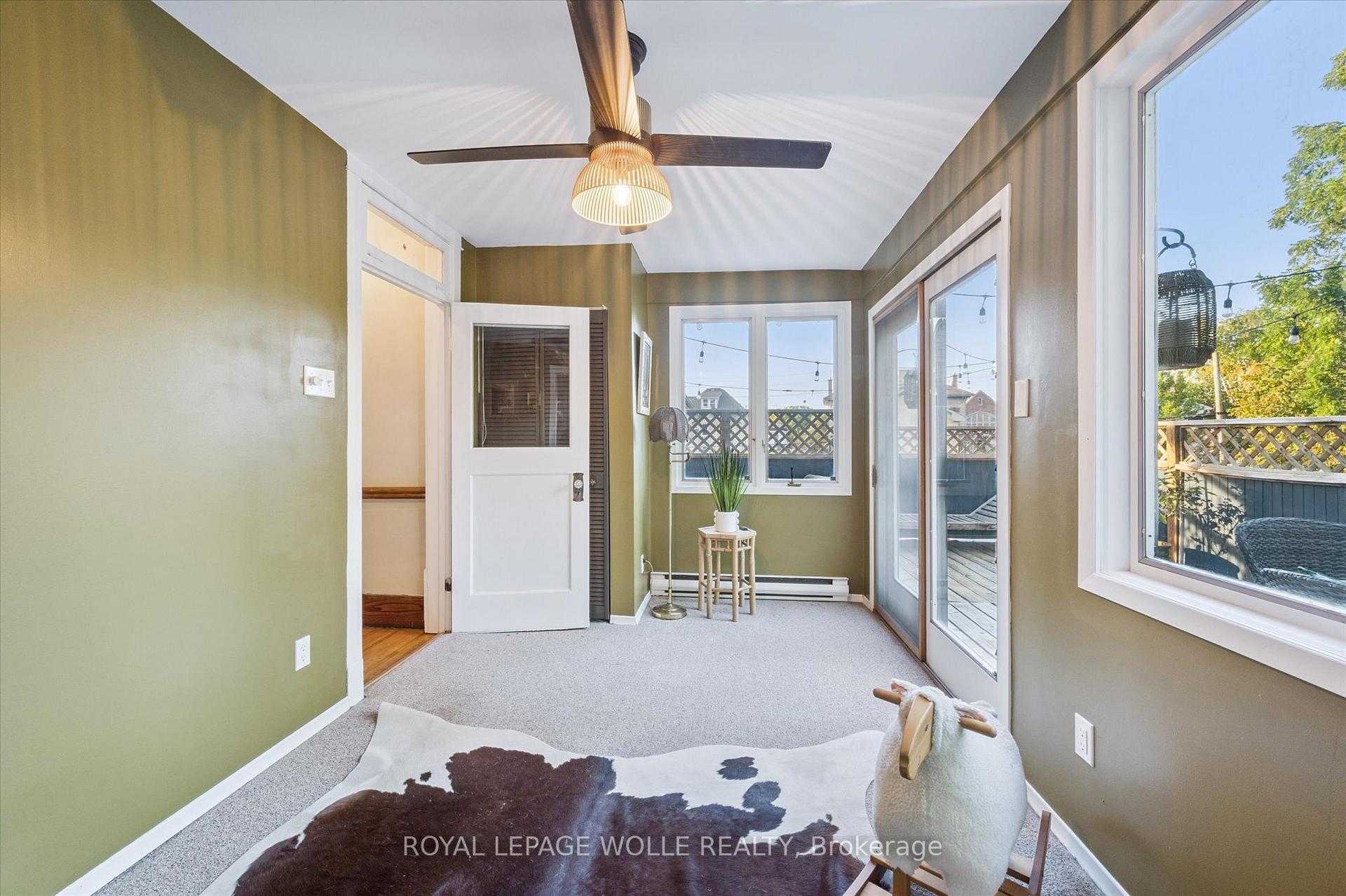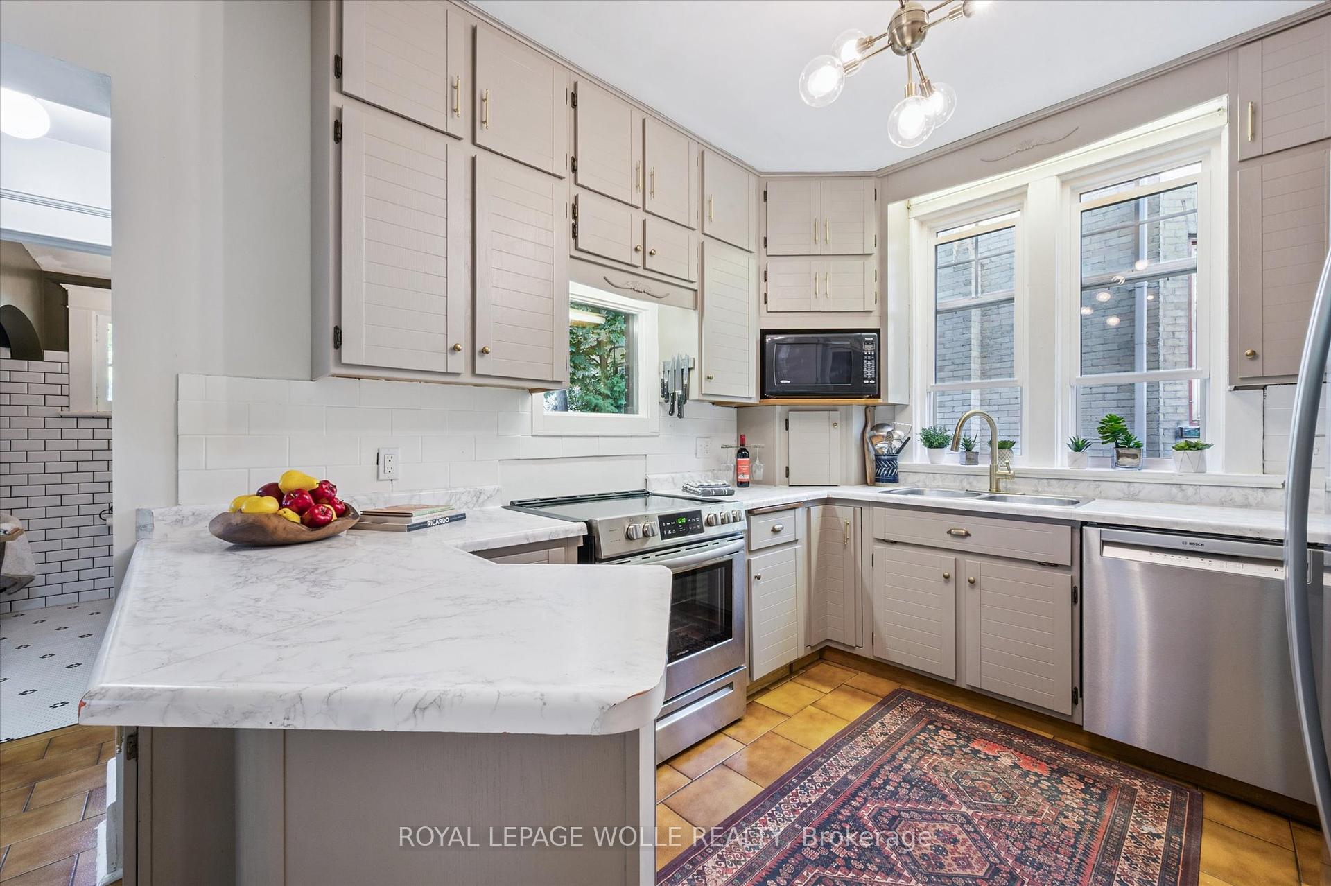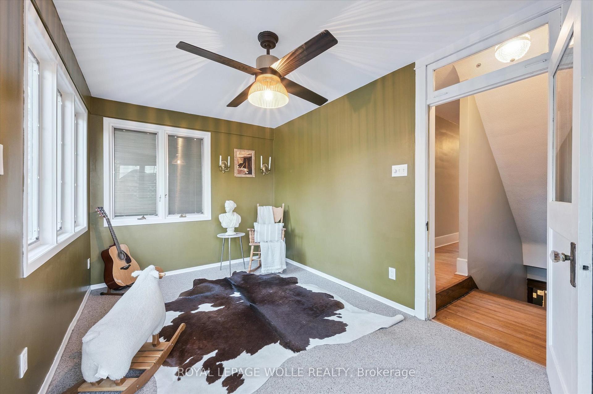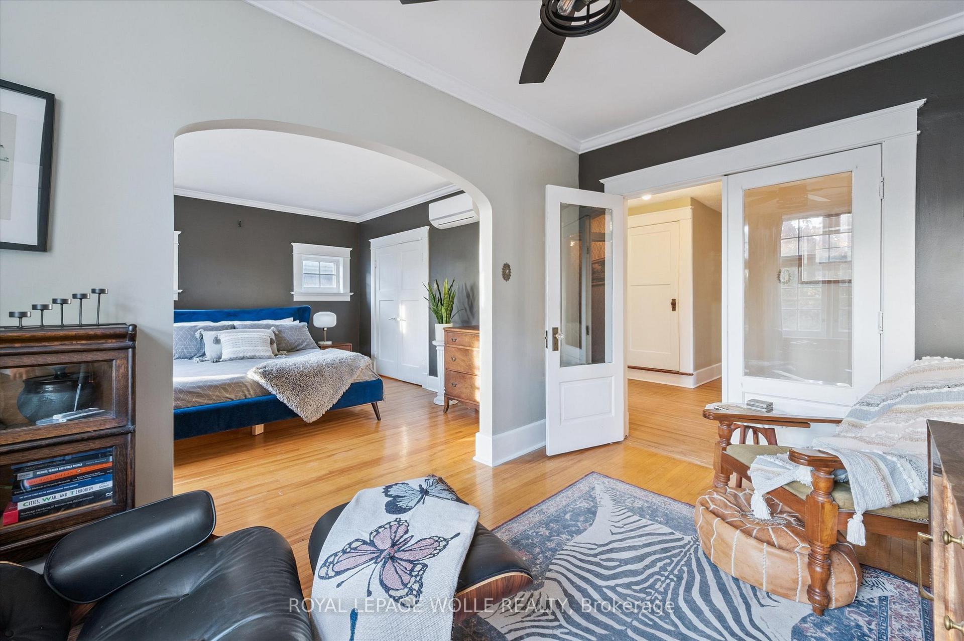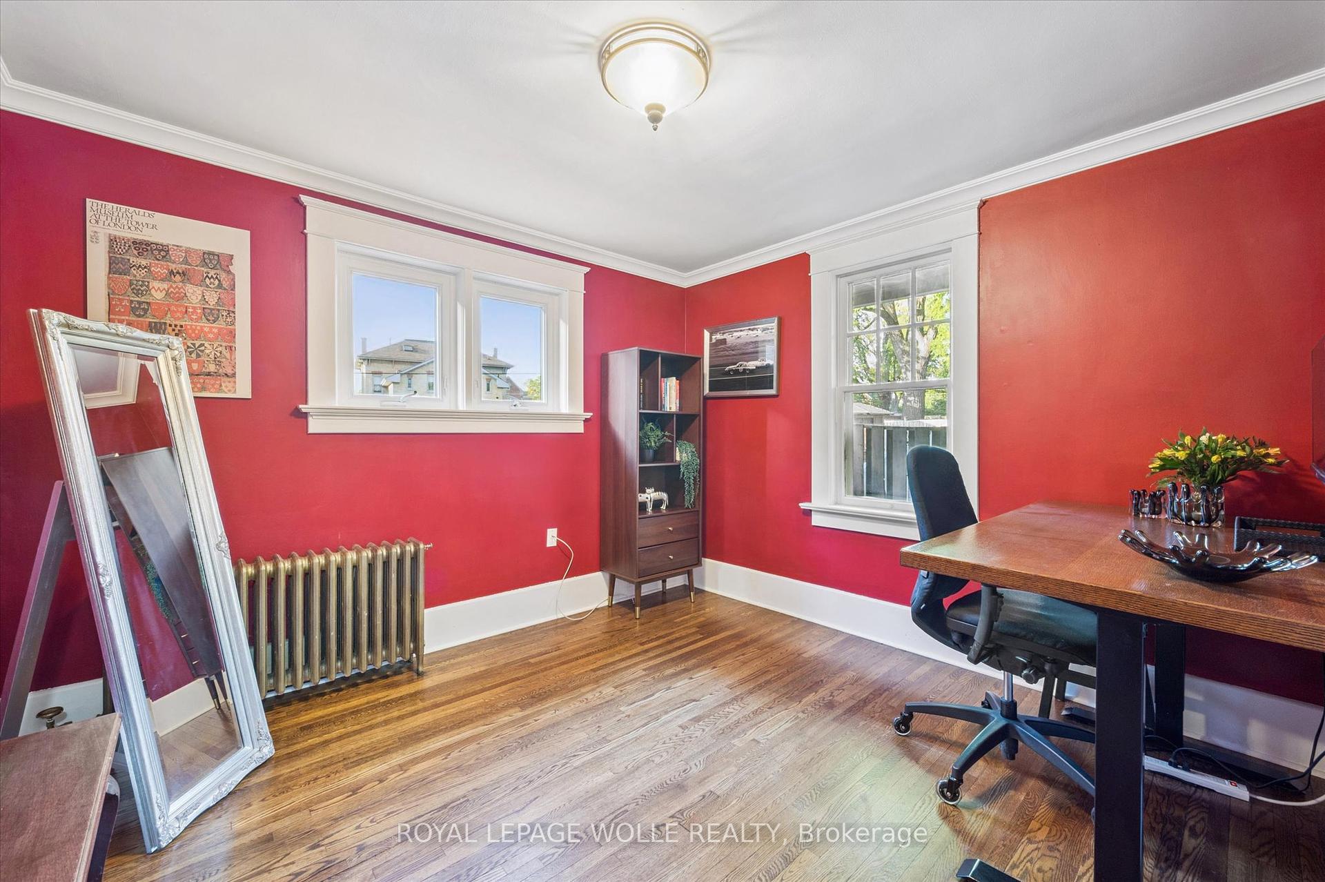 Charming Century Home with Dual Living Potential 76 Ahrens Street W. Step into timeless character and modern versatility with this stately century home, with hardwood floors throughout. Ideally situated in one of Kitchener’s most desirable neighbourhoods Olde Berlin, with the park just steps away. Currently set up as a single-family residence, this home offers unique flexibility as it can be easily converted into a duplex – perfect for extended family, multi-generational living, or future income potential. The main floor entrance welcomes you into a warm and inviting space, with a very spacious living and dining room complete with a bright kitchen, a bathroom, and two comfortable bedrooms, presently being used as a gym and home office. A walkout leads to a side patio and private backyard, perfect for outdoor dining or relaxing evenings. The second entrance leads upstairs to a versatile layout featuring a large primary bedroom, with two closets and a sitting area, a second bedroom, an office/bedroom, a bathroom, and a family room with direct access to an above-ground deck overlooking the lush yard. Explore the unfinished attic, offering potential for a creative loft or storage space. The basement offers two large areas for a workshop, with ample storage. And for Wine enthusiasts, you have your own wine cellar to hone your craft! Outdoors, you’ll find a gorgeous, fully fenced backyard, an ideal gathering spot with friends and family. A charming wooden gate provides easy access to the yard, adding to the homes classic appeal. This rare property blends the character of a true century home with the adaptability todays buyers seek, making it a must-see for families, investors, and anyone drawn to historic charm with modern opportunity. Walking distance to the Go Train to Toronto/Union Station, Via Rail, Center in Square, Kitchener Library, Google, U of W School of Pharmacy, Victoria Park, great schools, Coffee Shops and Restaurants. Everything a few steps away.