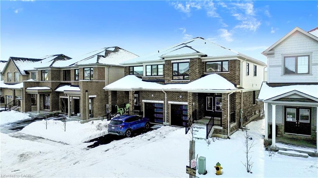 Welcome to 76 Prest Way, a beautifully designed one-year-old home offering the perfect blend of style, comfort, and functionality. Located in a highly sought-after neighborhood, this impressive property features a modern layout with carpet-free flooring on the main level and soaring ceilings that create a bright, open, and airy atmosphere. The spacious living area is filled with natural light and showcases a cozy gas fireplace, making it ideal for both everyday living and entertaining. The chef-inspired kitchen is thoughtfully designed with granite countertops and quality appliances included, while the separate dining area provides an inviting space for family meals or hosting guests. Upstairs, you’ll find generously sized bedrooms offering flexibility for growing families or home office needs. The primary suite is a true retreat, complete with his-and-hers walk-in closets and a luxurious ensuite bathroom. A second full bathroom and convenient upper-level laundry complete this level. With its contemporary finishes, smart layout, and unbeatable location, this move-in-ready home presents an exceptional opportunity for buyers seeking modern living in a vibrant community.
