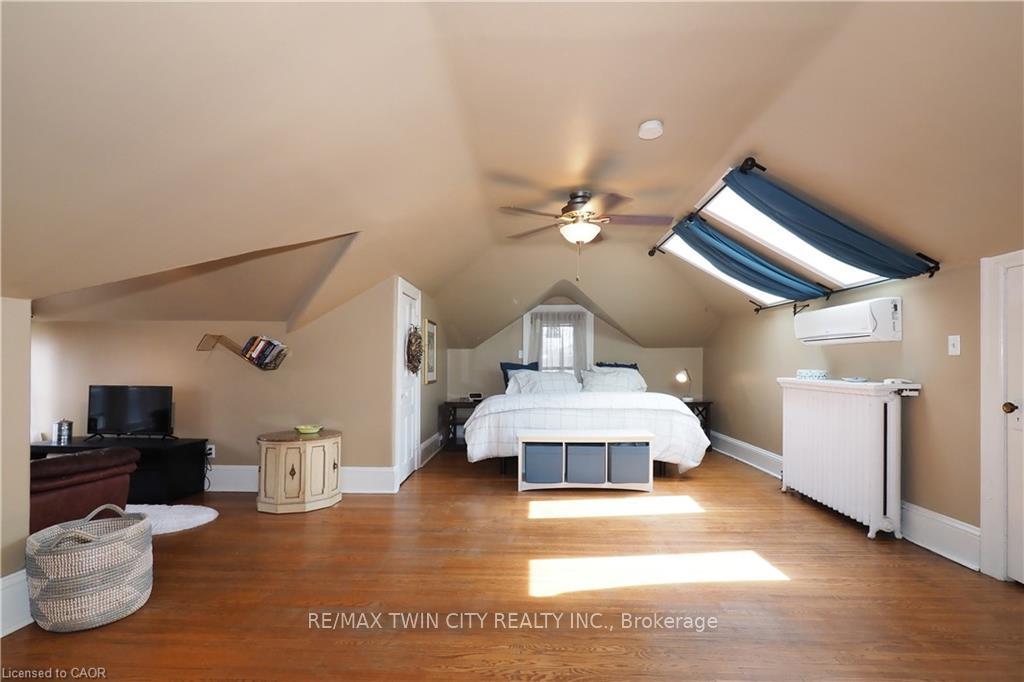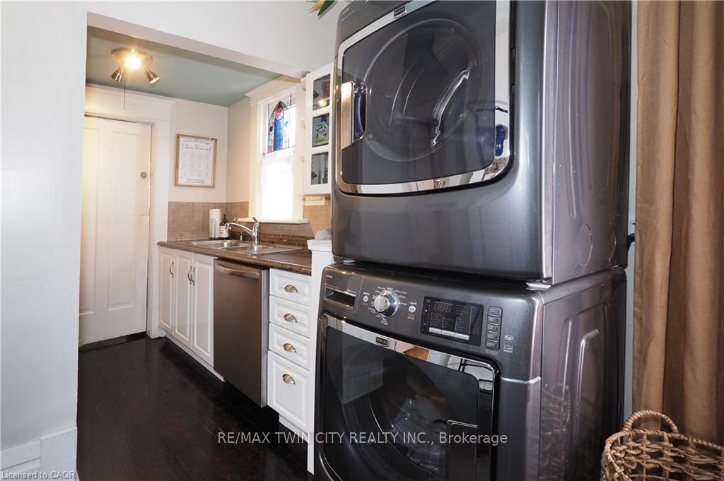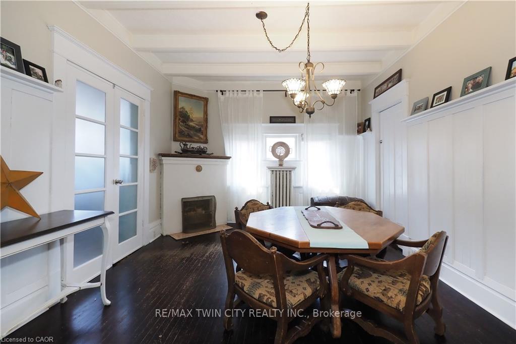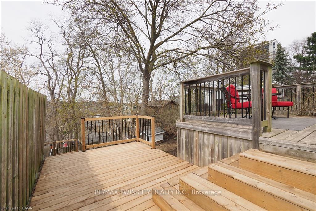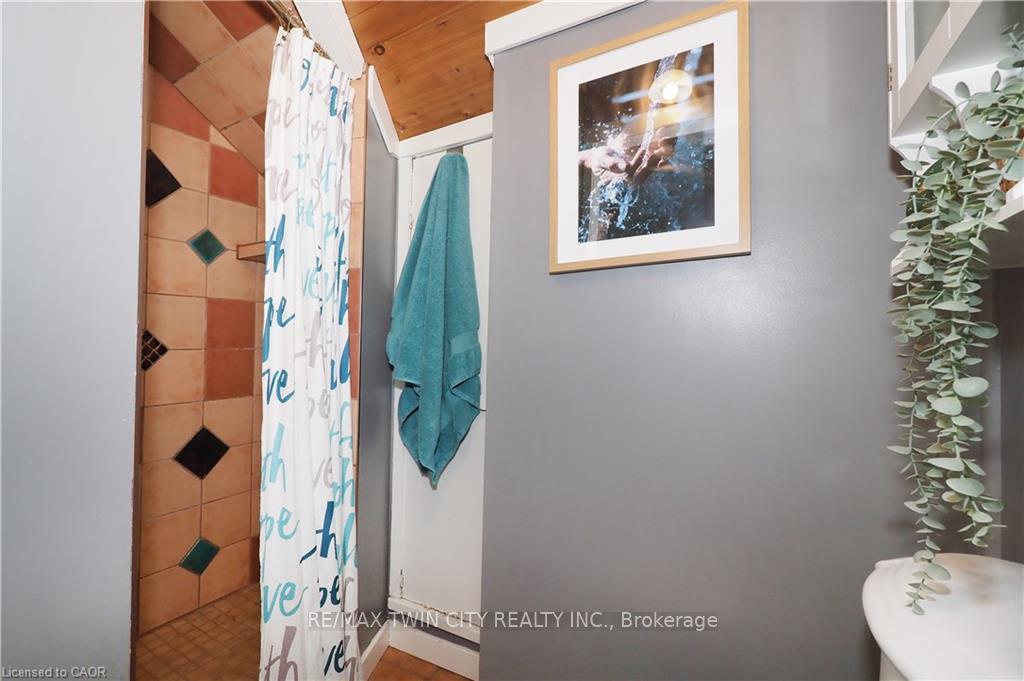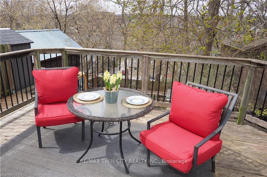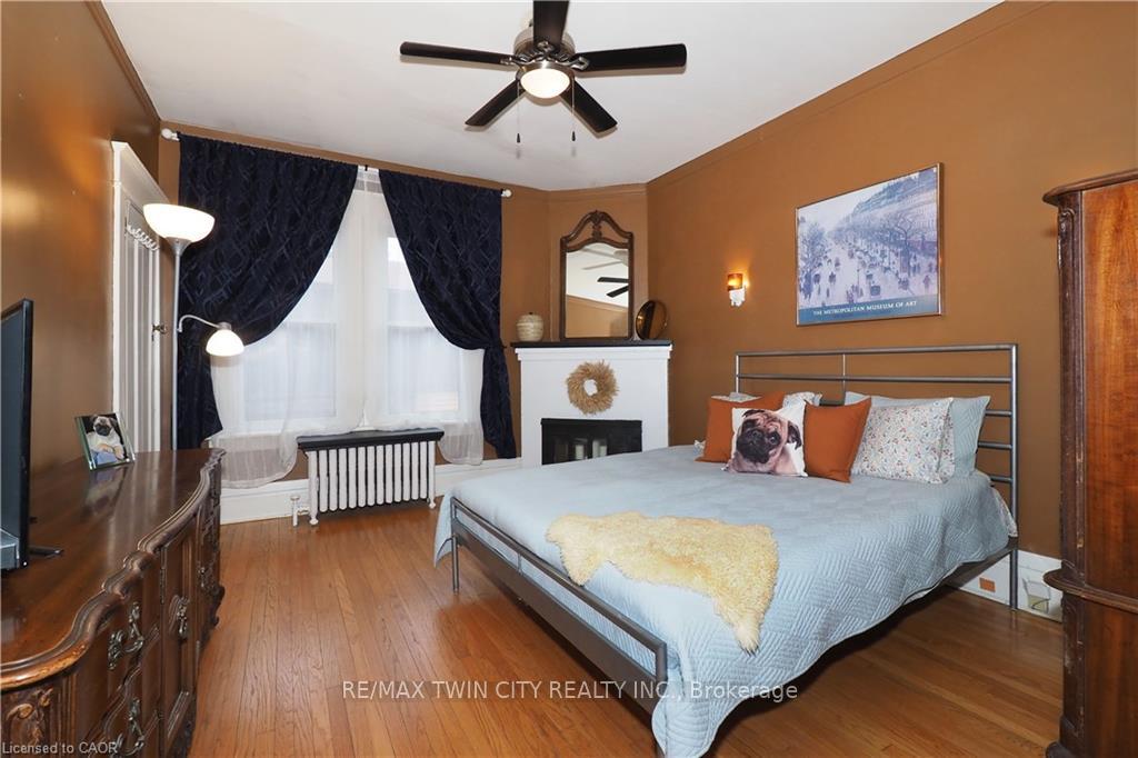 Absolutely charming, single detached 1 1/2 storey 3 bedroom home in a quiet neighbourhood steps from downtown Cambridge & all amenities. Main floor features a spacious family room with 1 of 4 wood burning fireplaces, a stunning new custom kitchen with quartz island, stainless steel appliances (including Miele dishwasher, gas stove, large fridge, wine cooler & microwave). Beautiful cabinetry with fantastic hidden drawers! Walk-out to the deck & hottub overlooking the tiered deck & yard. Massive front porch adds character to this special home. Updated main floor 3 pc bathroom with soaker tub, 2 bedrooms, laundry and second kitchenette (ideal for a possible inlaw suite with 2 separate entrances). The upper level loft is perfect for a primary bedroom or accessory apartment space including a 3 pc bathroom & balcony with it’s own exterior staircase! Basement finished with games room, utility space & tons of storage! The fully fenced private yard includes a lovely deck and covered hot-tub area. Steps down to the shed and a Detached Workshop that also has potential for many uses! Parking for 2+ cars. This is a one of a kind home!