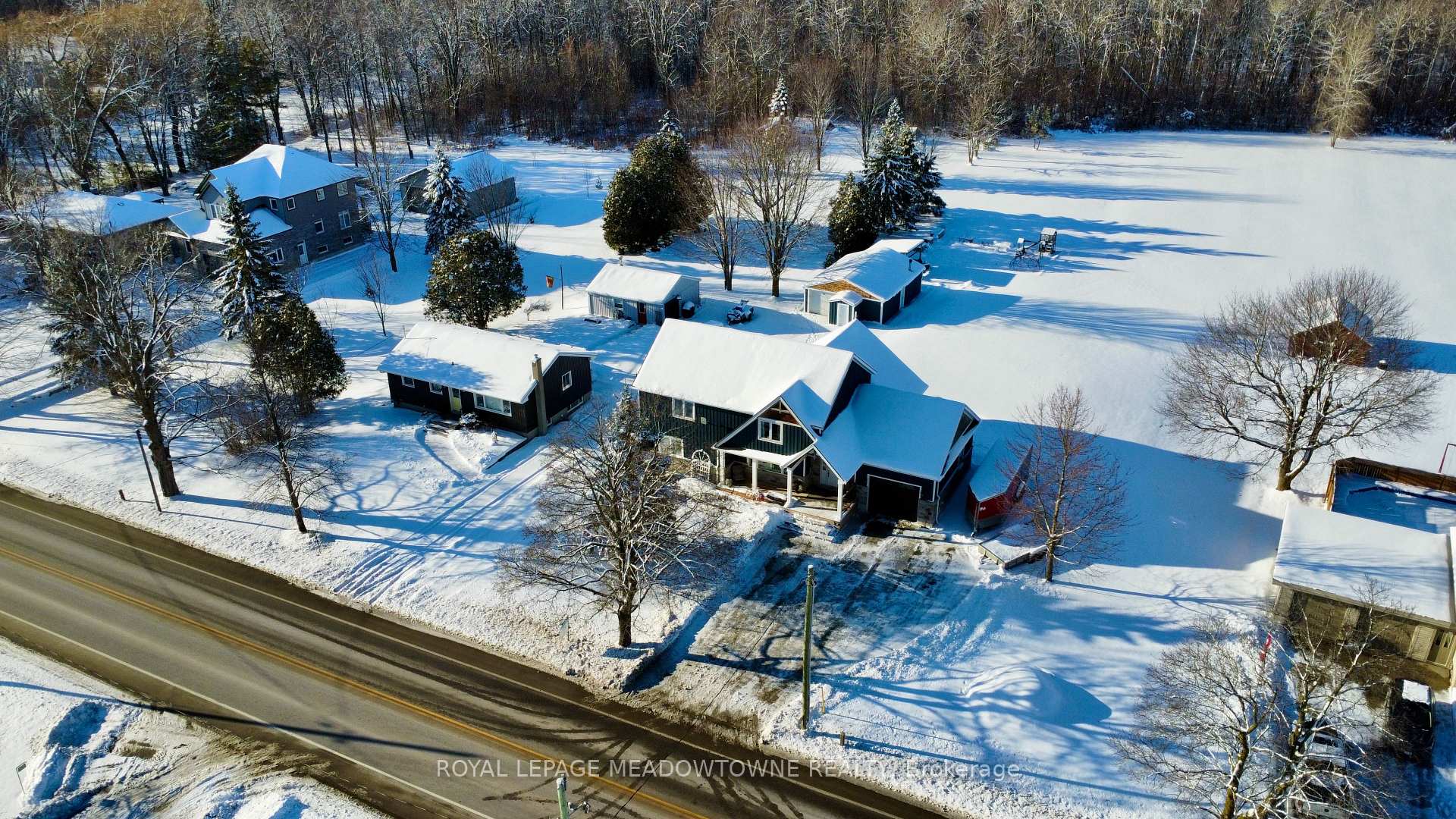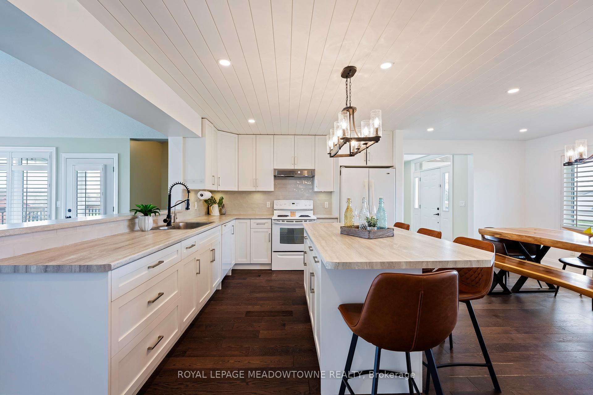 Welcome to your dream home, set on a scenic just-under-2-acre lot only minutes north of Guelph. This stunning detached residence offers over 3,000 sq. ft. of beautifully designed living space, combining modern luxury with the tranquility of country living. The bright, open-concept kitchen is the heart of the home, featuring a large central island with breakfast bar, walk-in pantry, and a dedicated coffee bar-perfect for entertaining or everyday family life. The main-floor primary suite provides a private retreat with a spa-inspired five-piece ensuite and custom built-in closet organizers. Upstairs, three generously sized bedrooms each include walk-in closets, offering exceptional storage, while second-floor laundry adds everyday convenience. The finished basement extends your living space with an additional bedroom and a stylish three-piece bathroom complete with heated floors-ideal for guests or extended family. Step outside to the inviting front porch and take in peaceful views and breathtaking sunsets. A standout feature of the property is the impressive 630 sq. ft. shop, equipped with 120-amp service and a woodstove, perfect for hobbies, storage, or a workshop. This exceptional property delivers space, comfort, and countryside charm in a location that truly has it all.